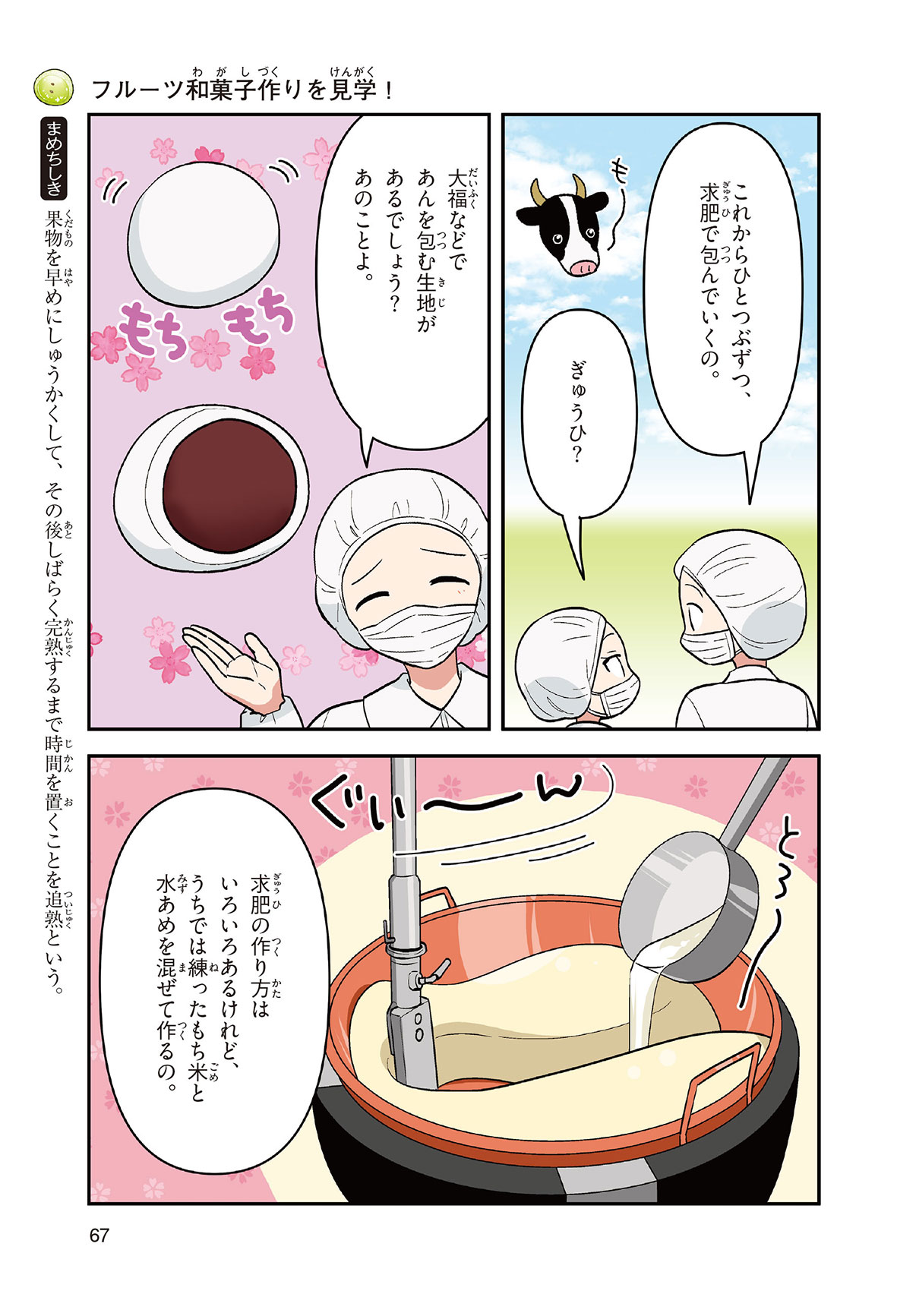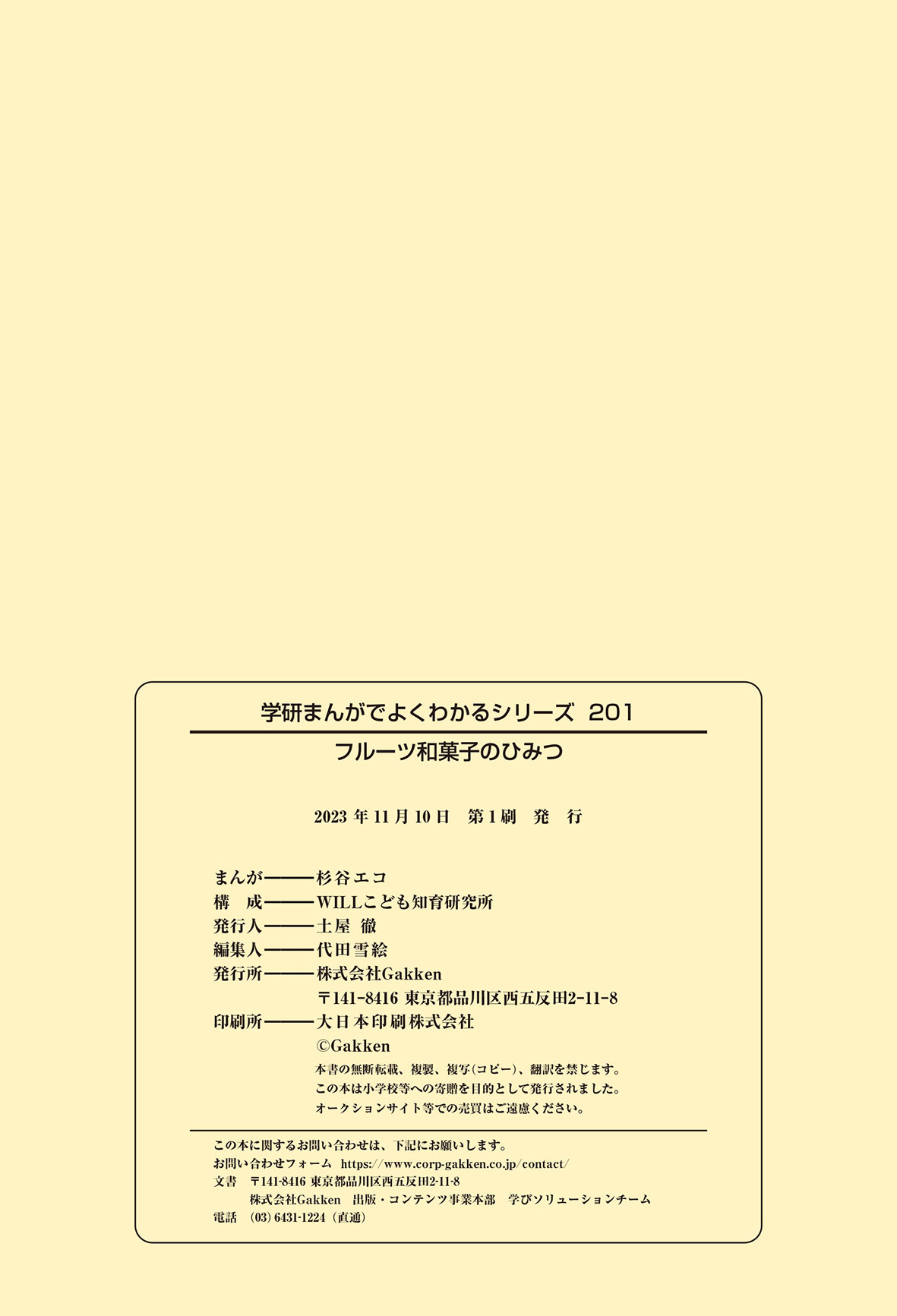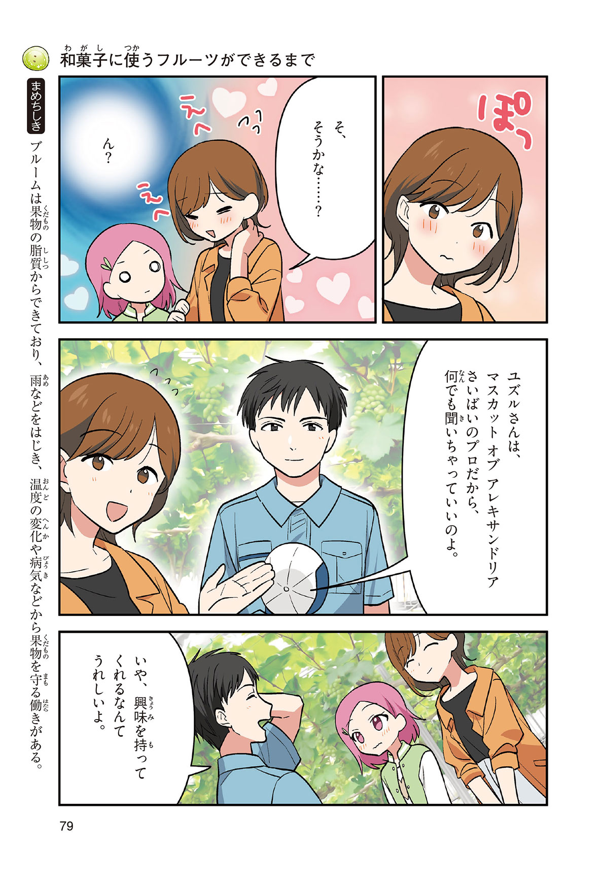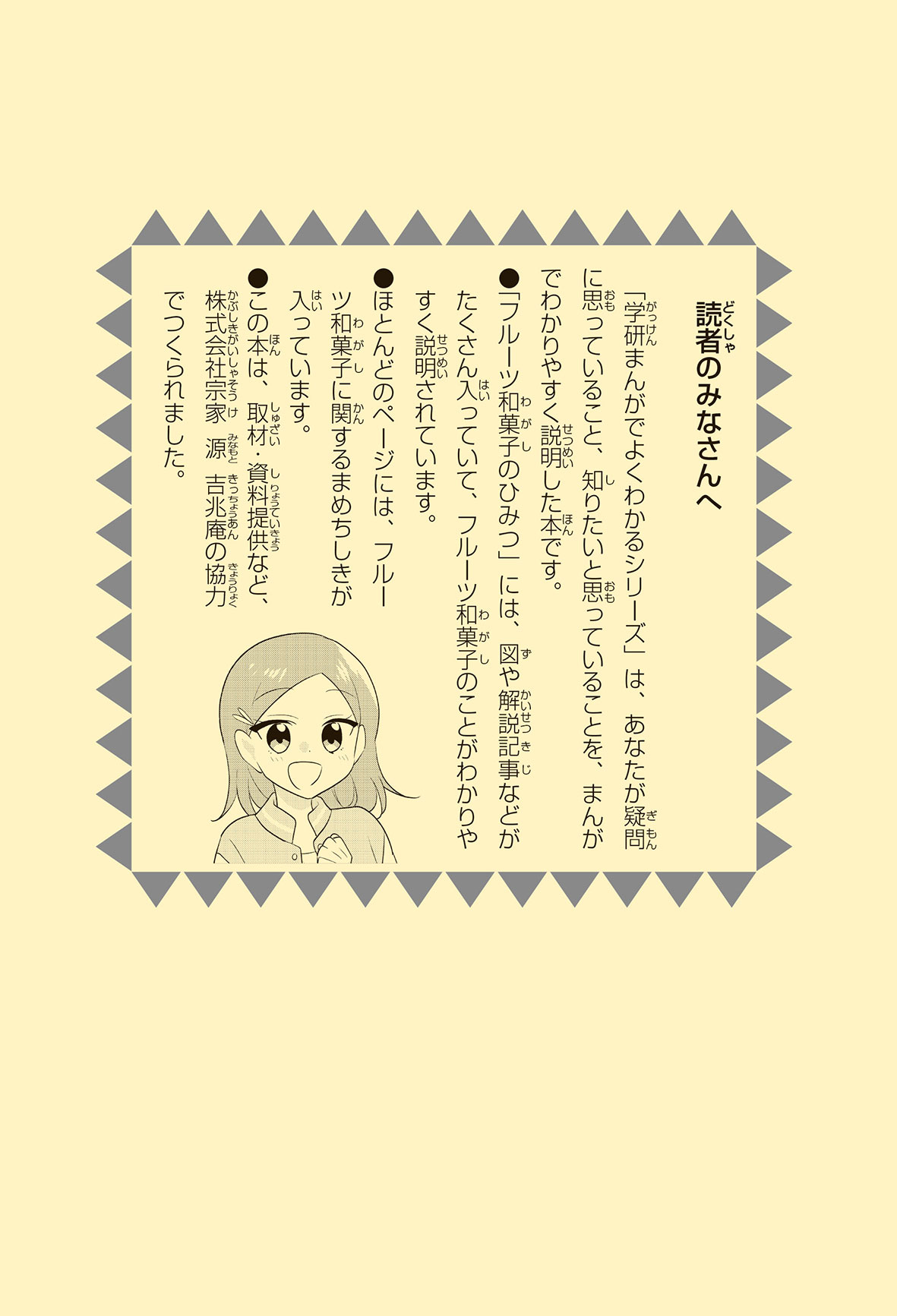 日本で昔から食べられてきた和菓子。季節の移り変わりが表されていたり、人々の願いなどがこめられていたりと、味だけじゃなくて、見た目にも楽しい食べ物なんだ。そんな和菓子はフルーツとあいしょうばつぐん!季節の果物を使った和菓子「フルーツ和菓子」についてこの本ではくわしくしょうかいしているよ。