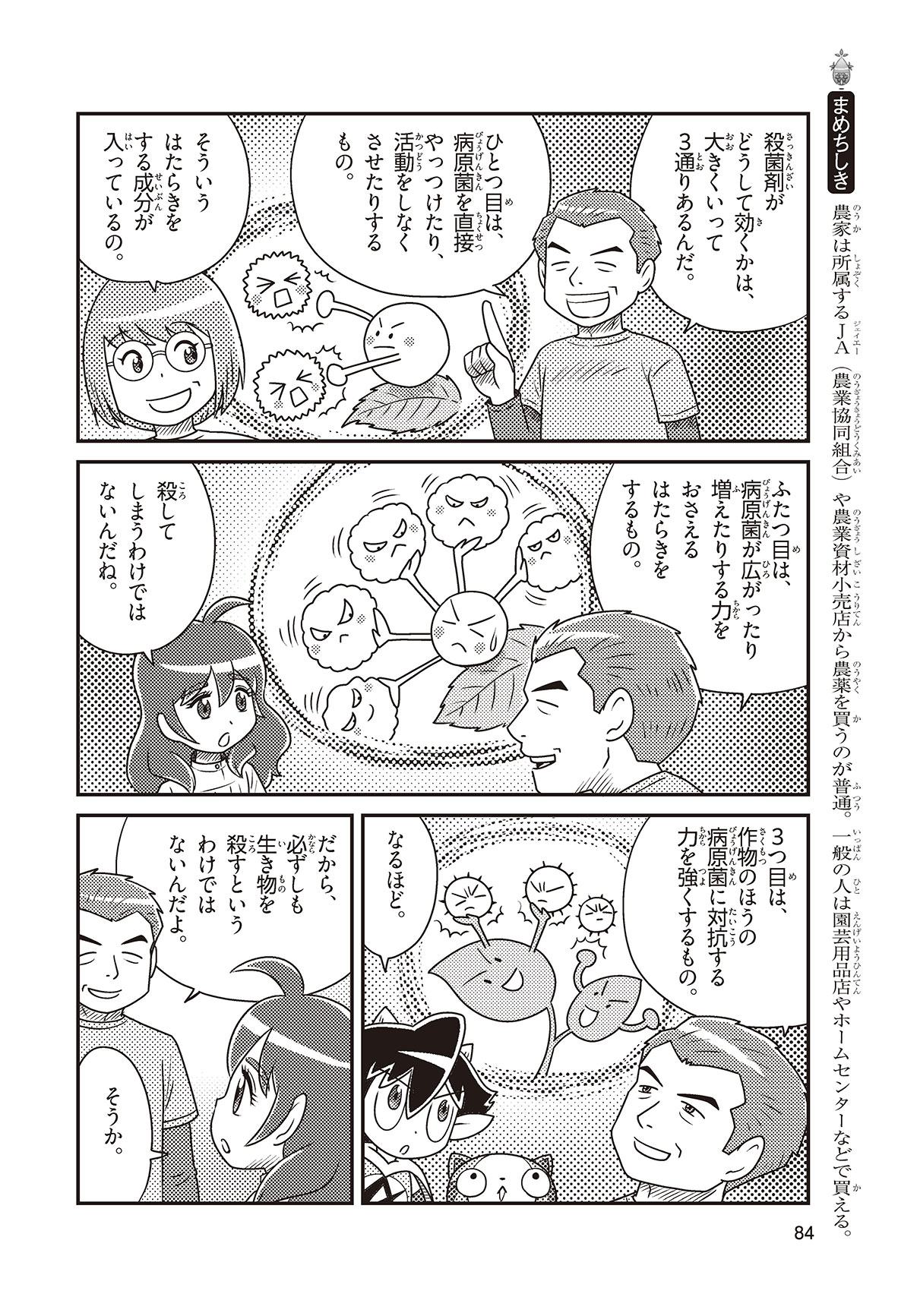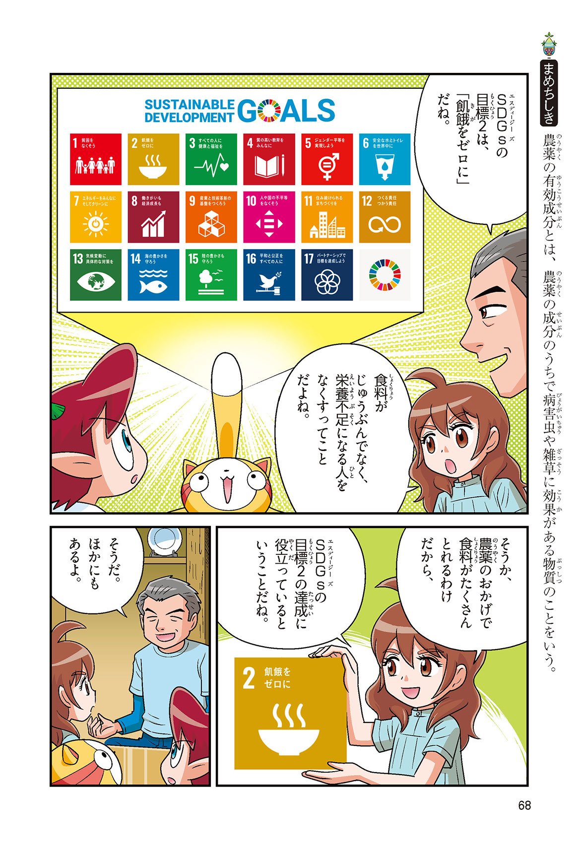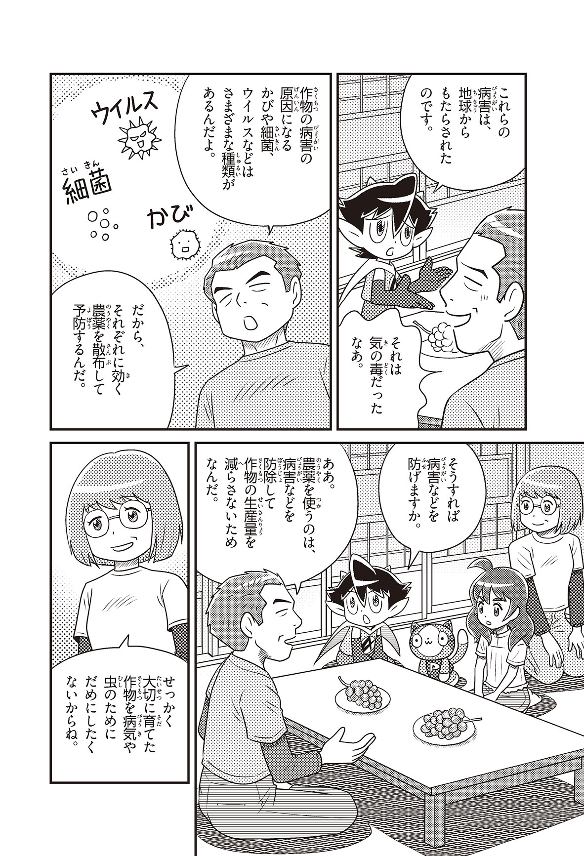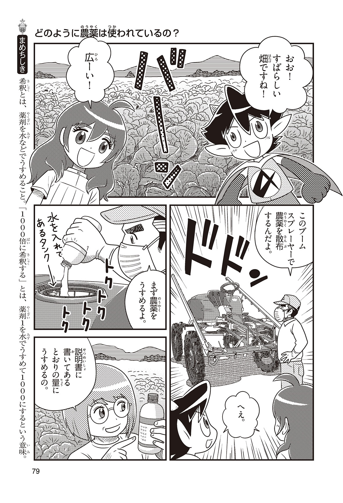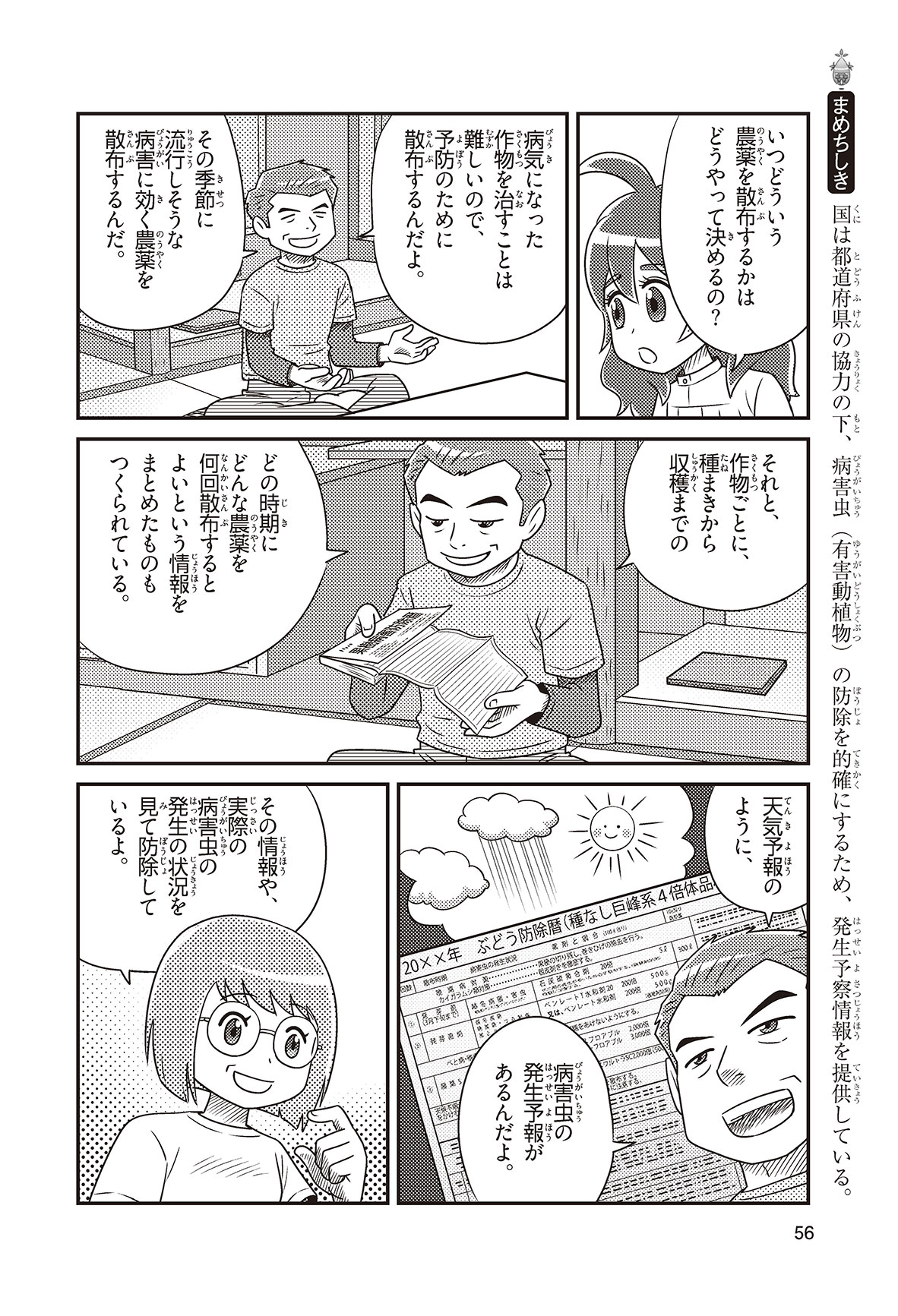 みんなの食料を生産するために、農家の人びとが、穀物や野菜、くだものなどを栽培している。だけど、作物は、病気や虫、雑草などの害を受けることがある。この本を読むと、病気や虫などの害から作物をまもるための工夫や、農薬の役割や使われ方、安全性などがわかるよ。