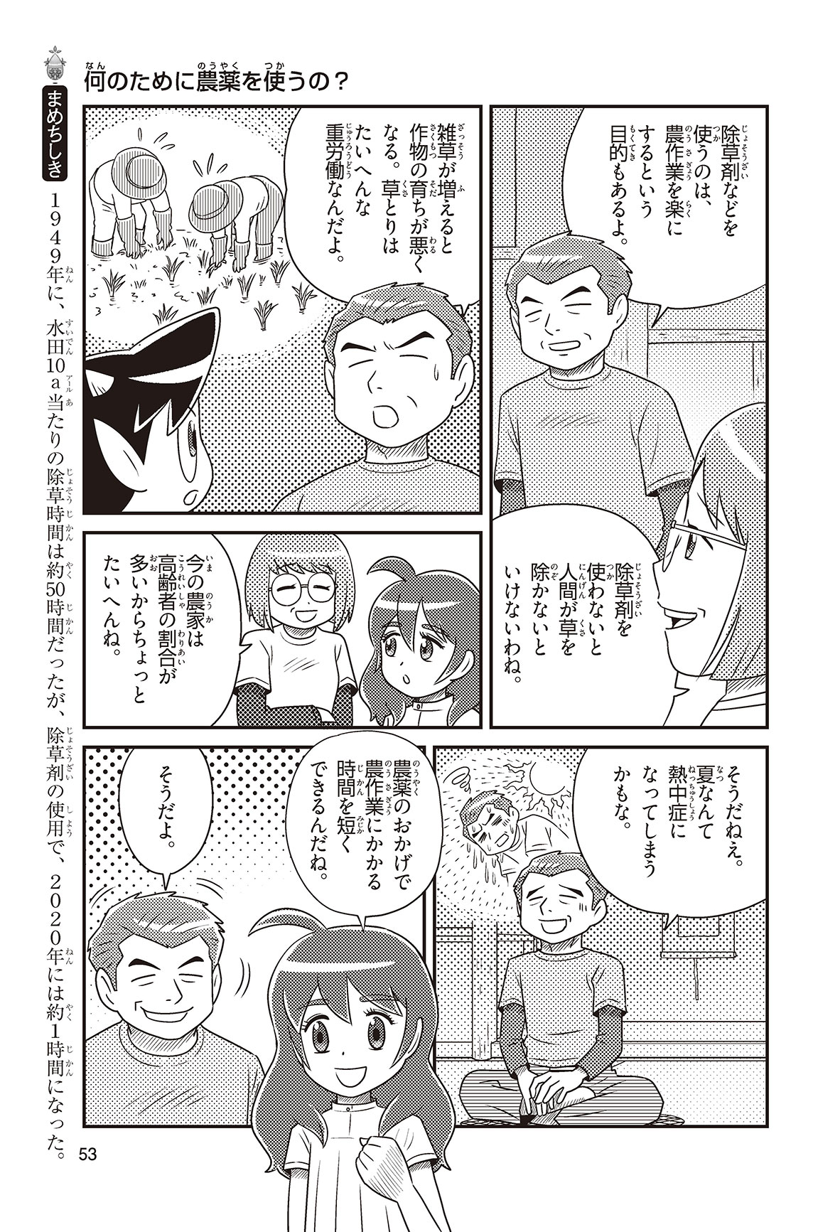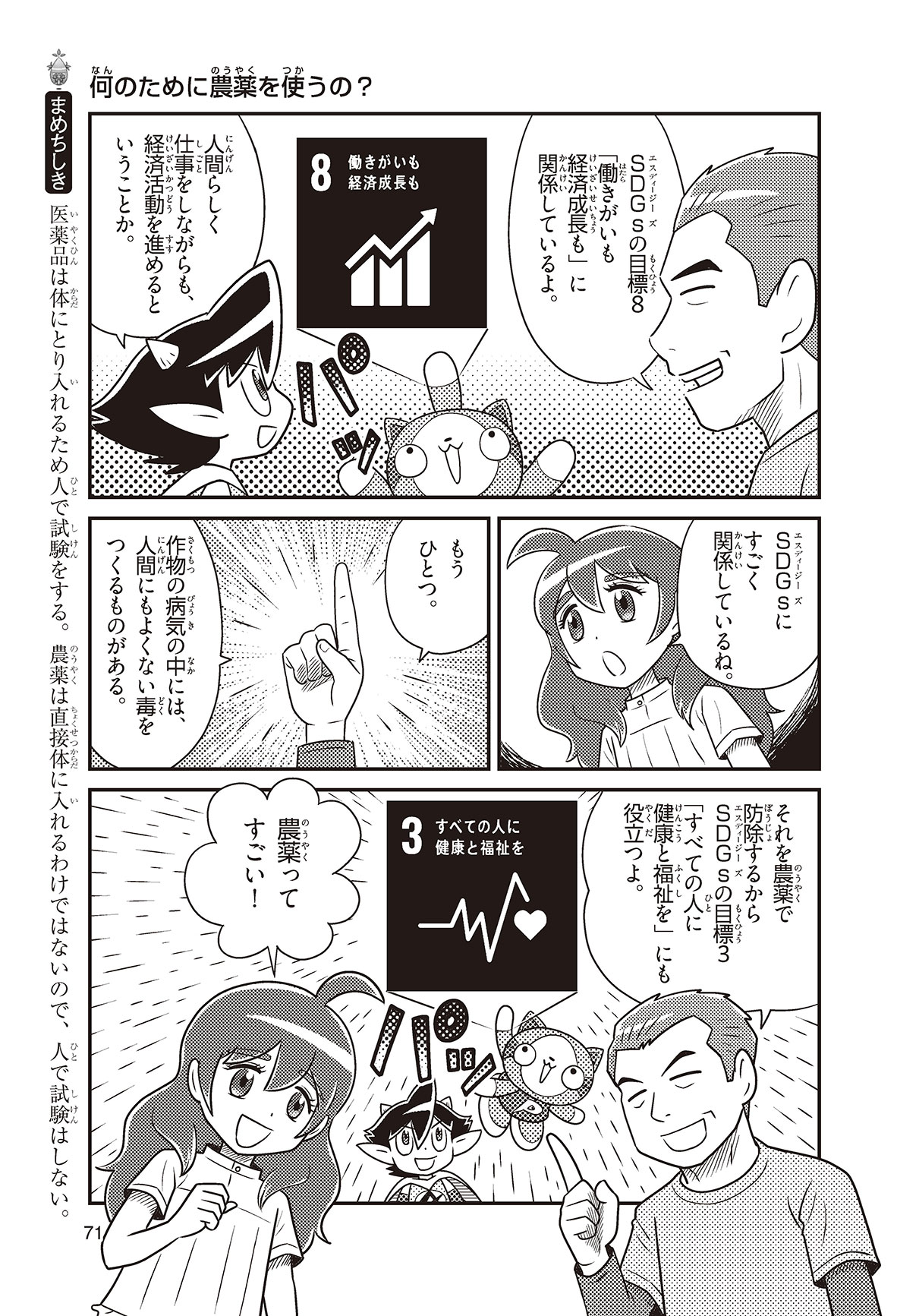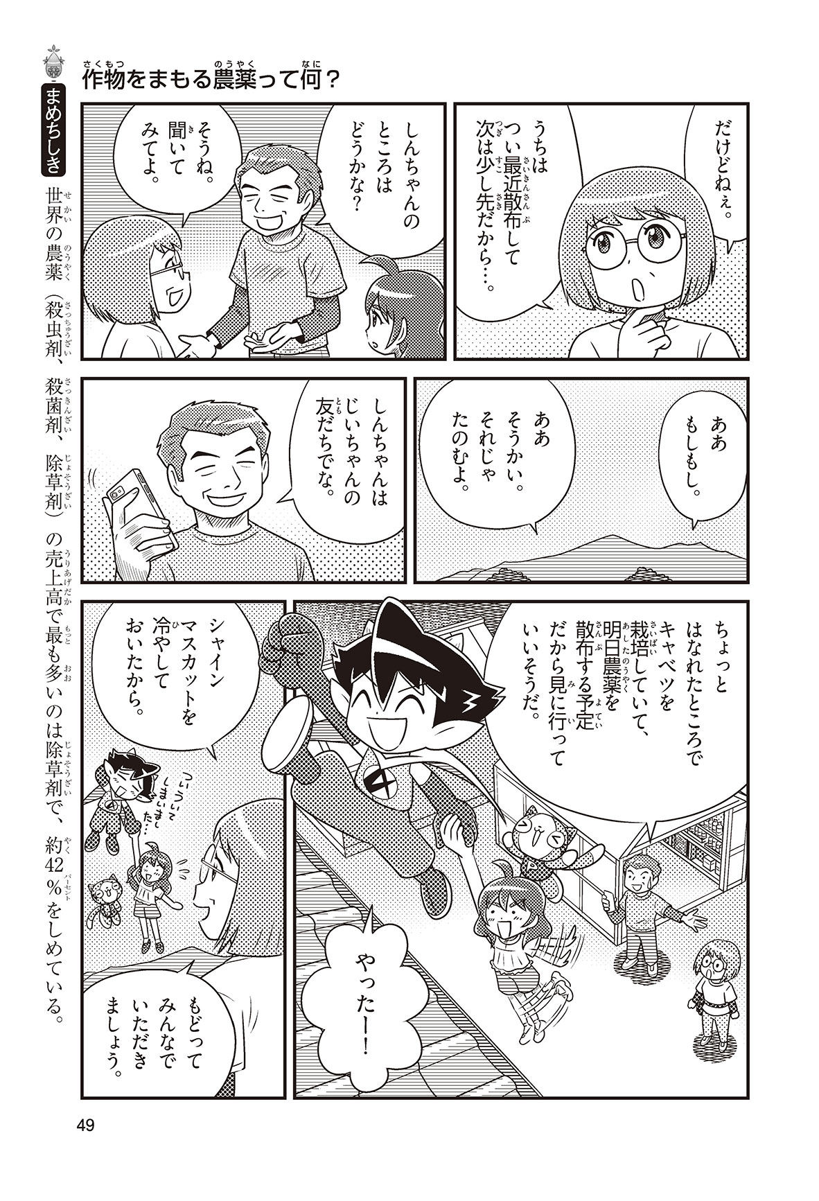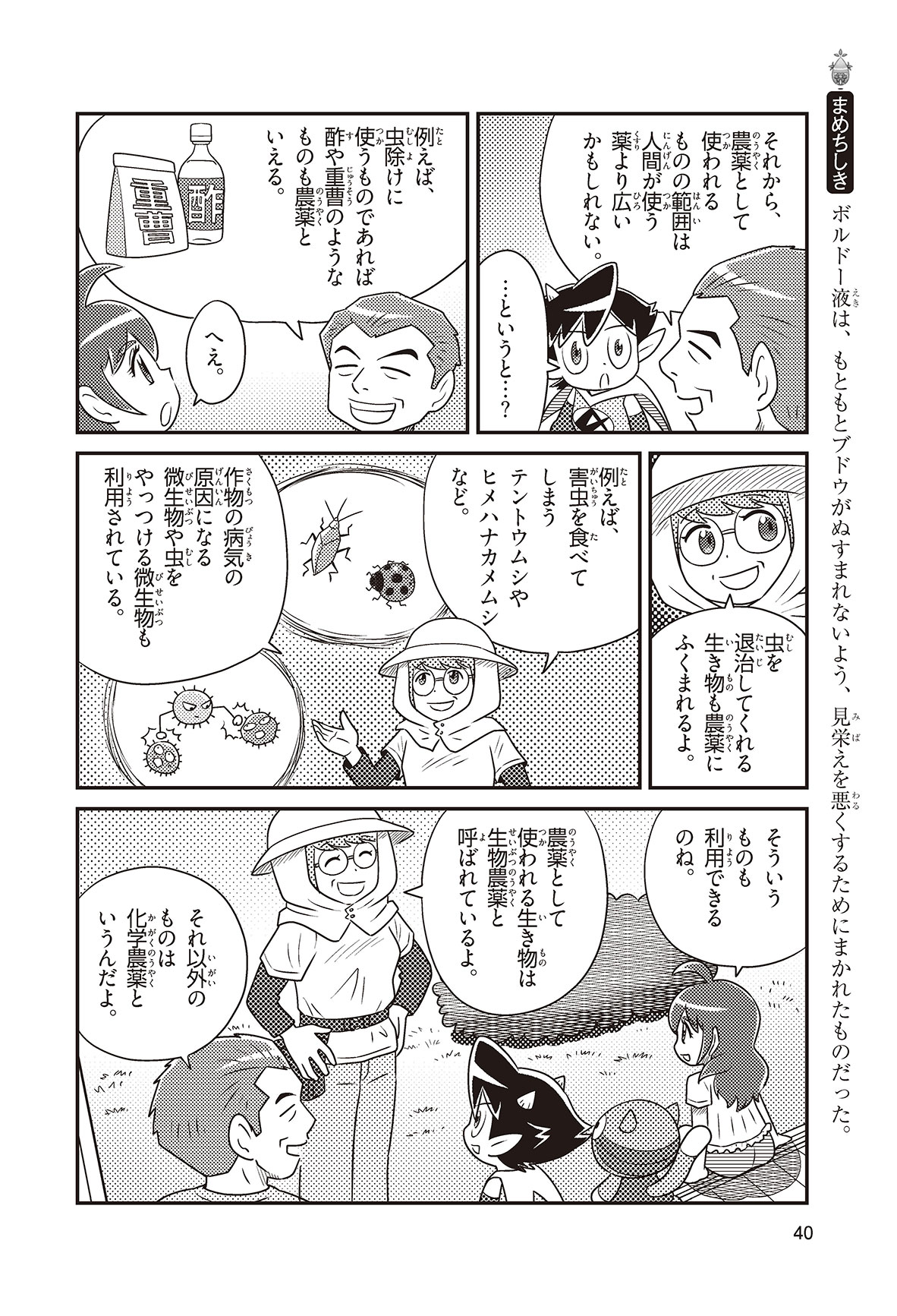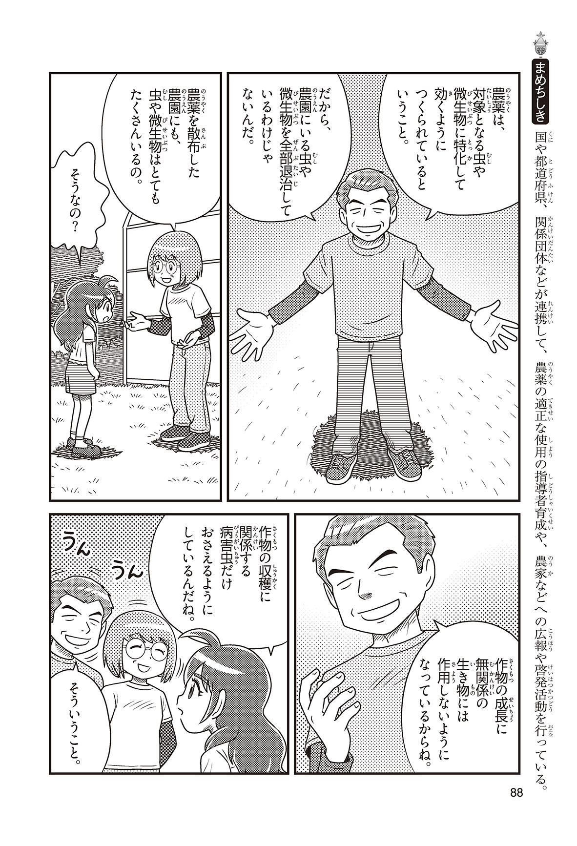 みんなの食料を生産するために、農家の人びとが、穀物や野菜、くだものなどを栽培している。だけど、作物は、病気や虫、雑草などの害を受けることがある。この本を読むと、病気や虫などの害から作物をまもるための工夫や、農薬の役割や使われ方、安全性などがわかるよ。