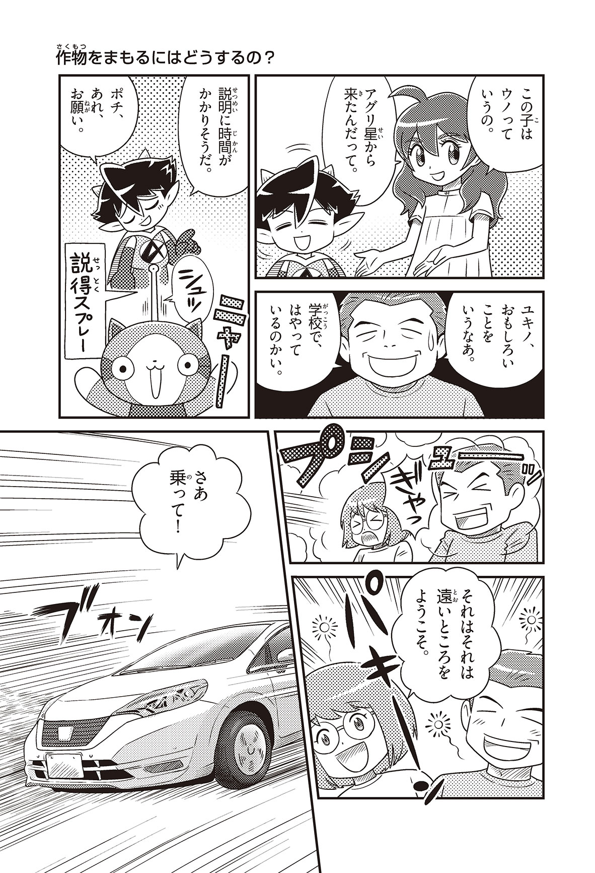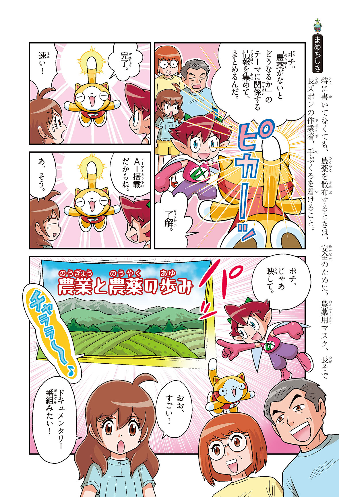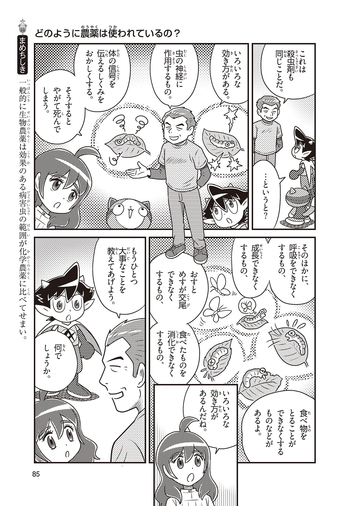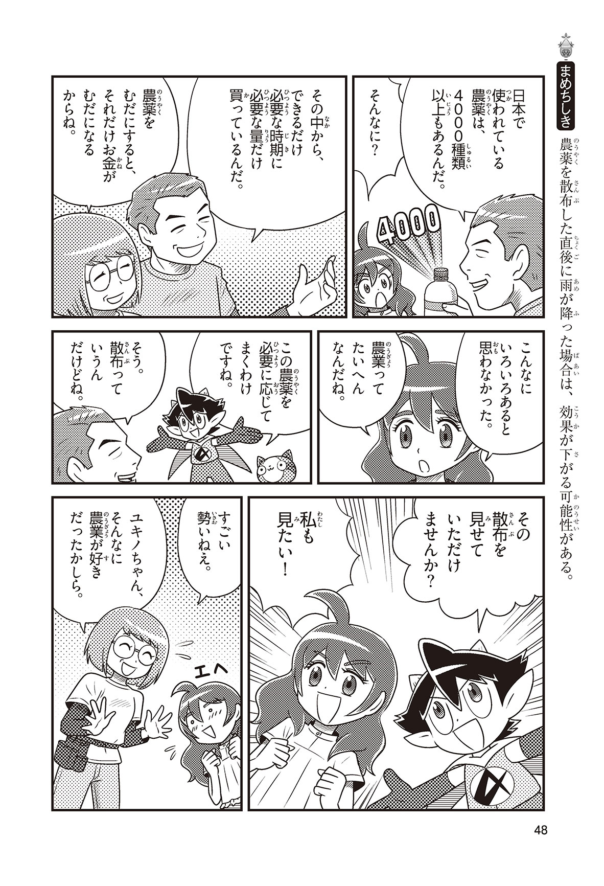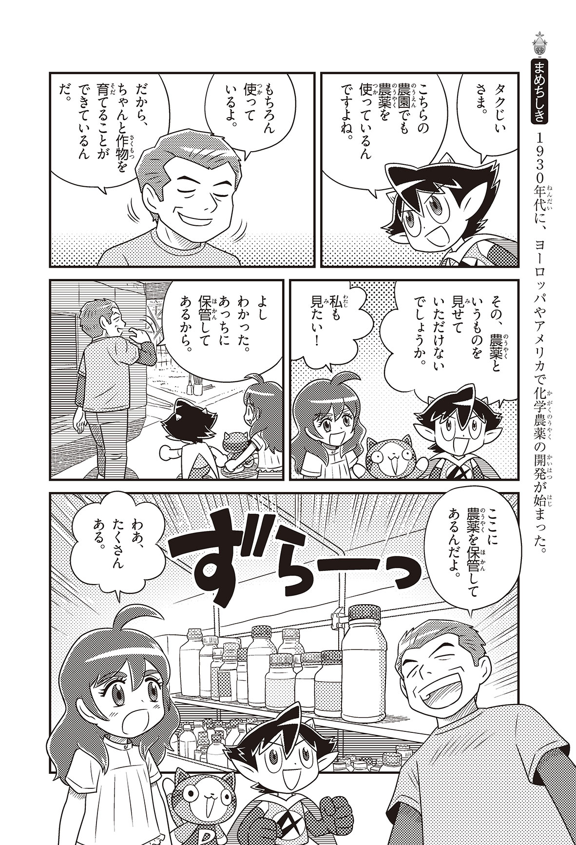 みんなの食料を生産するために、農家の人びとが、穀物や野菜、くだものなどを栽培している。だけど、作物は、病気や虫、雑草などの害を受けることがある。この本を読むと、病気や虫などの害から作物をまもるための工夫や、農薬の役割や使われ方、安全性などがわかるよ。