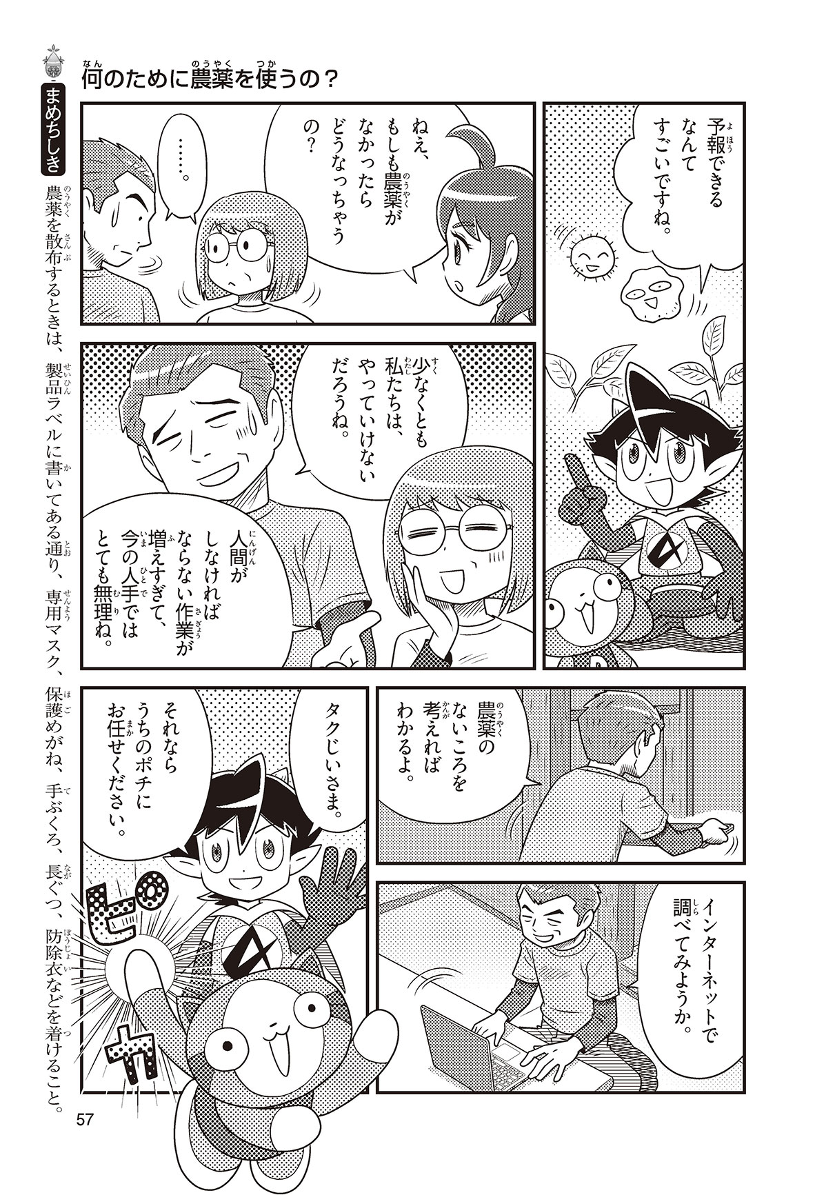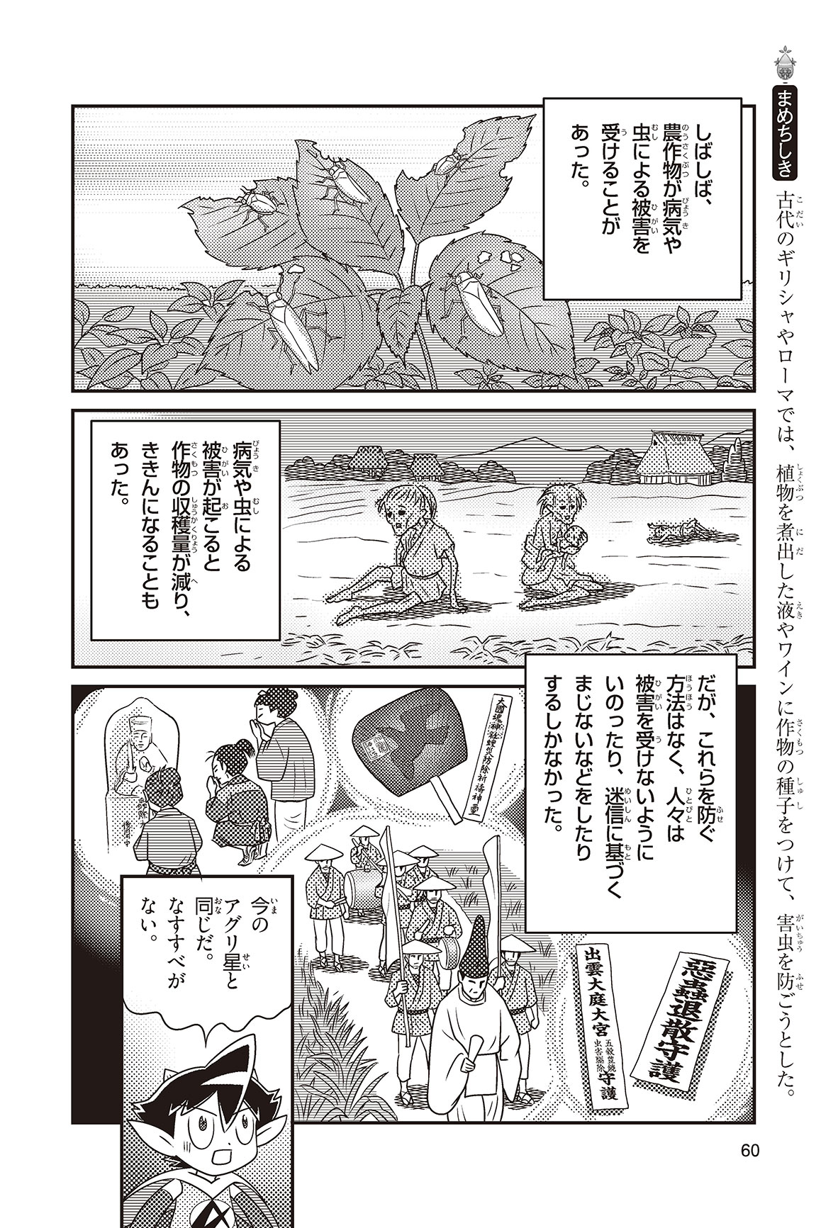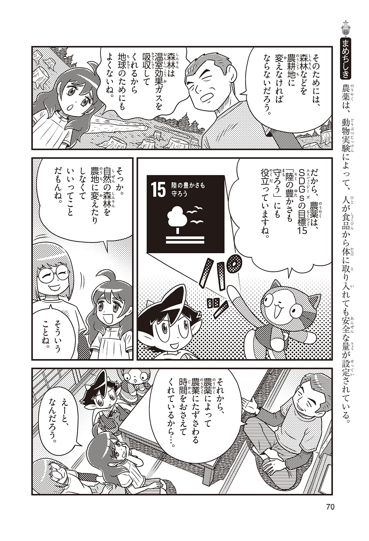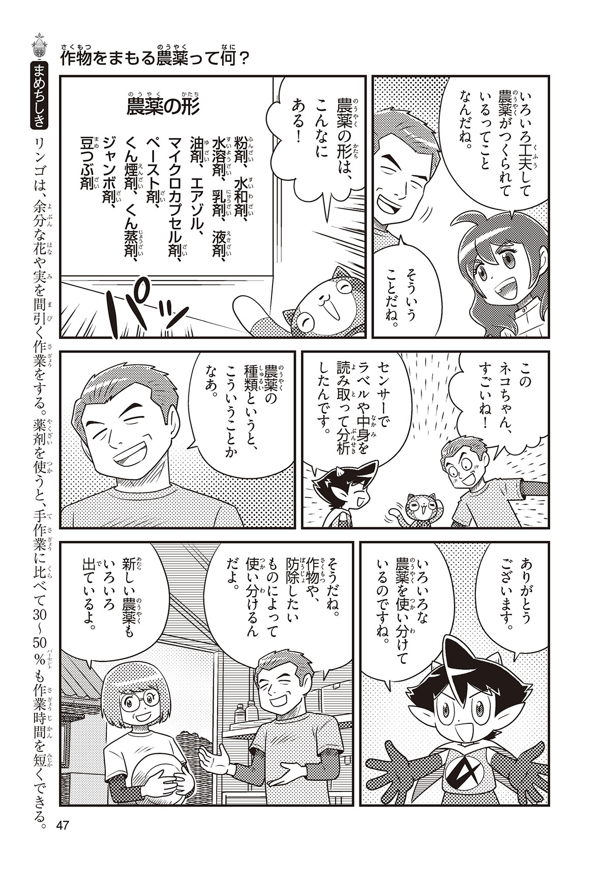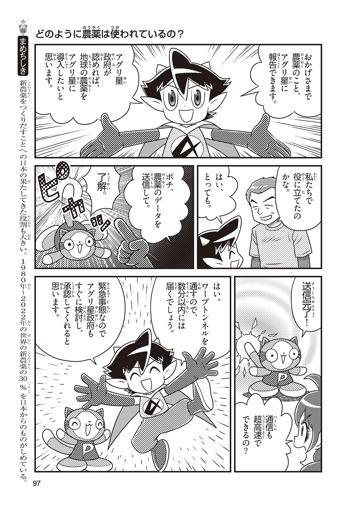 みんなの食料を生産するために、農家の人びとが、穀物や野菜、くだものなどを栽培している。だけど、作物は、病気や虫、雑草などの害を受けることがある。この本を読むと、病気や虫などの害から作物をまもるための工夫や、農薬の役割や使われ方、安全性などがわかるよ。