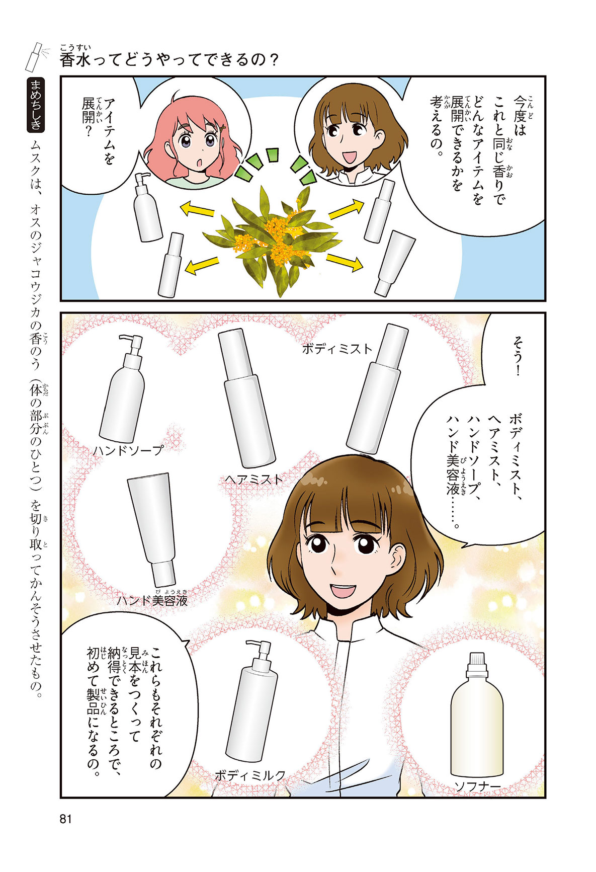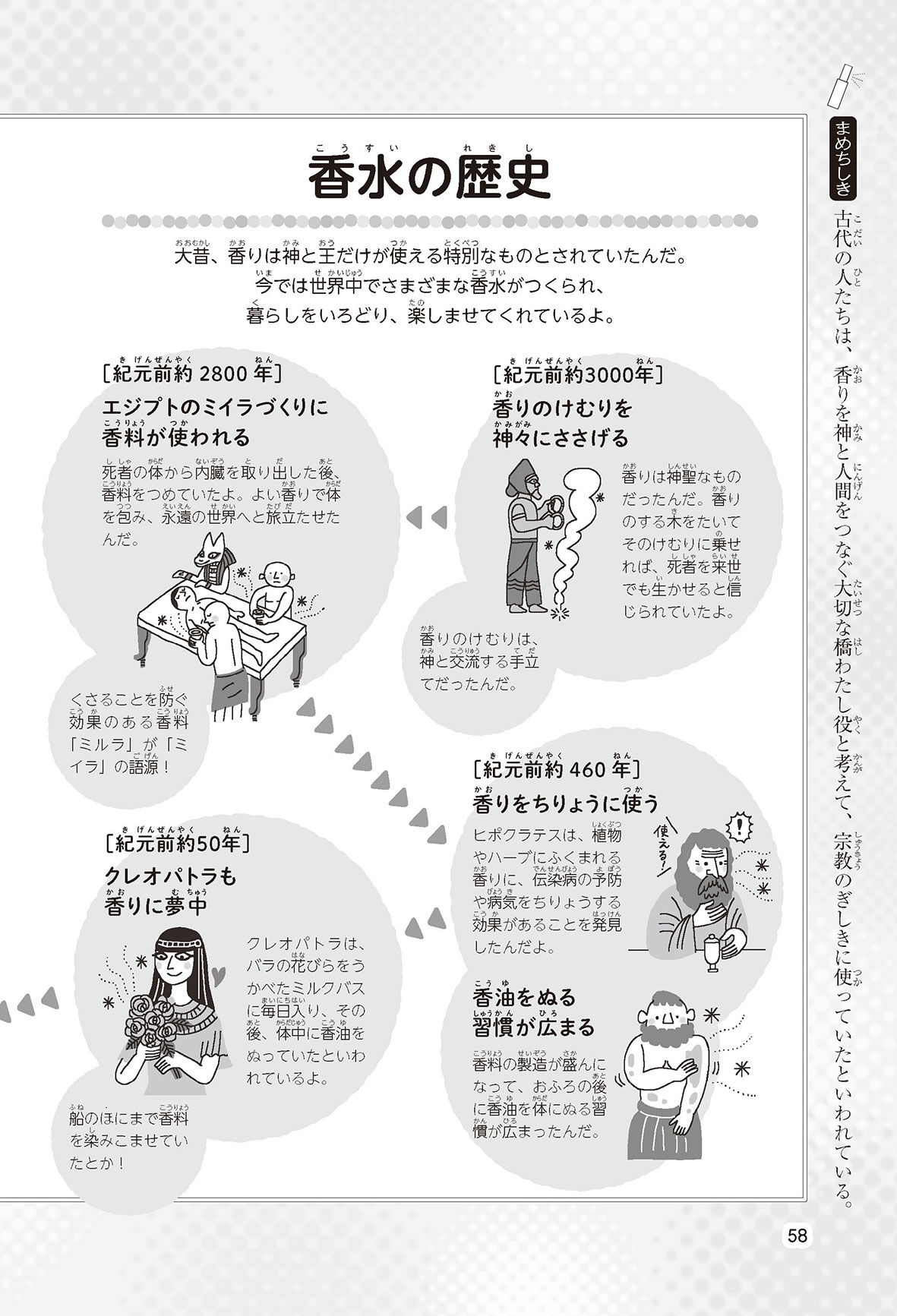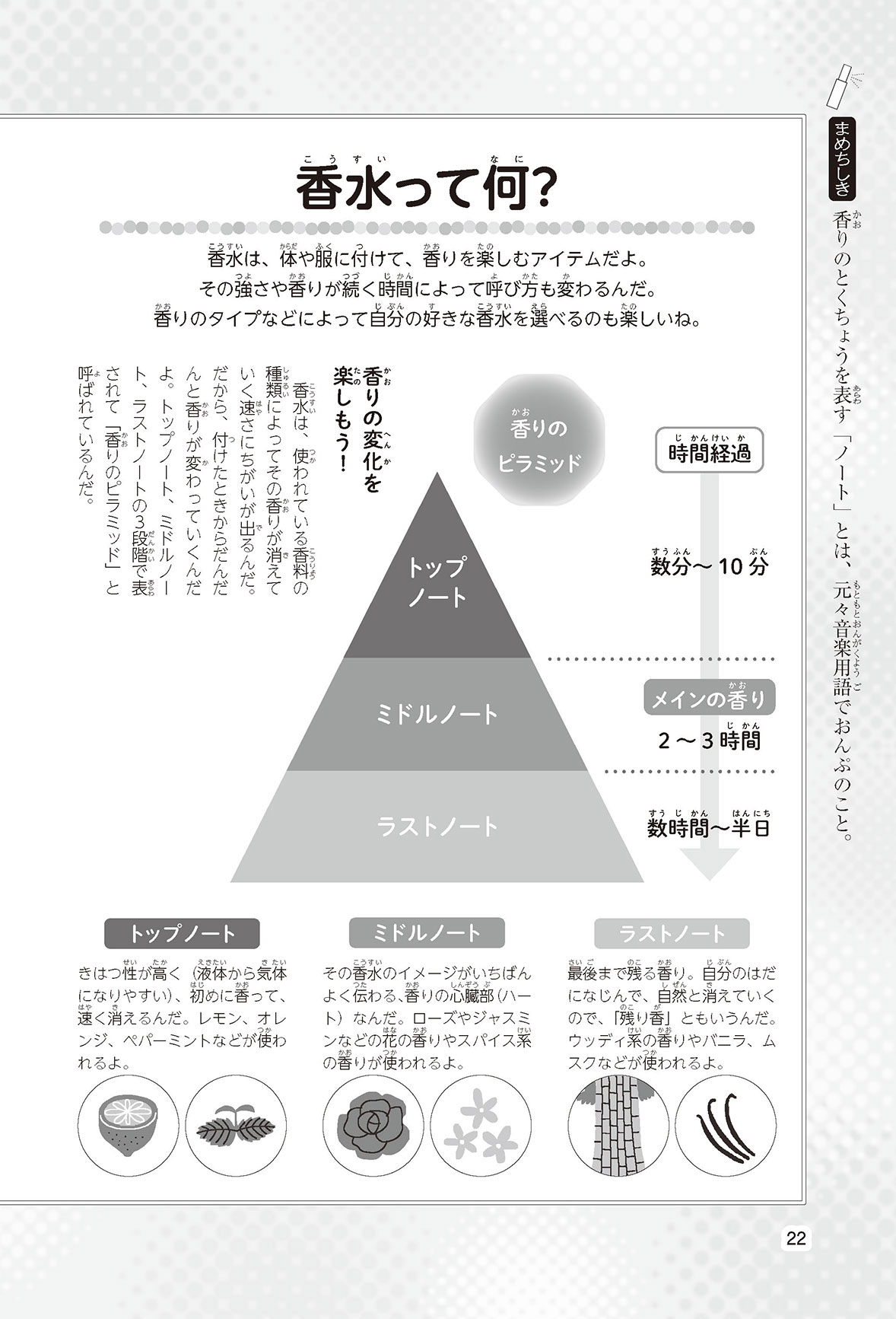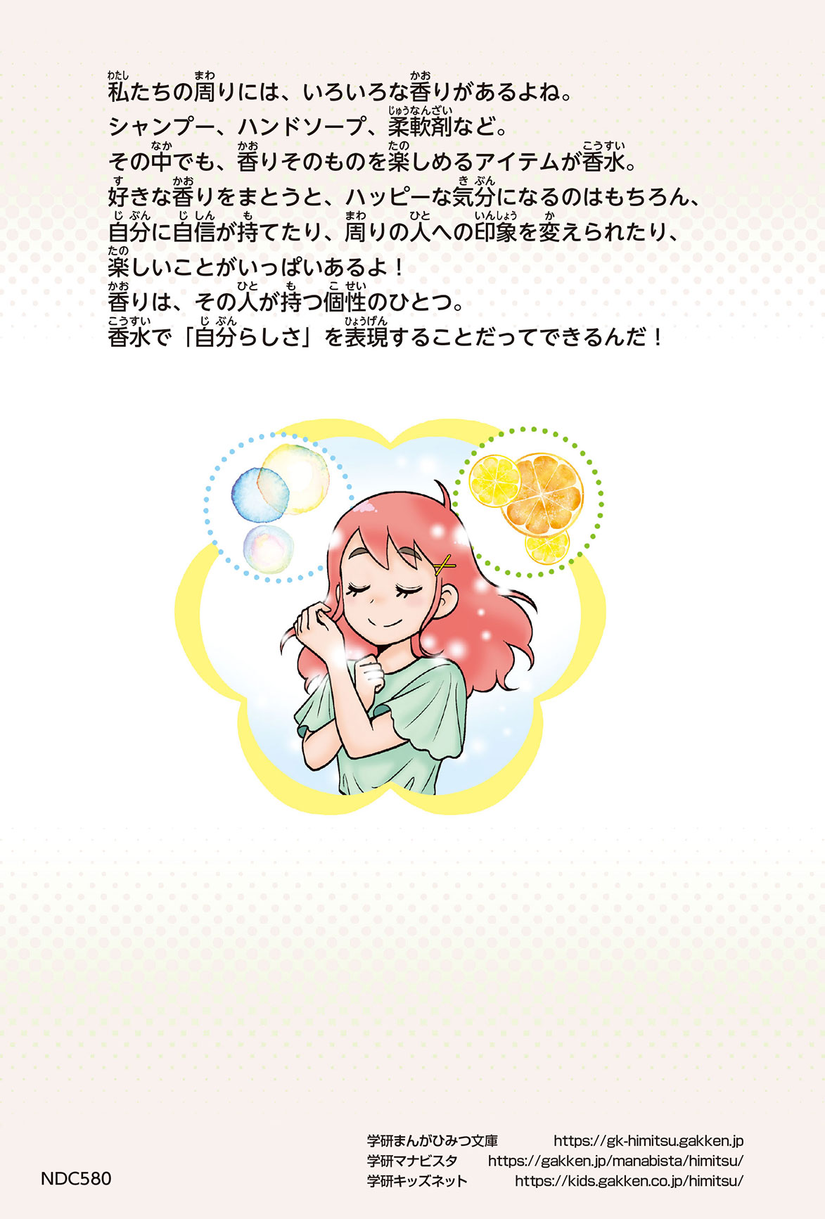 好きな香りをまとうと、自分に自信が持てたり、周りの人への印象を変えられたり、楽しいことがいっぱい!香りは、その人が持つ個性のひとつ。香水で「自分らしさ」を表現することだってできるんだ!そのひみつをこの本で調べてみよう。