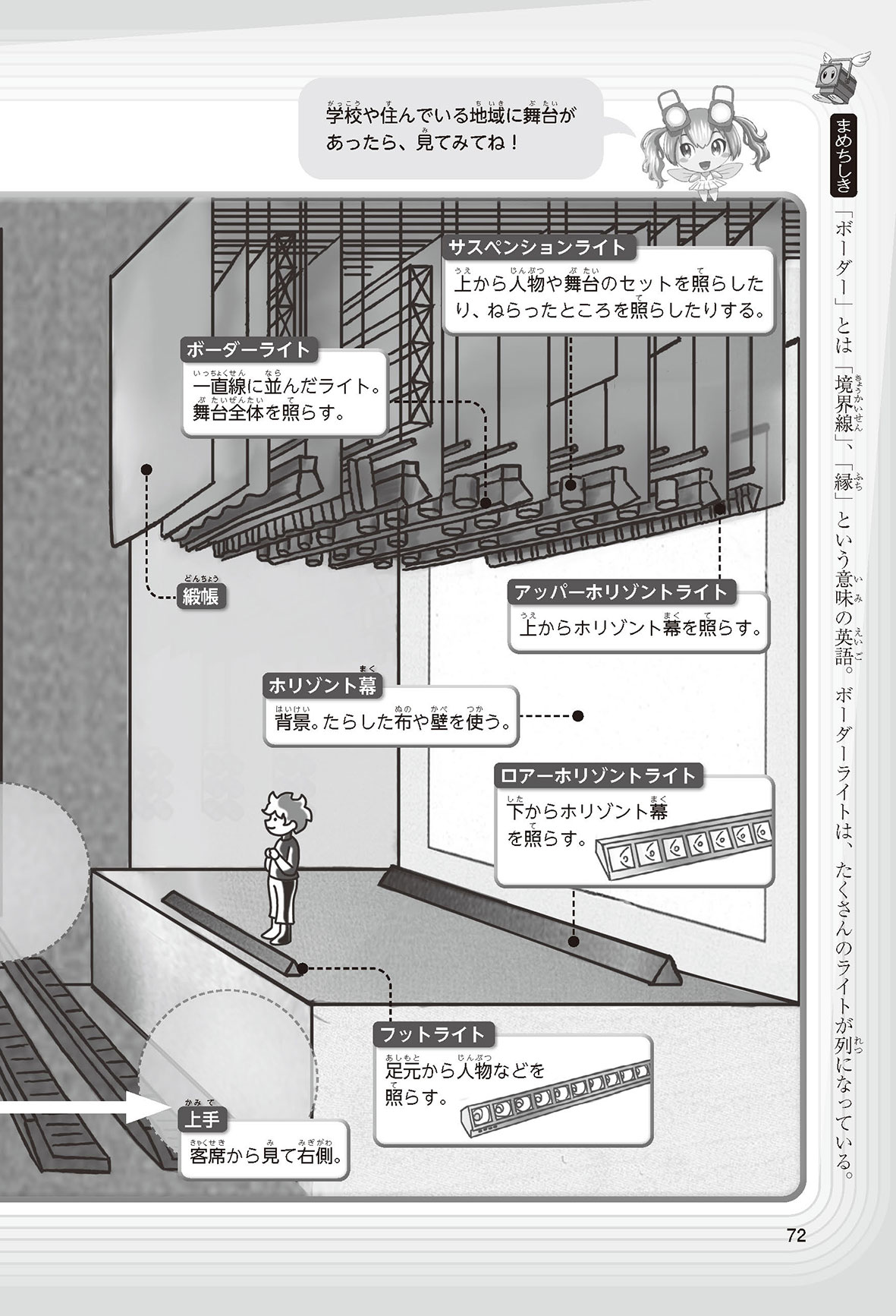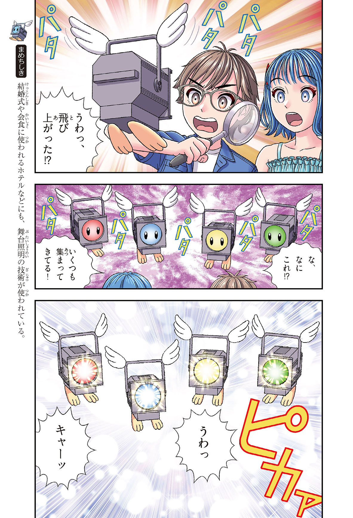 舞台上の人たちや物語をよりかがやかせてくれるのが「舞台照明」だよ。