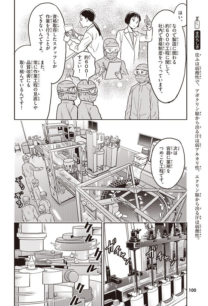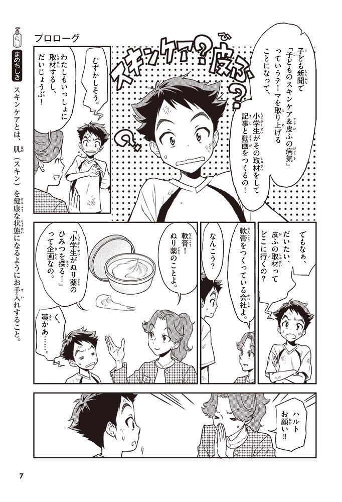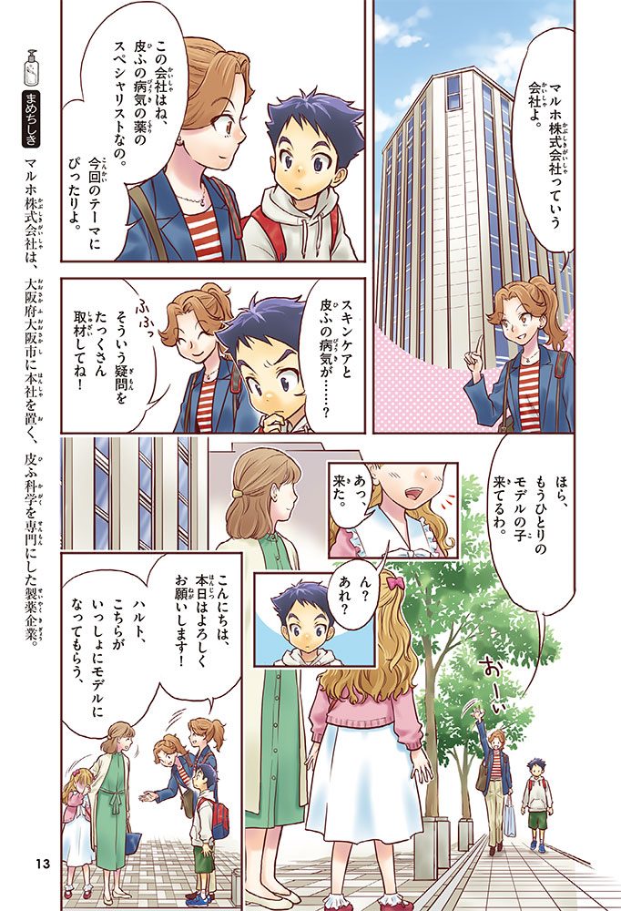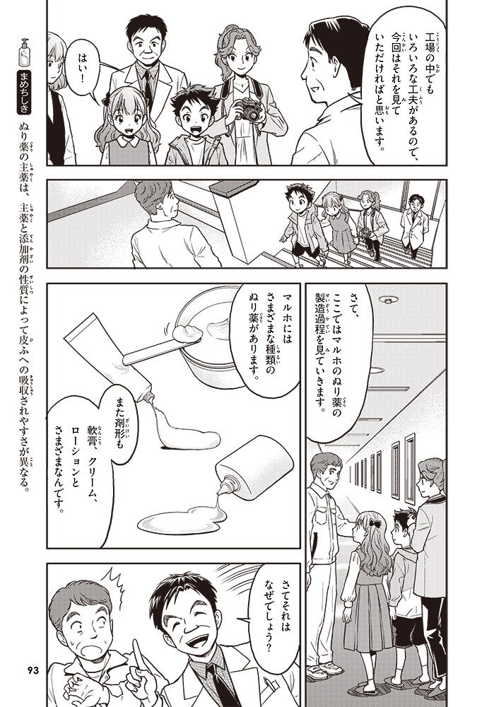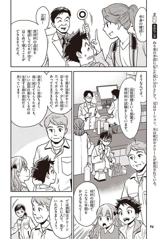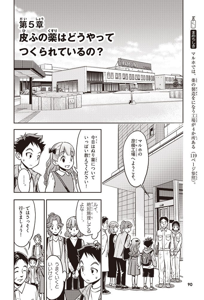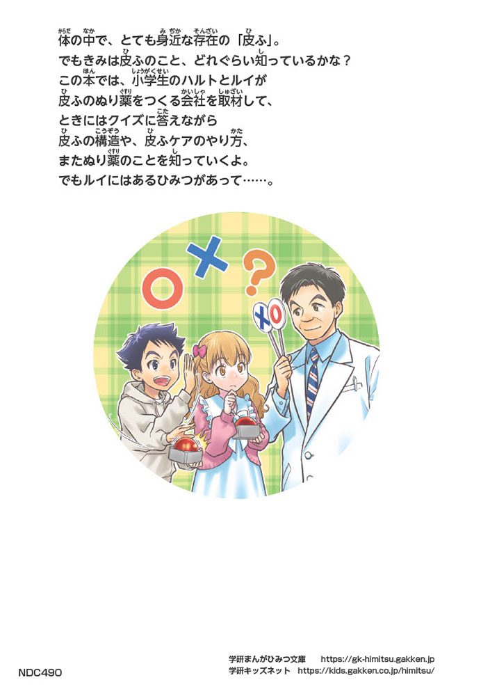 この本では、小学生のハルトとルイが、皮ふのぬり薬をつくっている会社に行って