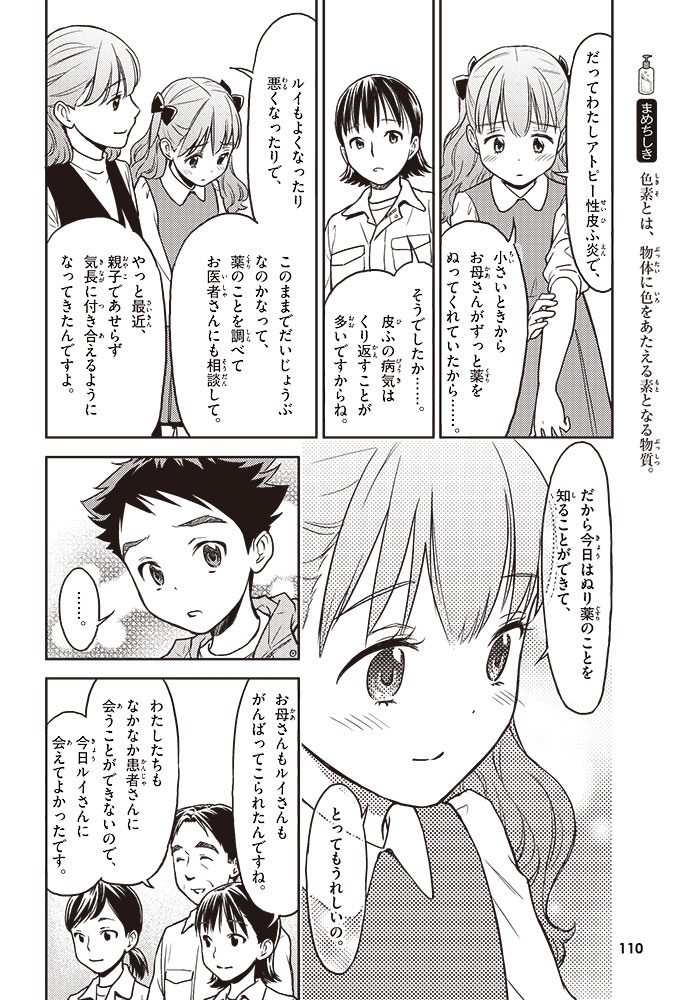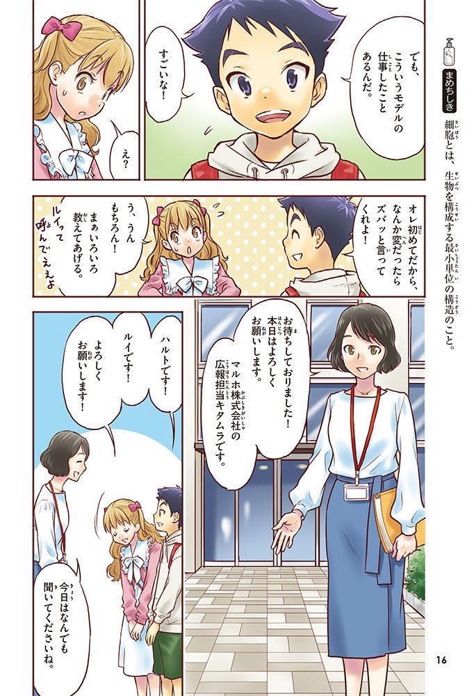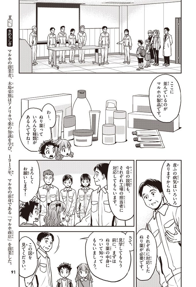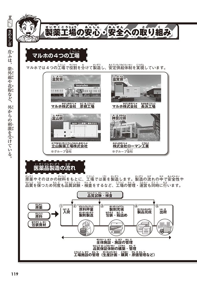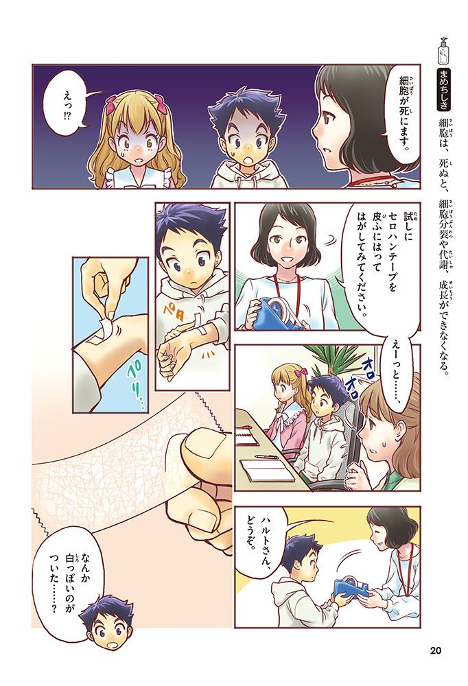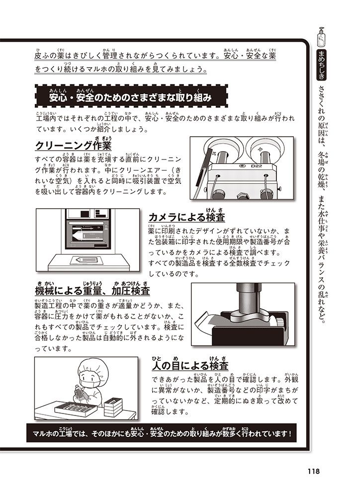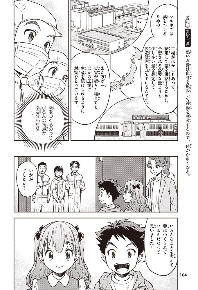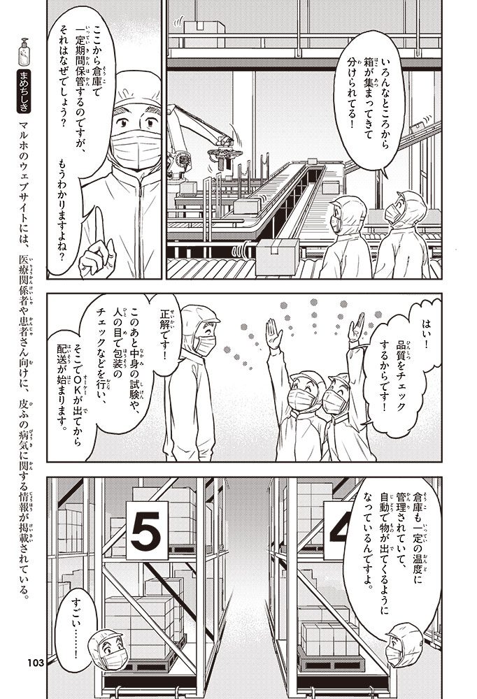 この本では、小学生のハルトとルイが、皮ふのぬり薬をつくっている会社に行って