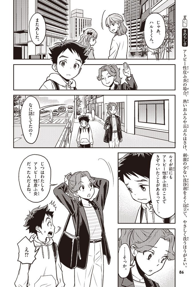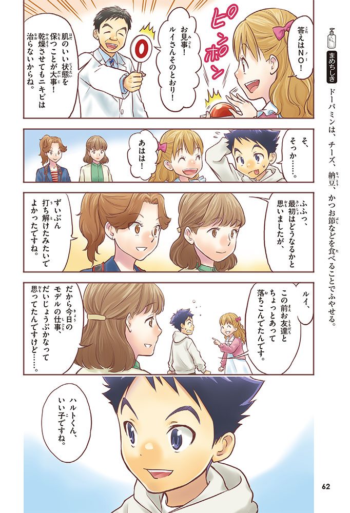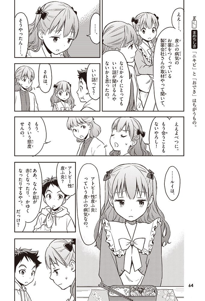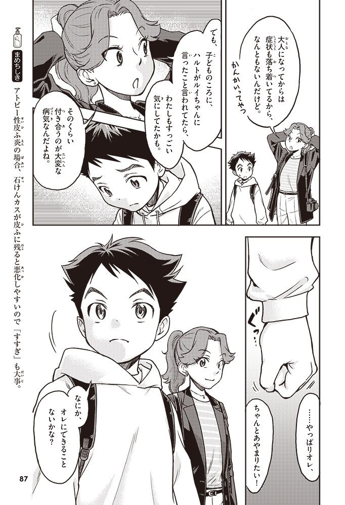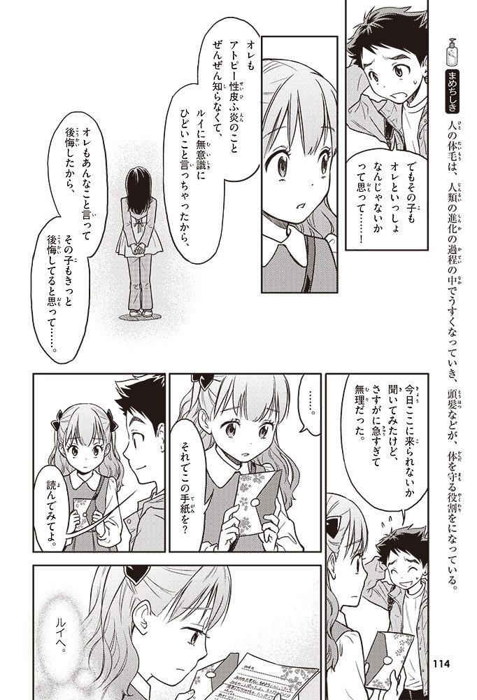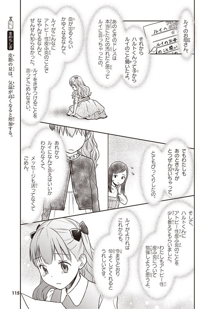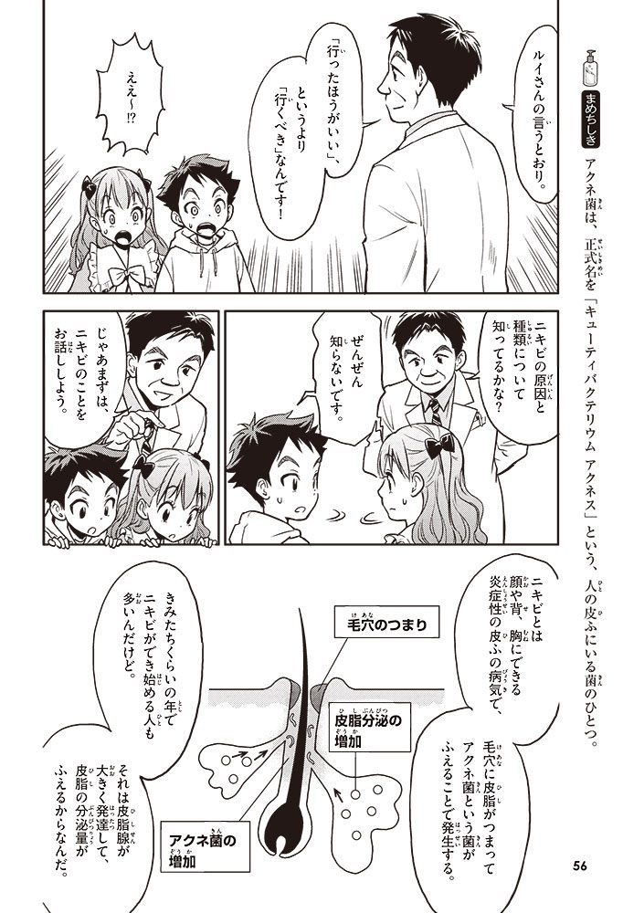 この本では、小学生のハルトとルイが、皮ふのぬり薬をつくっている会社に行って