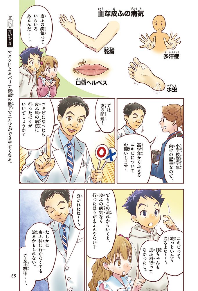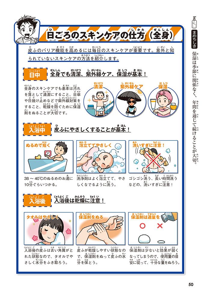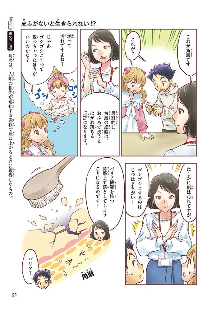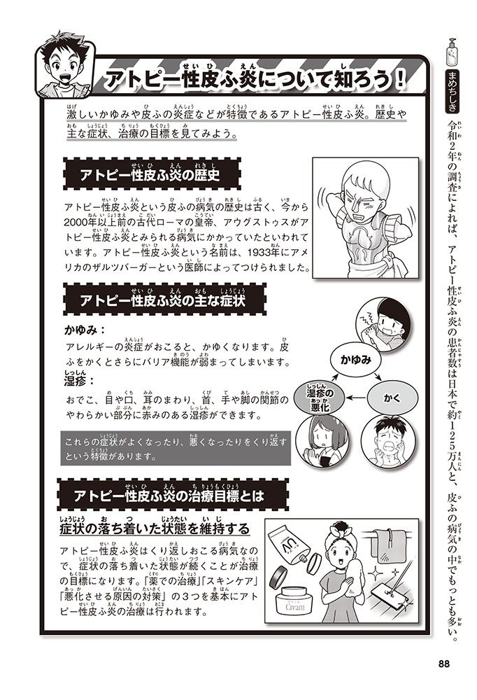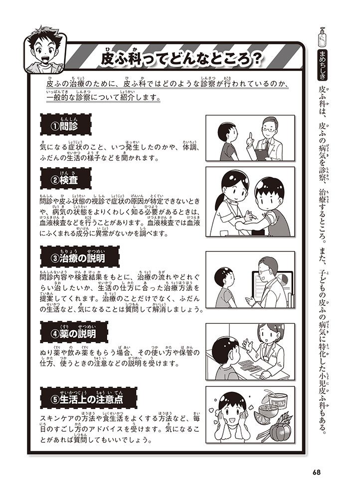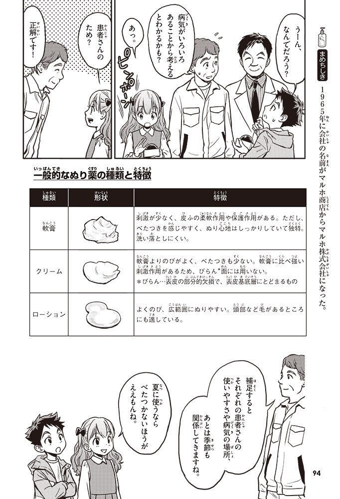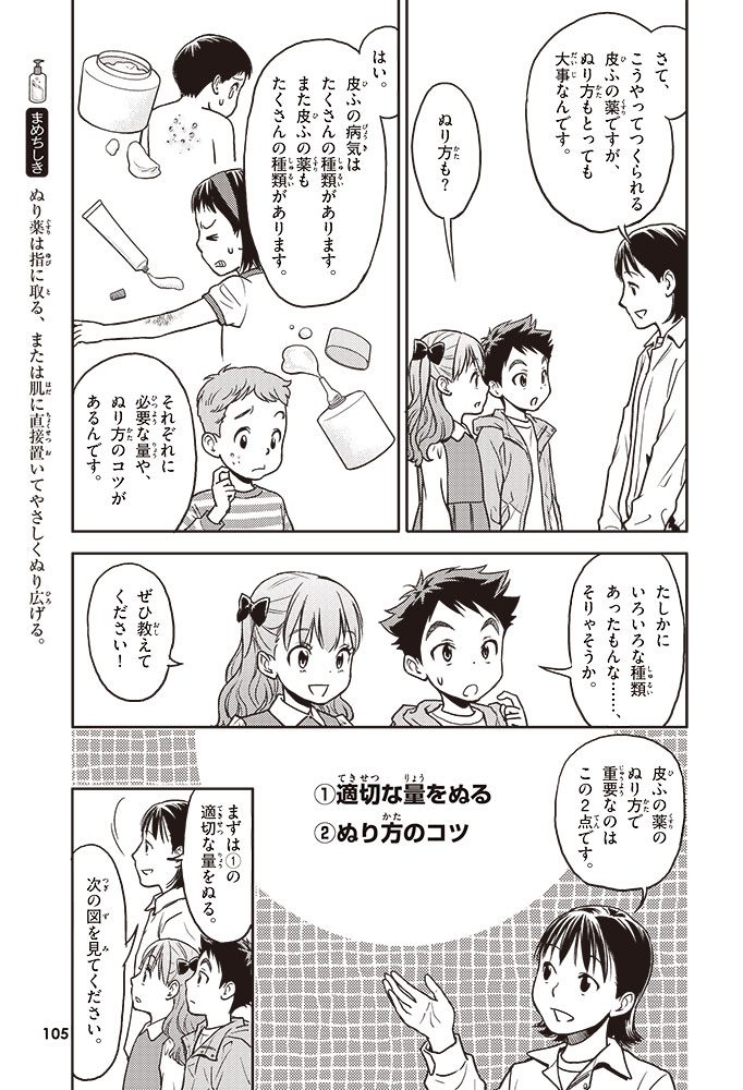 皮ふの役割や病気、それを治すためのぬり薬について学んでいくんだ。