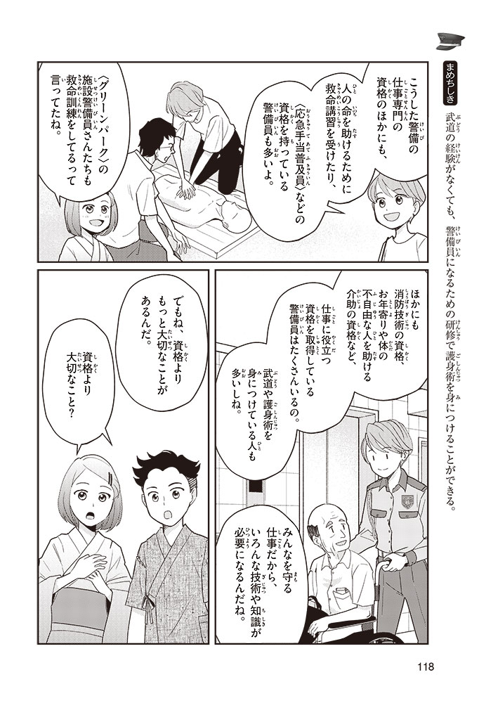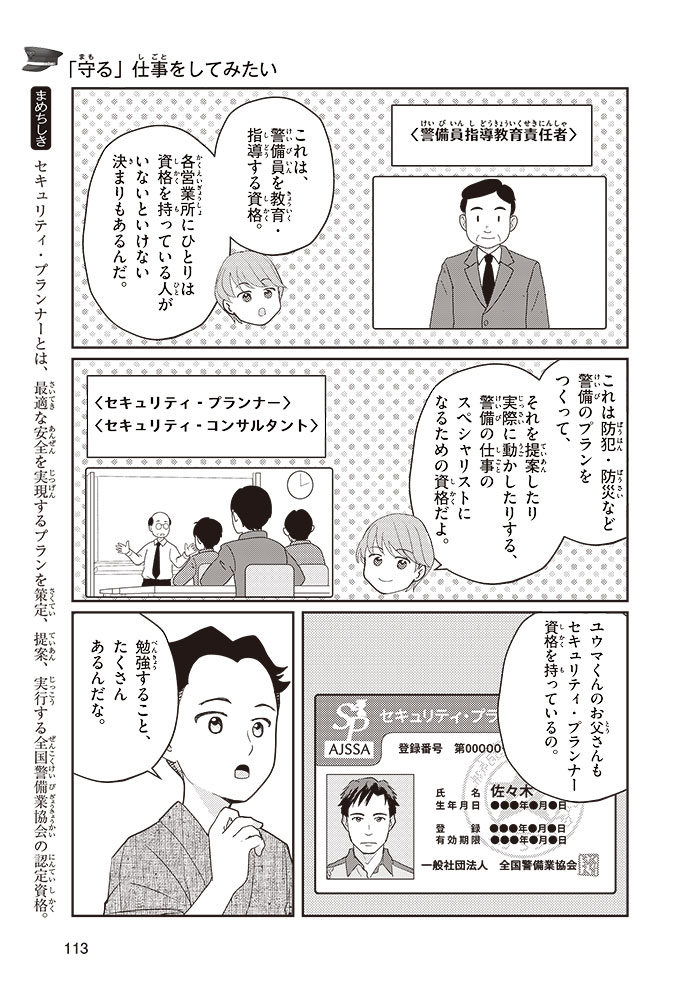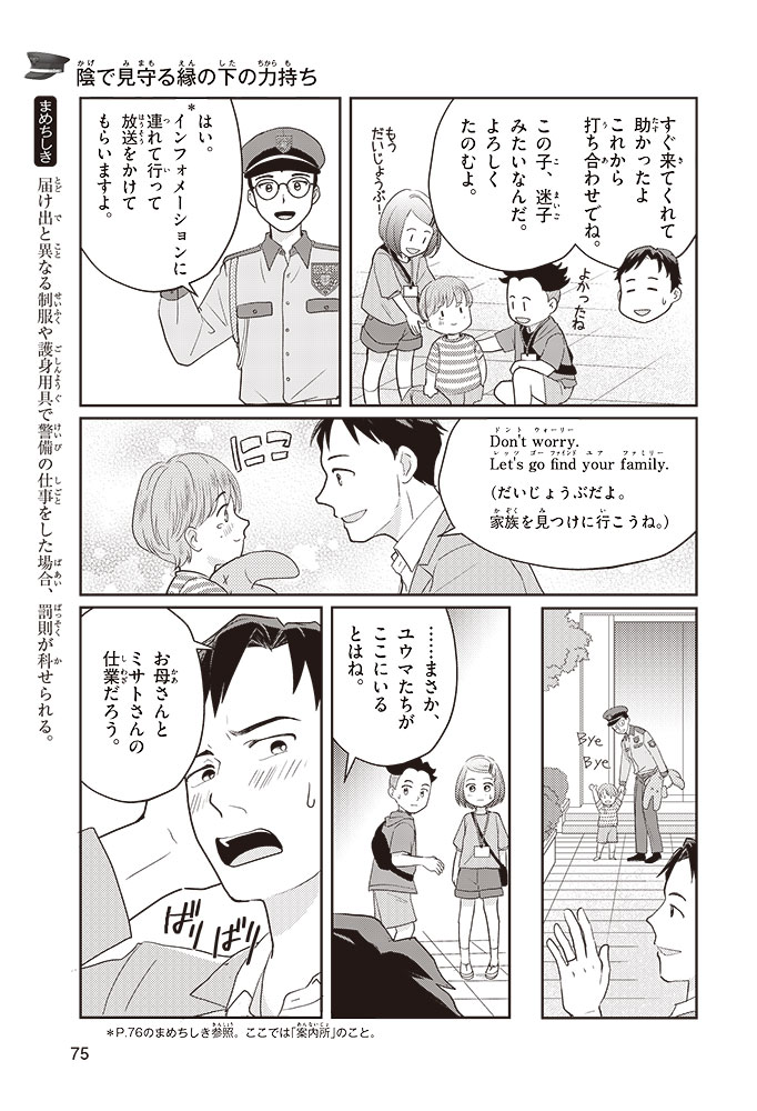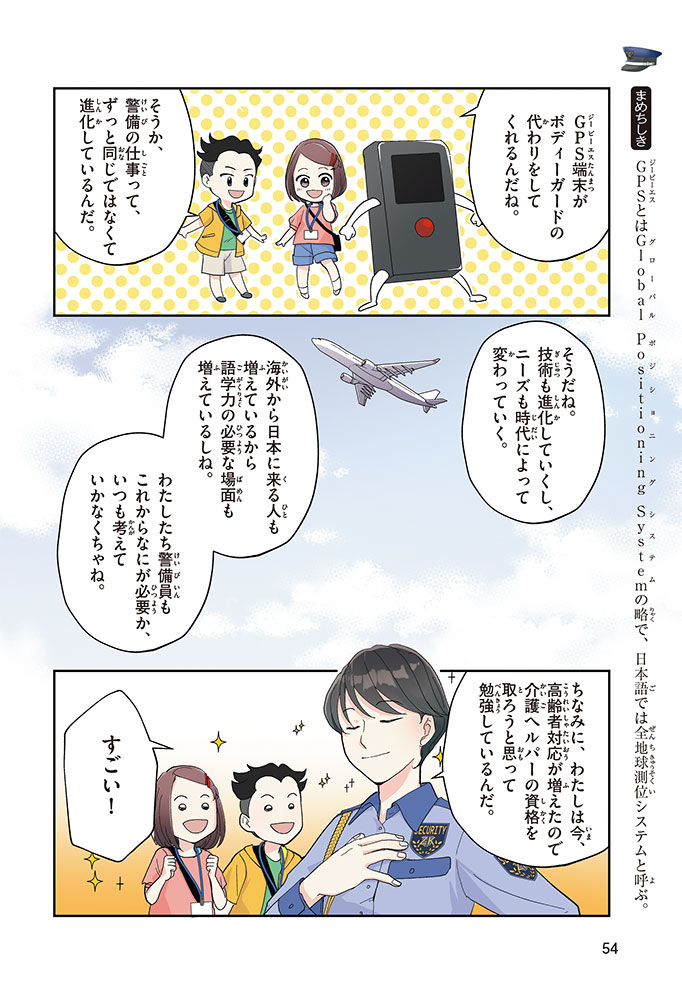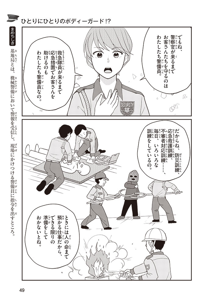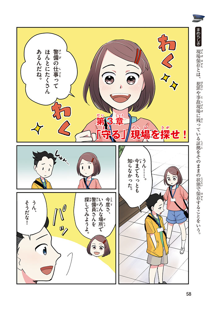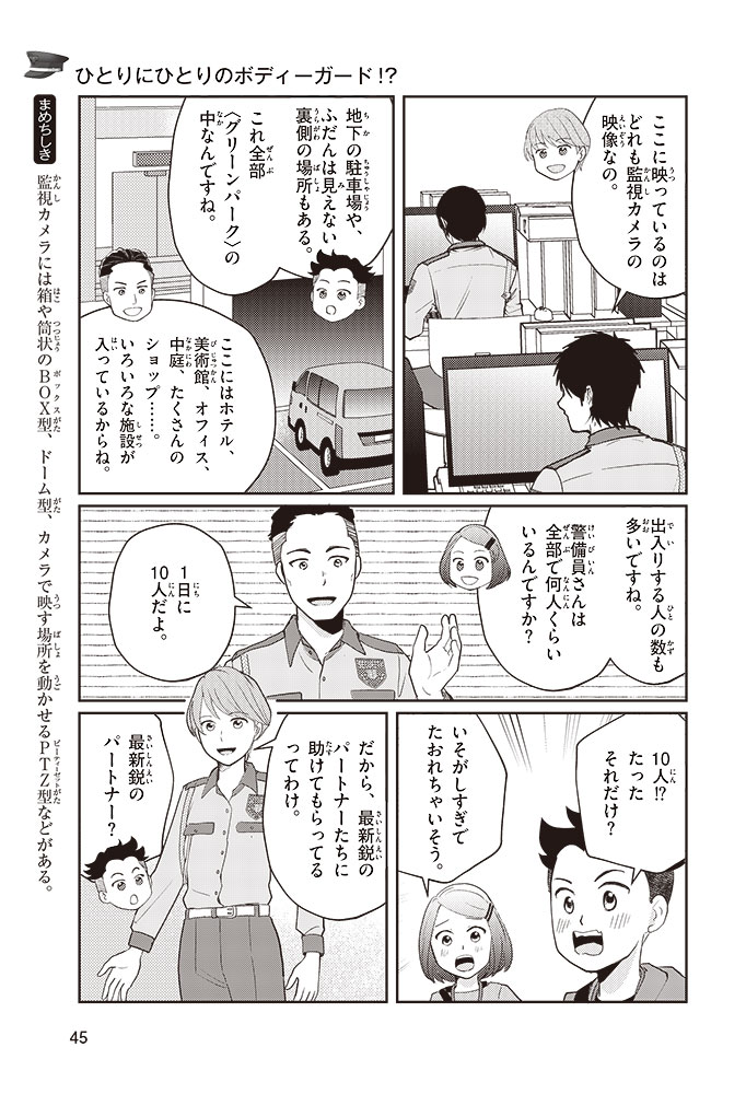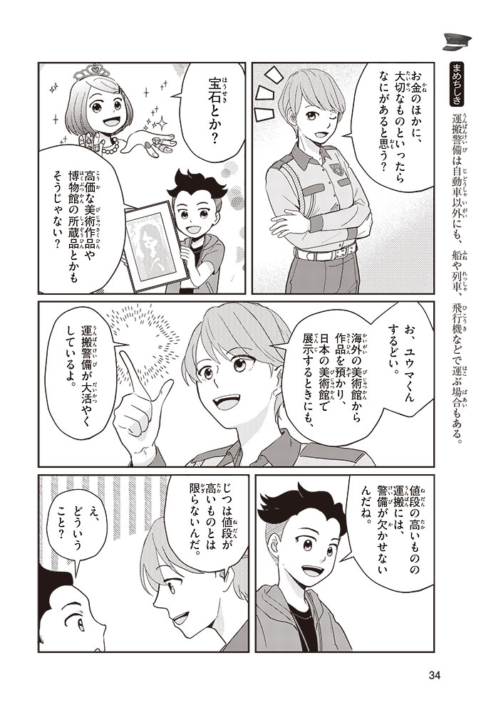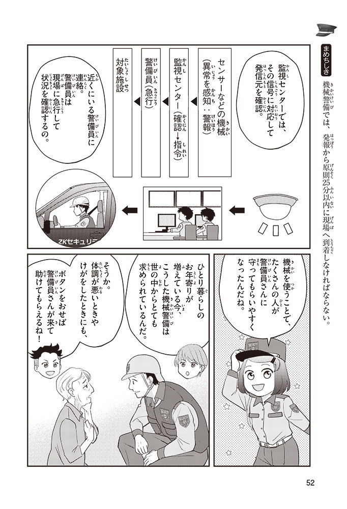 みんなは警備員という仕事を、見たことや聞いたことはあるかな? どんな場所で、どんなふうに、どんなことに気をつけて警備がされているか、知っているかな? じつは警備の仕事がされていないと、安心して買い物することや、お祭りやライブ、旅行など楽しいイベントができなくなるかもしれないんだよ。本書では、警備会社で働く父をもつ小学生のユウマと、友だちのアオイが警備の仕事についての調べ学習をすることに。みんなのなにげない日常を、しっかり守ってくれている警備業のひみつを、ユウマとアオイといっしょに見ていこう!