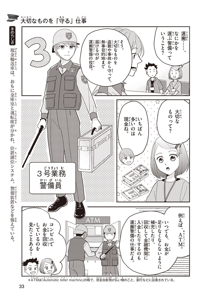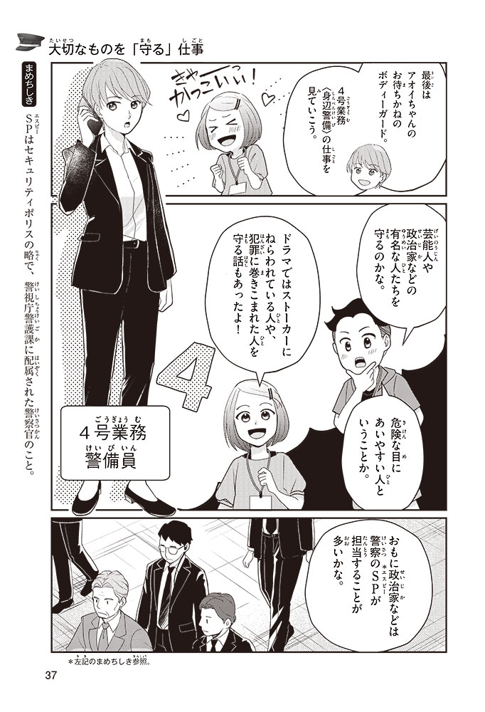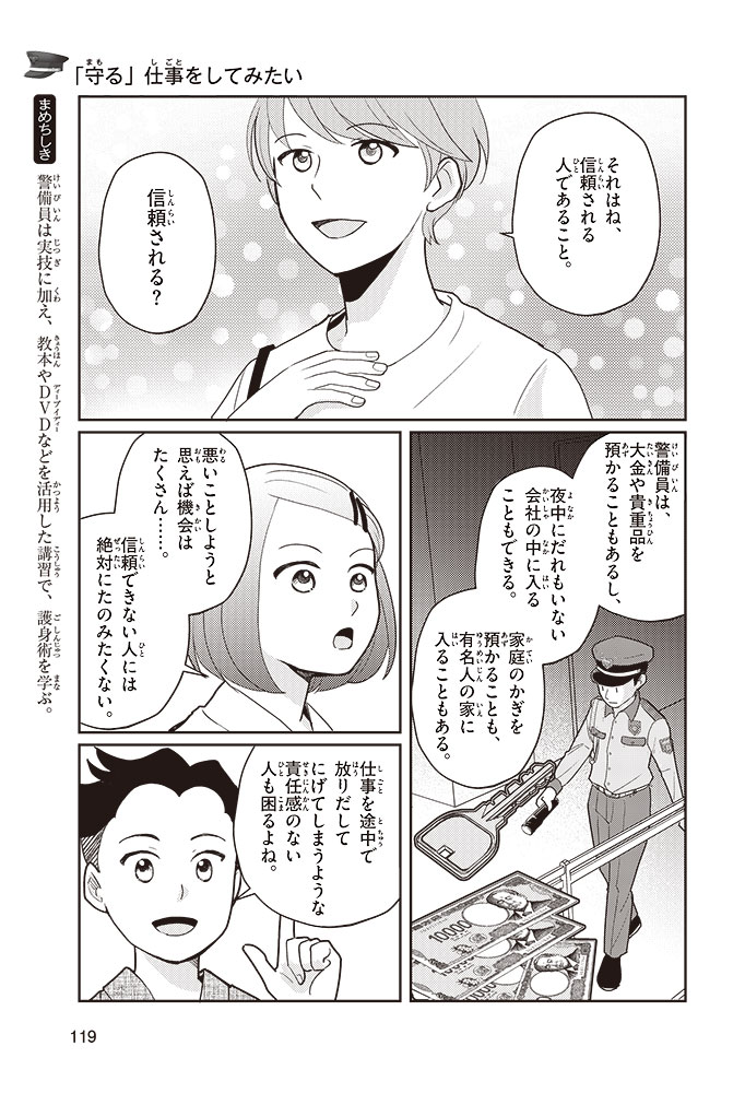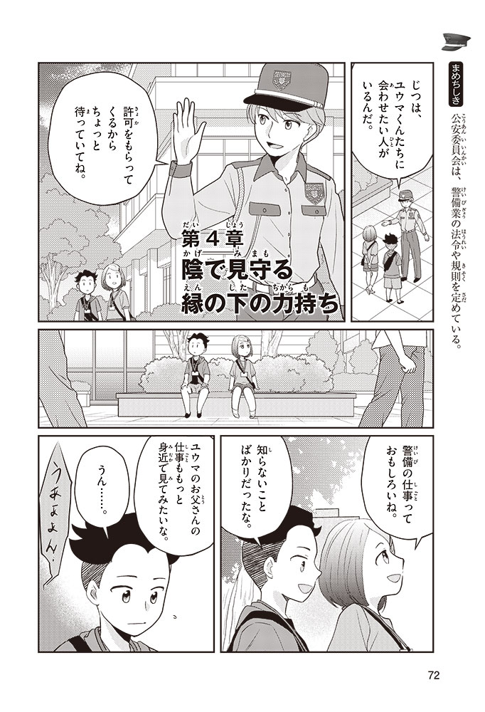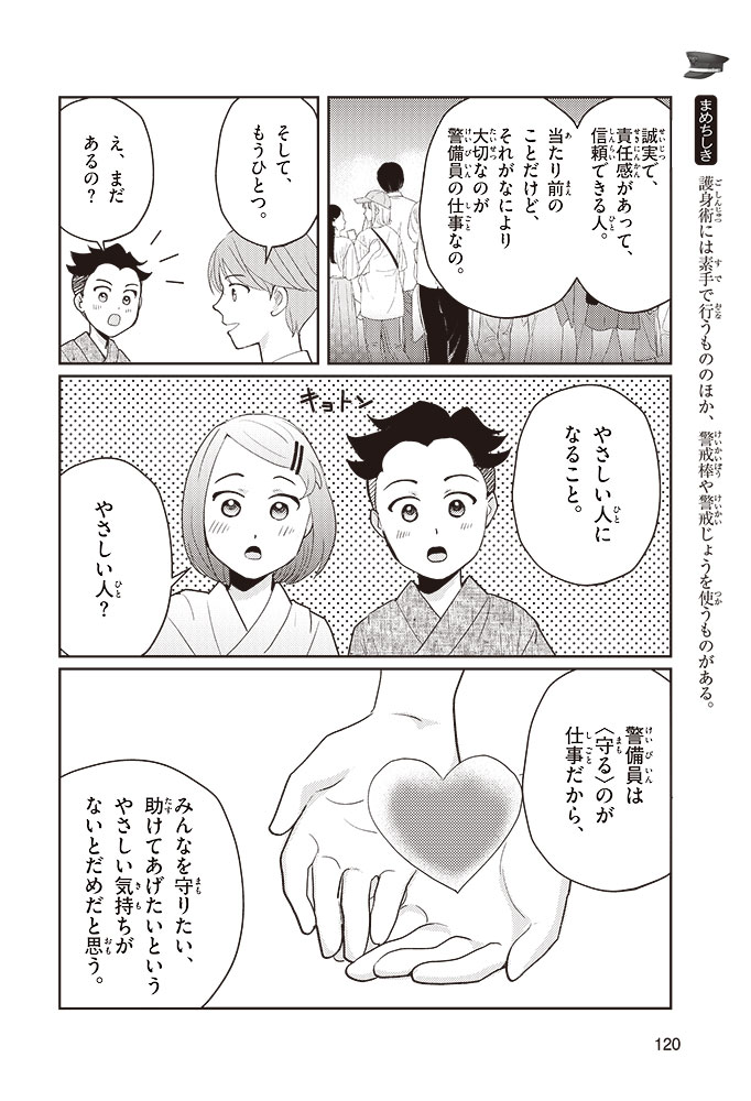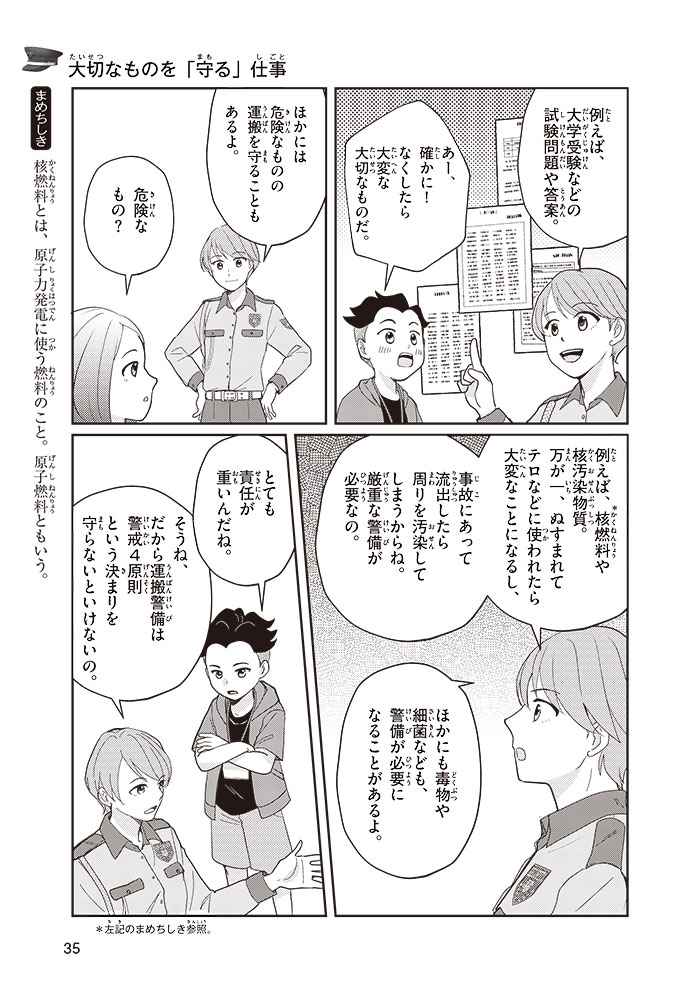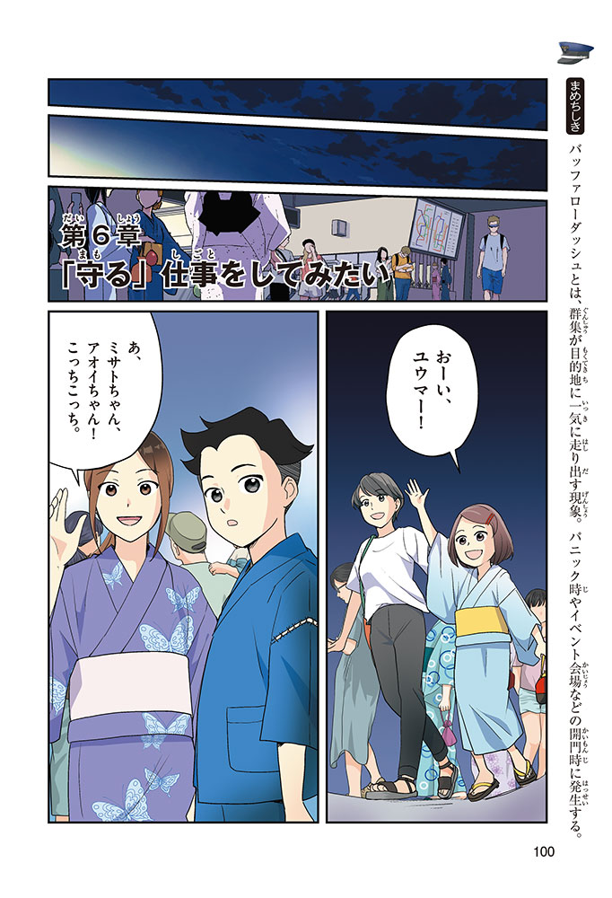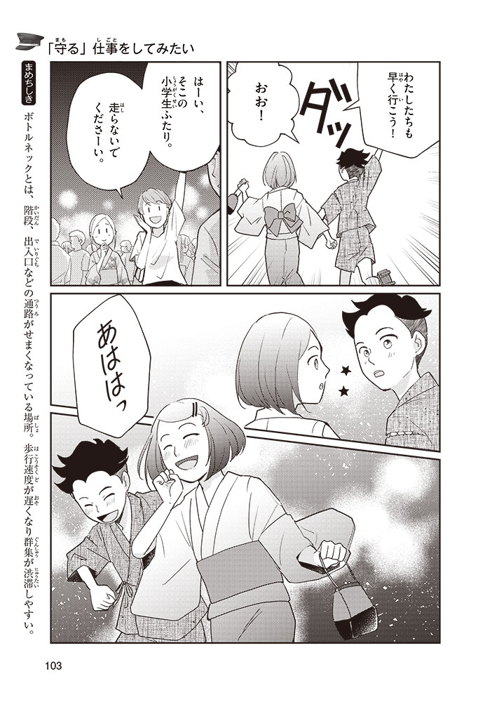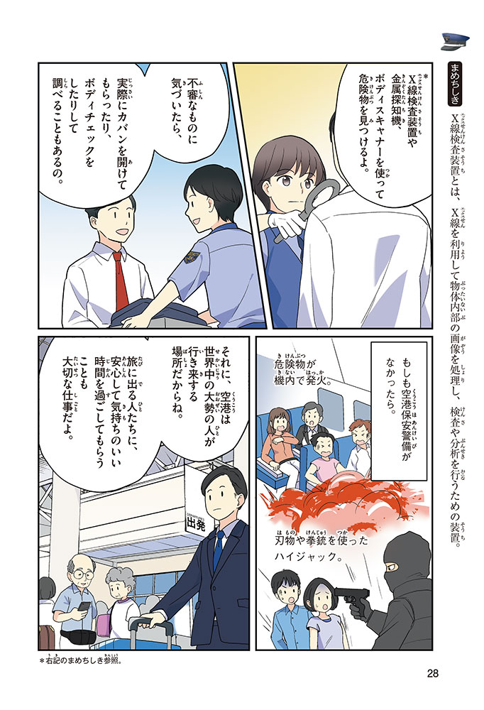 みんなは警備員という仕事を、見たことや聞いたことはあるかな? どんな場所で、どんなふうに、どんなことに気をつけて警備がされているか、知っているかな? じつは警備の仕事がされていないと、安心して買い物することや、お祭りやライブ、旅行など楽しいイベントができなくなるかもしれないんだよ。本書では、警備会社で働く父をもつ小学生のユウマと、友だちのアオイが警備の仕事についての調べ学習をすることに。みんなのなにげない日常を、しっかり守ってくれている警備業のひみつを、ユウマとアオイといっしょに見ていこう!