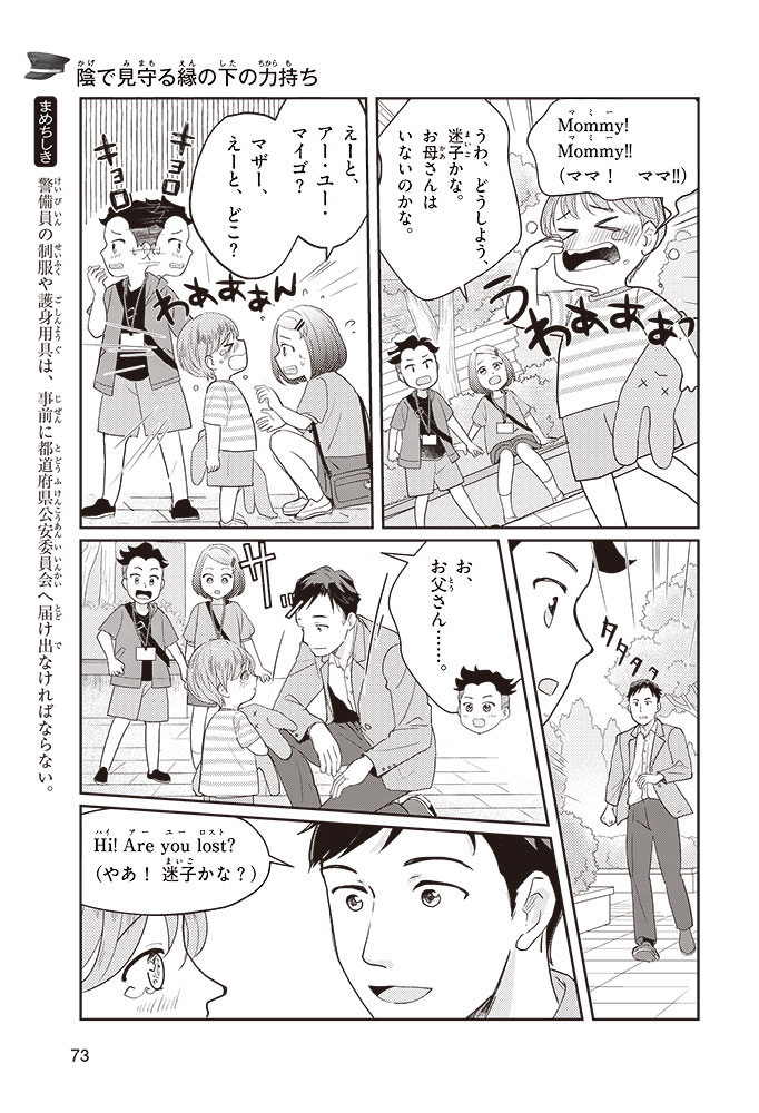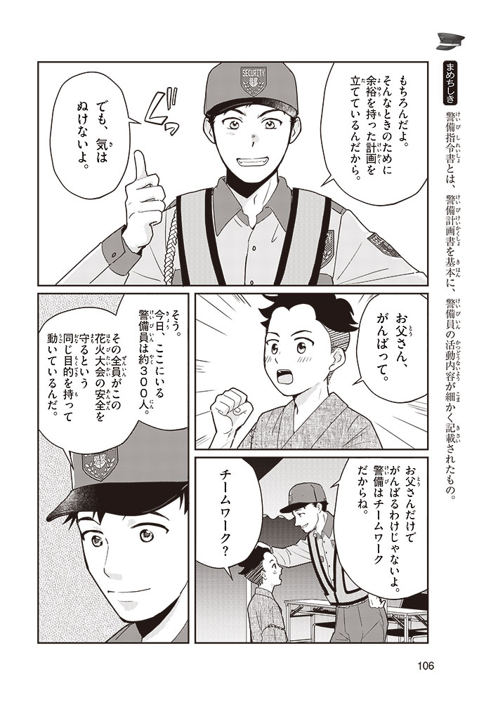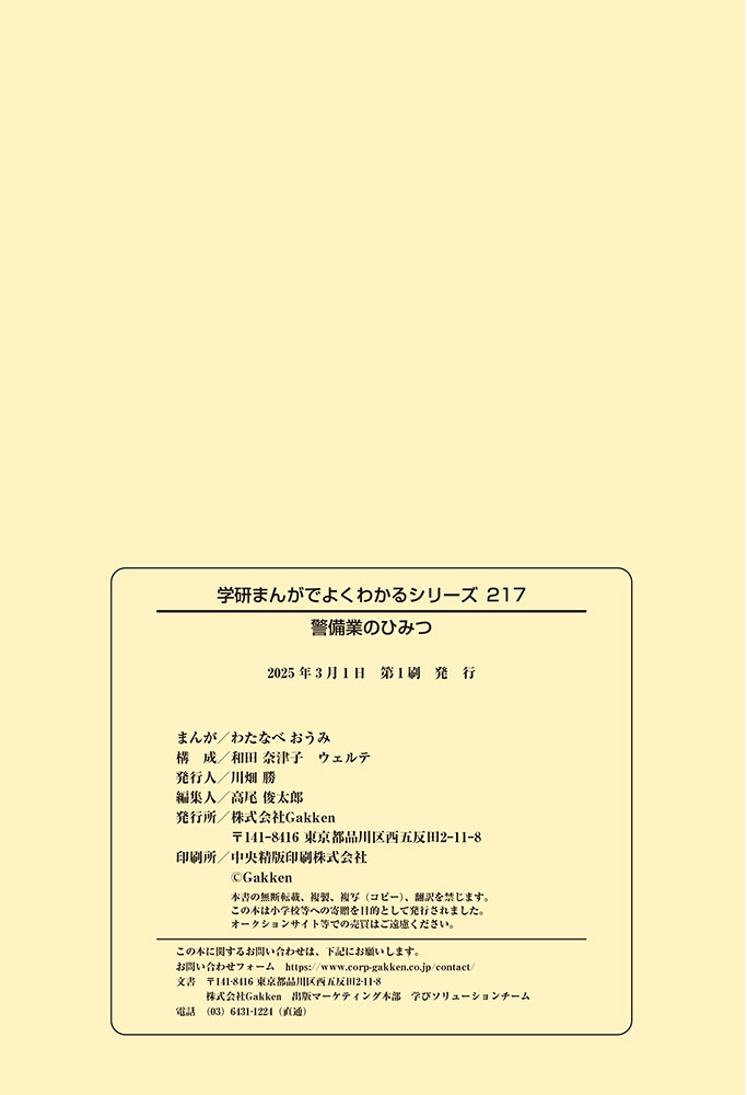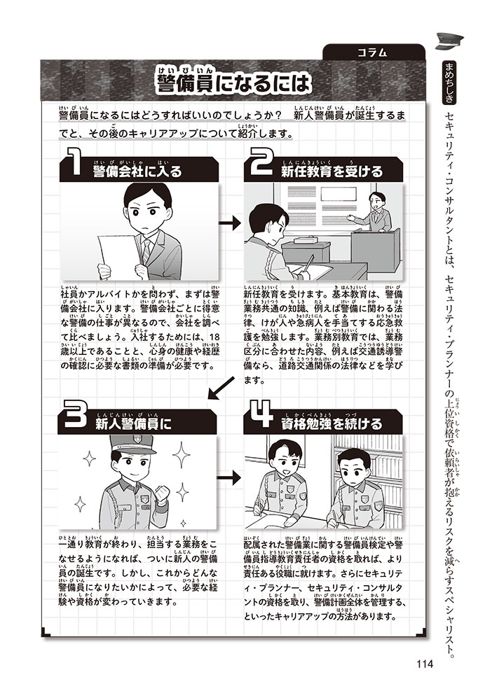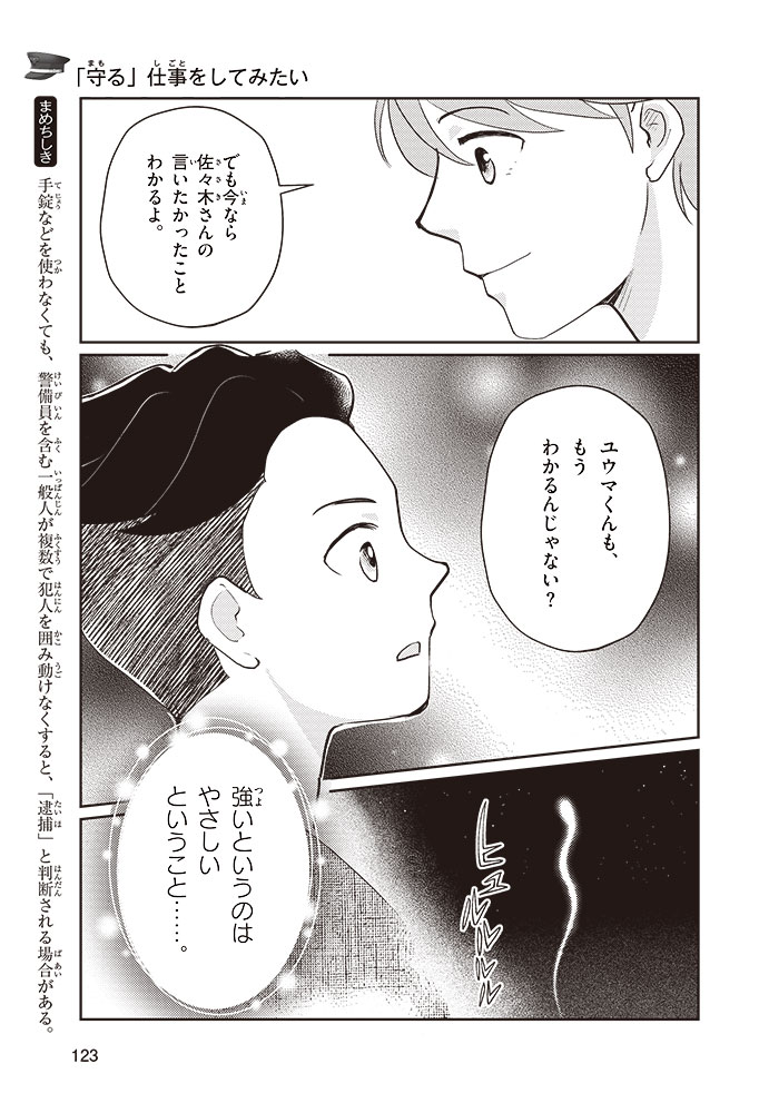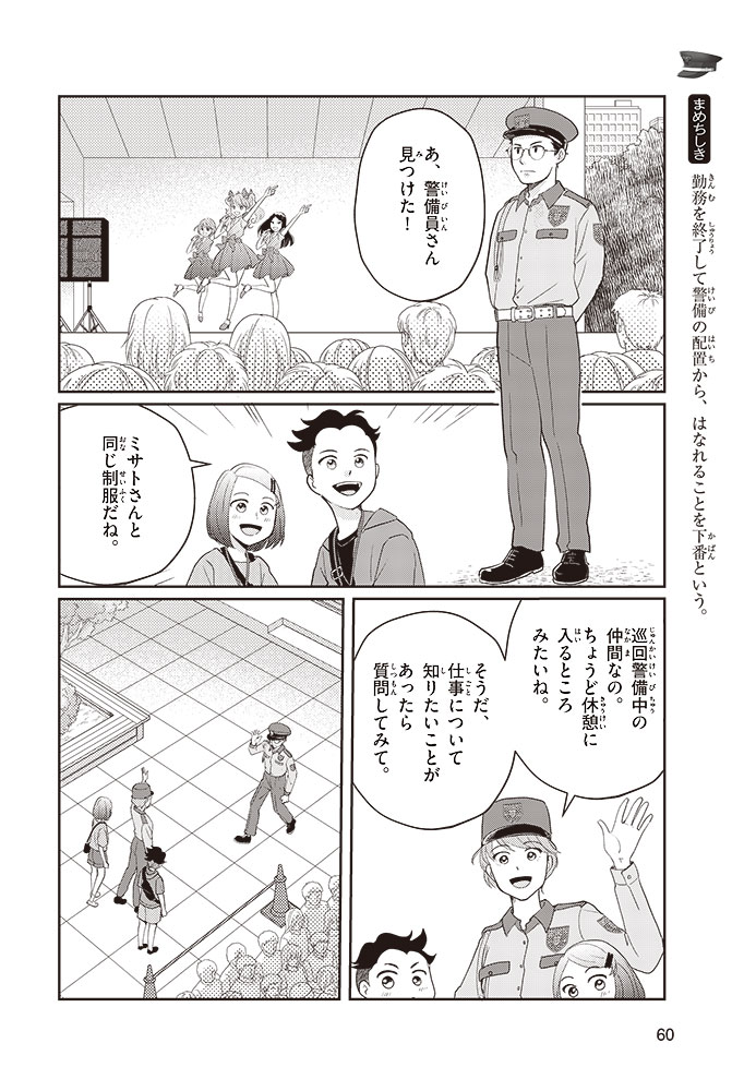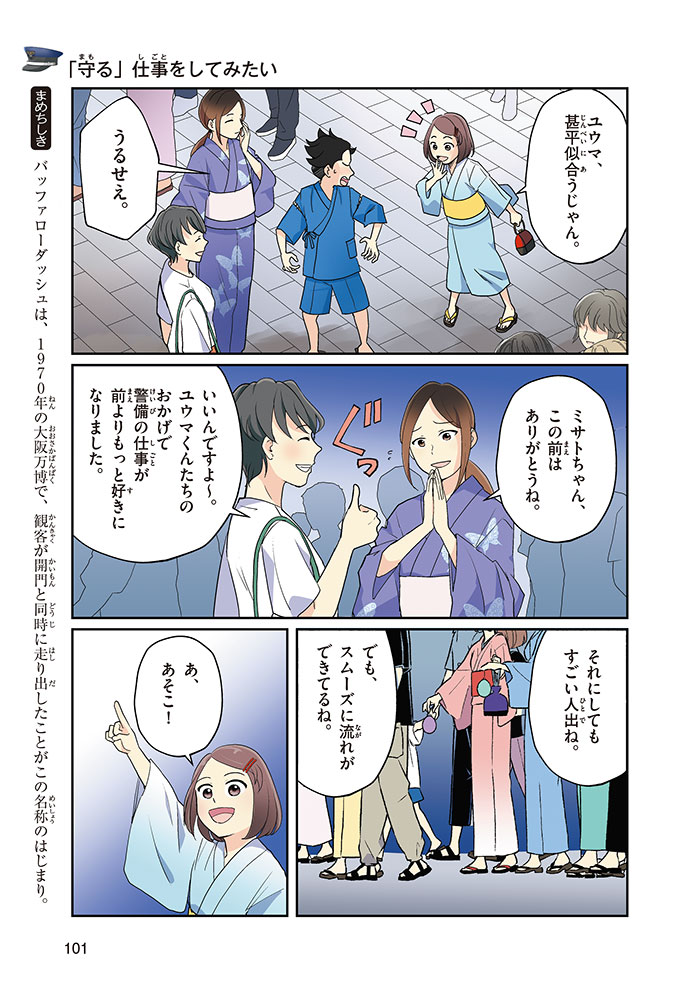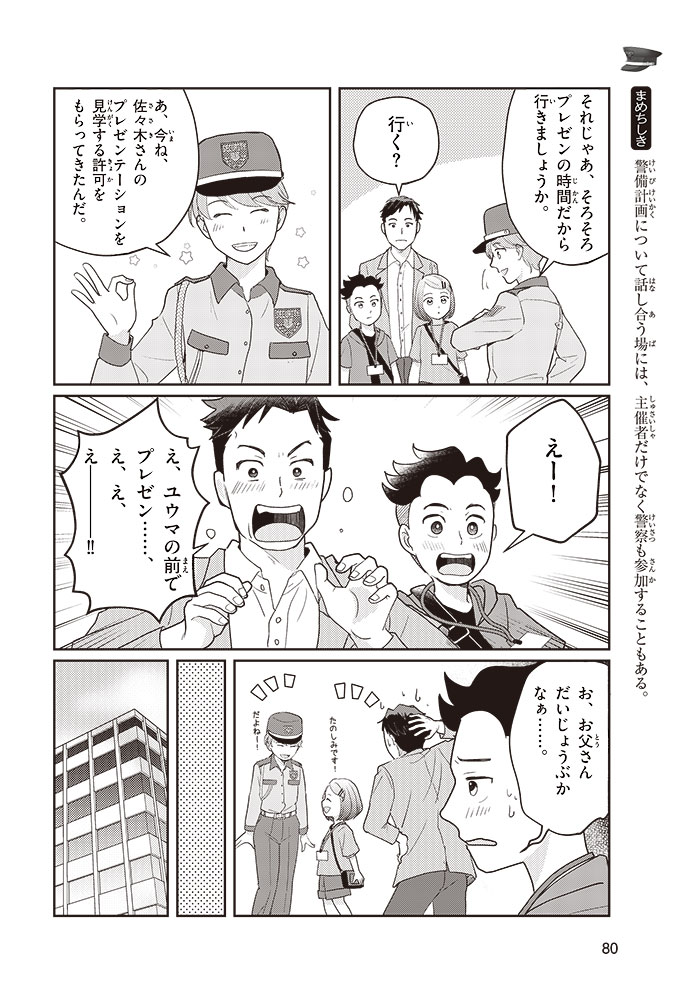 みんなは警備員という仕事を、見たことや聞いたことはあるかな? どんな場所で、どんなふうに、どんなことに気をつけて警備がされているか、知っているかな? じつは警備の仕事がされていないと、安心して買い物することや、お祭りやライブ、旅行など楽しいイベントができなくなるかもしれないんだよ。本書では、警備会社で働く父をもつ小学生のユウマと、友だちのアオイが警備の仕事についての調べ学習をすることに。みんなのなにげない日常を、しっかり守ってくれている警備業のひみつを、ユウマとアオイといっしょに見ていこう!
