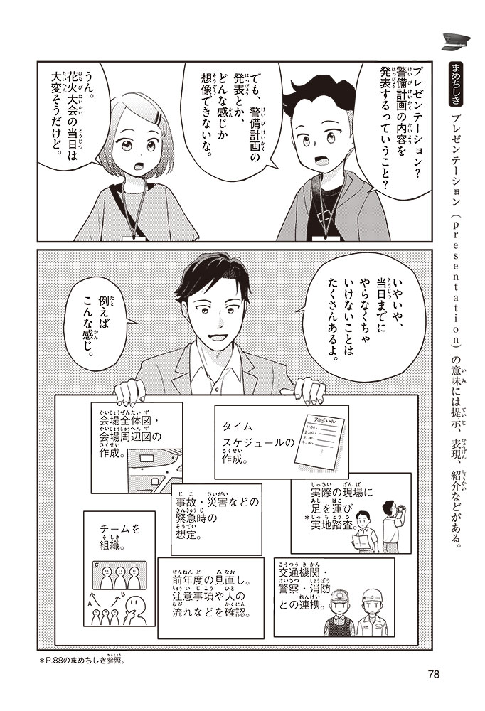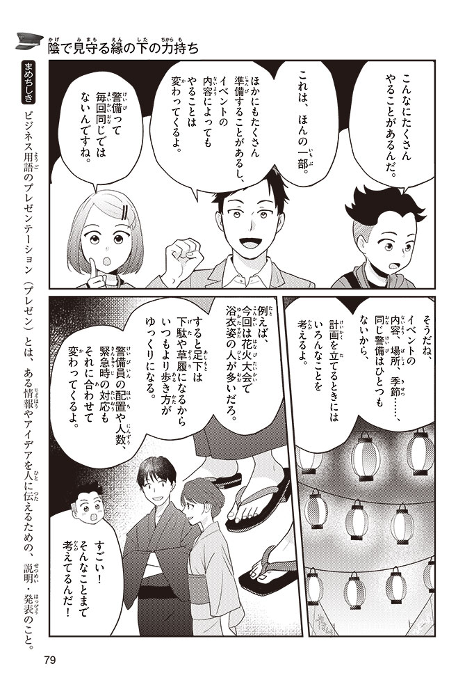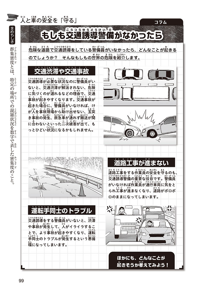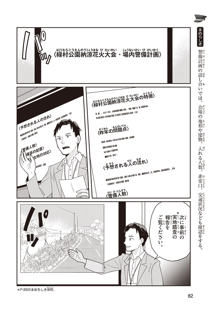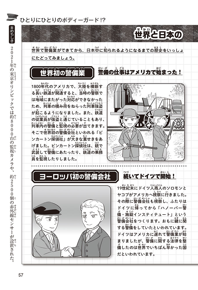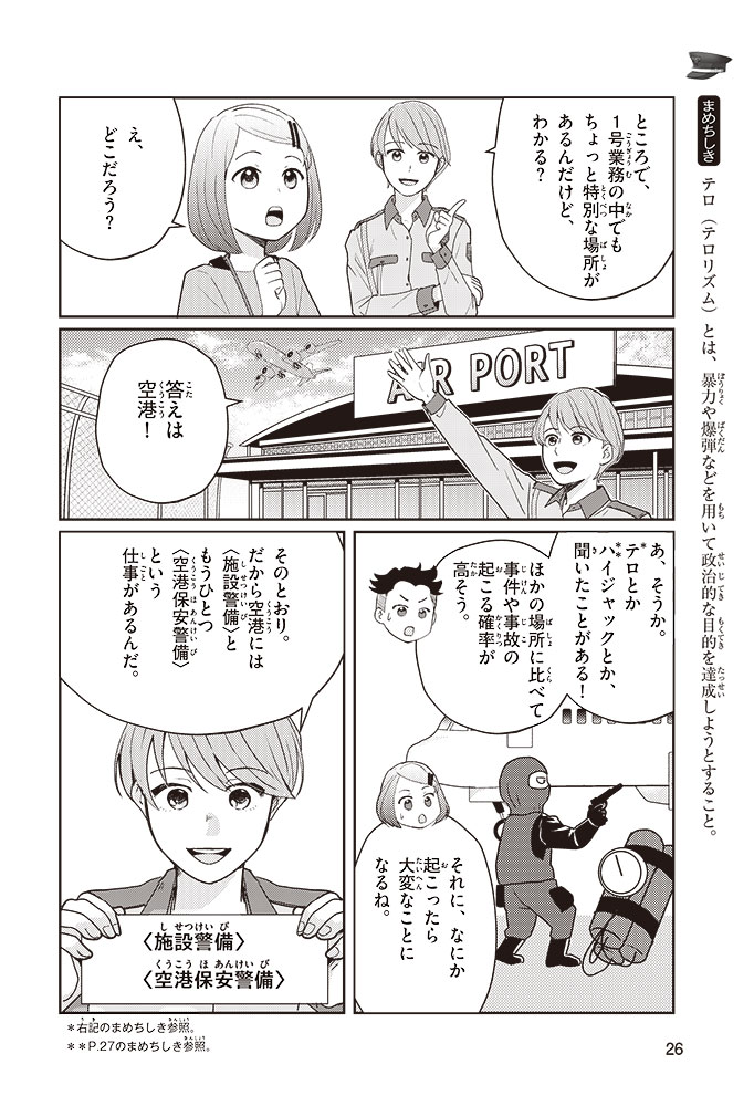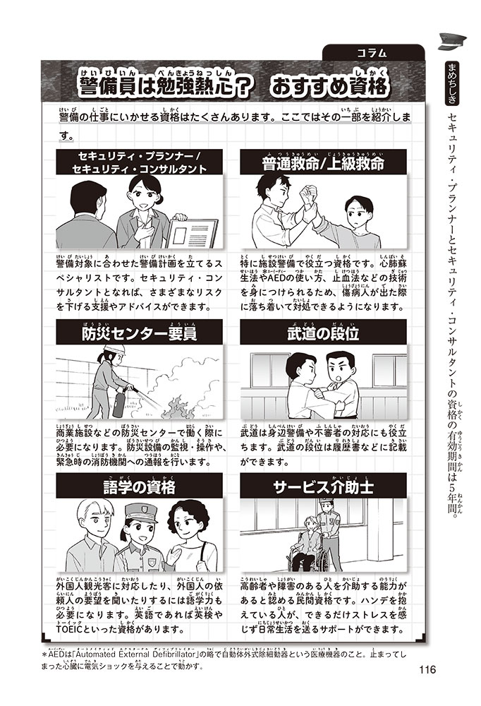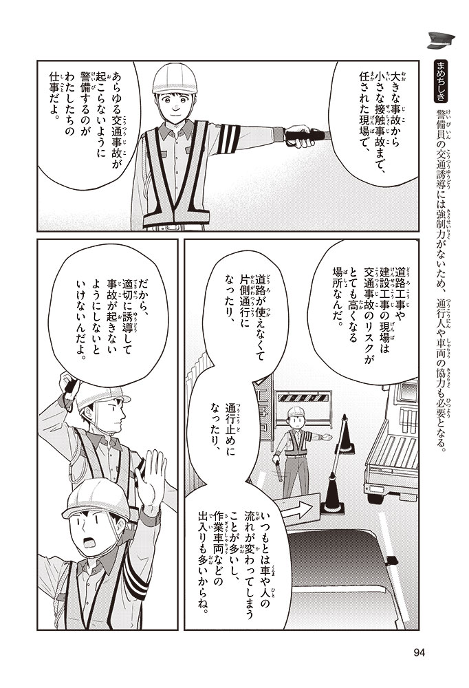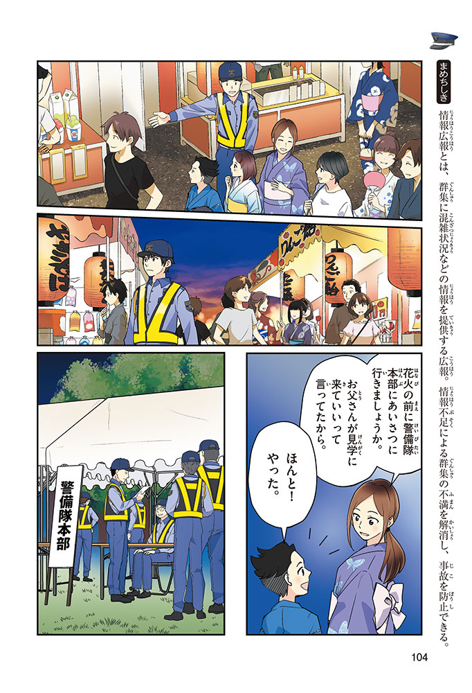 みんなは警備員という仕事を、見たことや聞いたことはあるかな? どんな場所で、どんなふうに、どんなことに気をつけて警備がされているか、知っているかな? じつは警備の仕事がされていないと、安心して買い物することや、お祭りやライブ、旅行など楽しいイベントができなくなるかもしれないんだよ。本書では、警備会社で働く父をもつ小学生のユウマと、友だちのアオイが警備の仕事についての調べ学習をすることに。みんなのなにげない日常を、しっかり守ってくれている警備業のひみつを、ユウマとアオイといっしょに見ていこう!