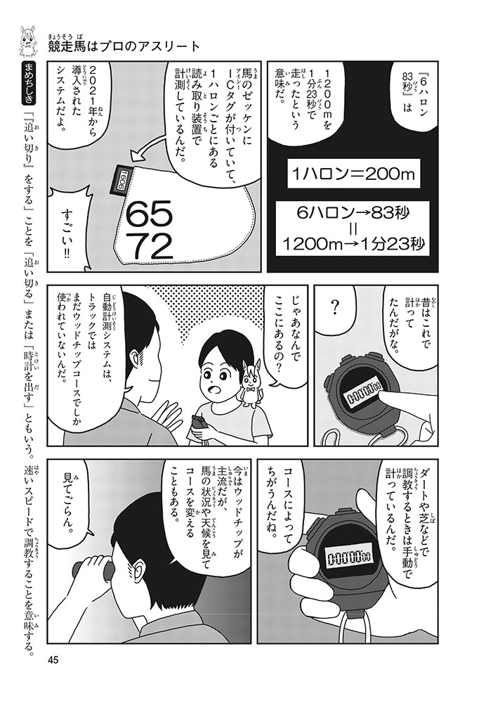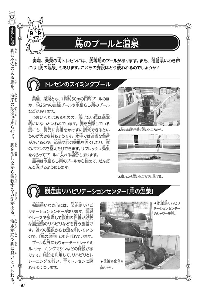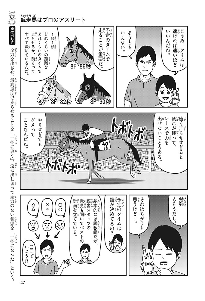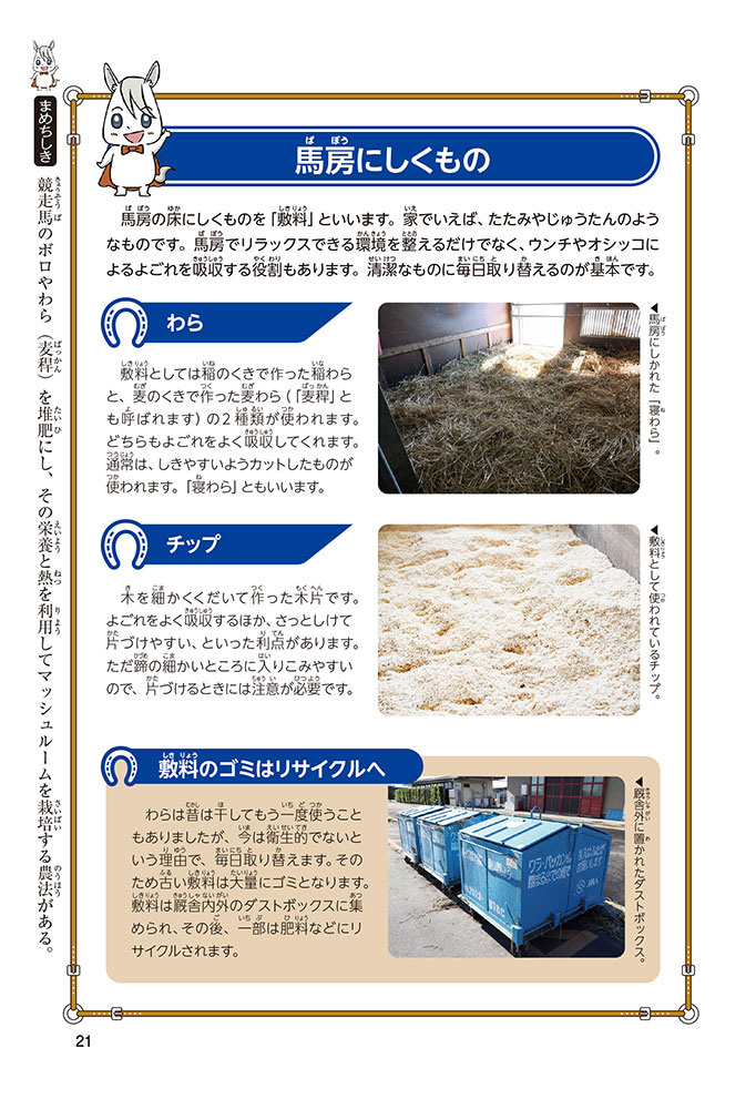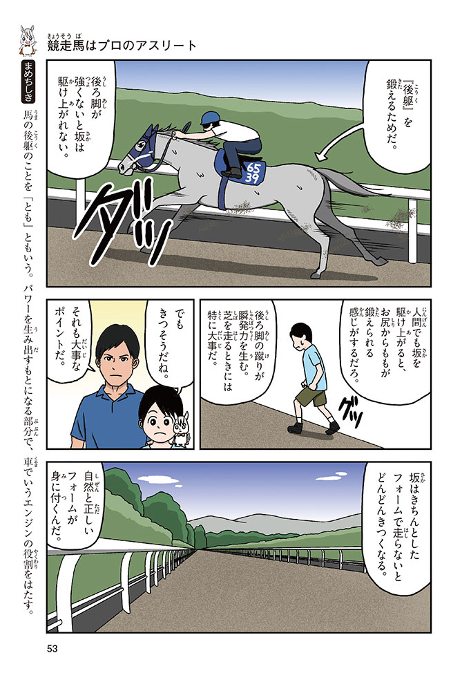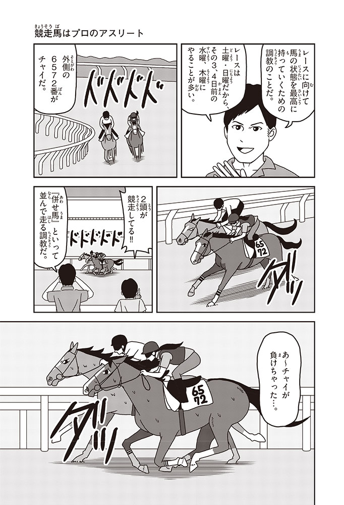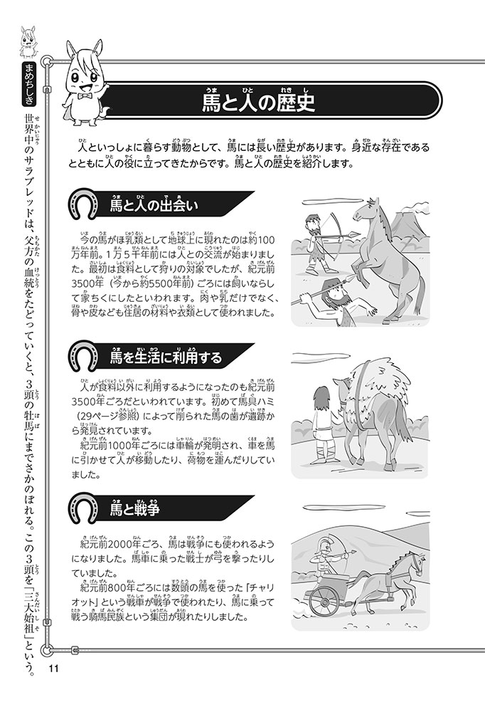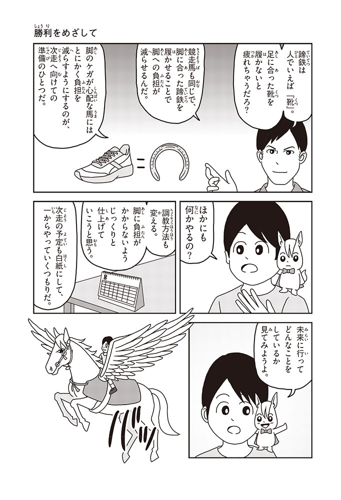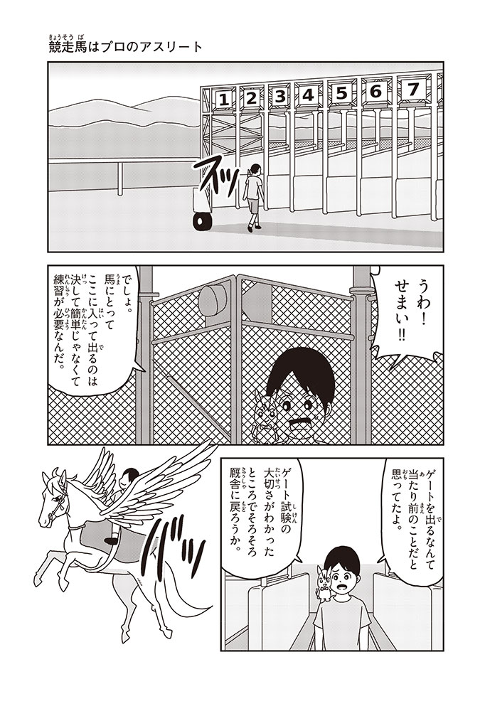 4000年以上にわたり、人を乗せて走ることで、人の役に立ってきた馬。今も走ることは馬にとって大切な仕事なんだ。そんな馬を育てる人ってどんな人たちなんだろう? ケンタと馬の妖精シンメと一緒に、馬たちが暮らしトレーニングをしている施設に飛び、その様子を見てみよう! 速い馬を育てる人たちのひみつがよくわかるよ!