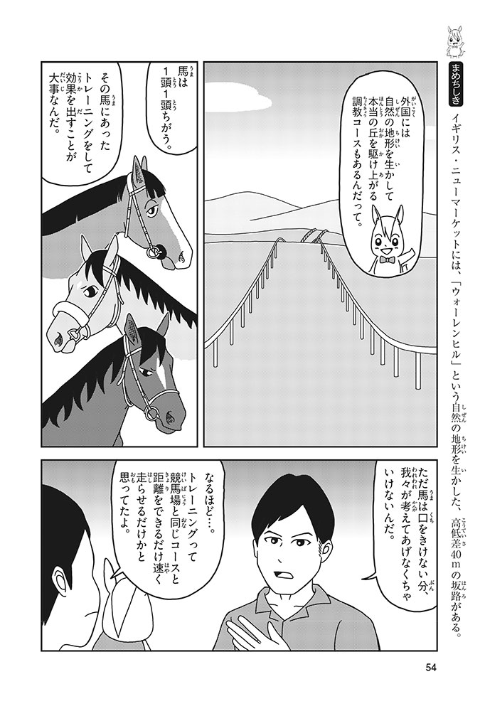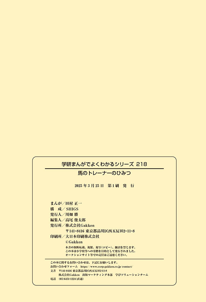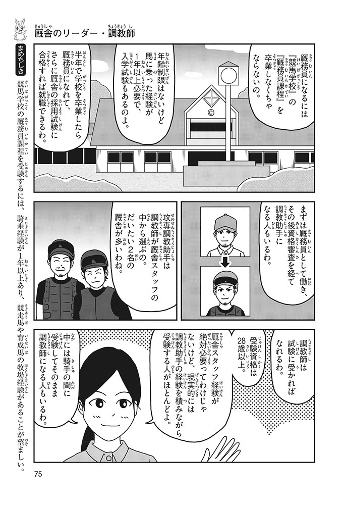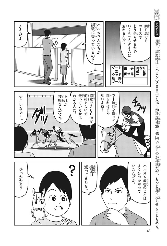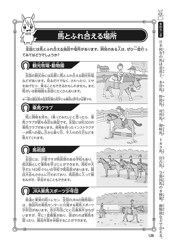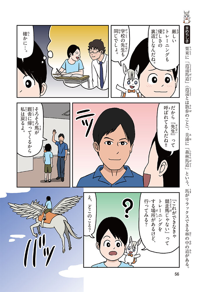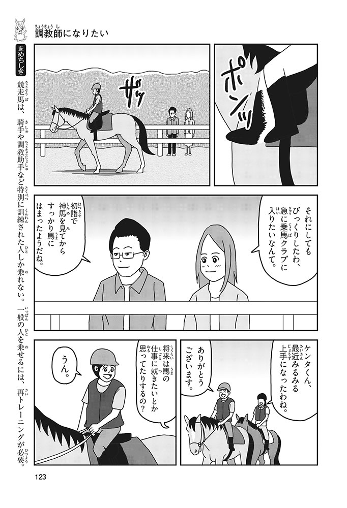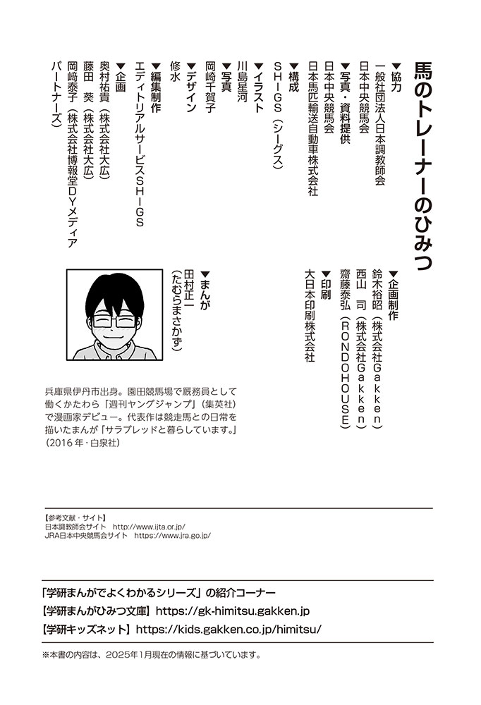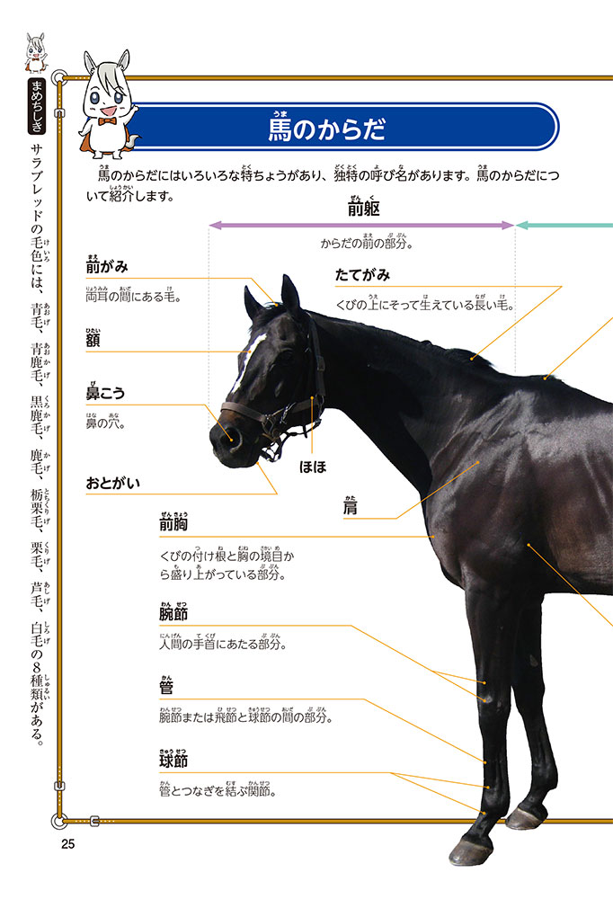 4000年以上にわたり、人を乗せて走ることで、人の役に立ってきた馬。今も走ることは馬にとって大切な仕事なんだ。そんな馬を育てる人ってどんな人たちなんだろう? ケンタと馬の妖精シンメと一緒に、馬たちが暮らしトレーニングをしている施設に飛び、その様子を見てみよう! 速い馬を育てる人たちのひみつがよくわかるよ!