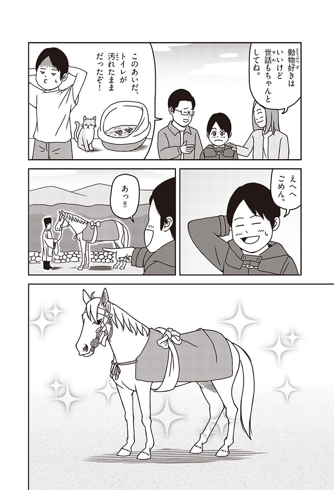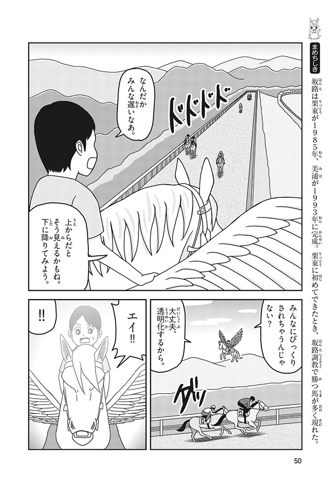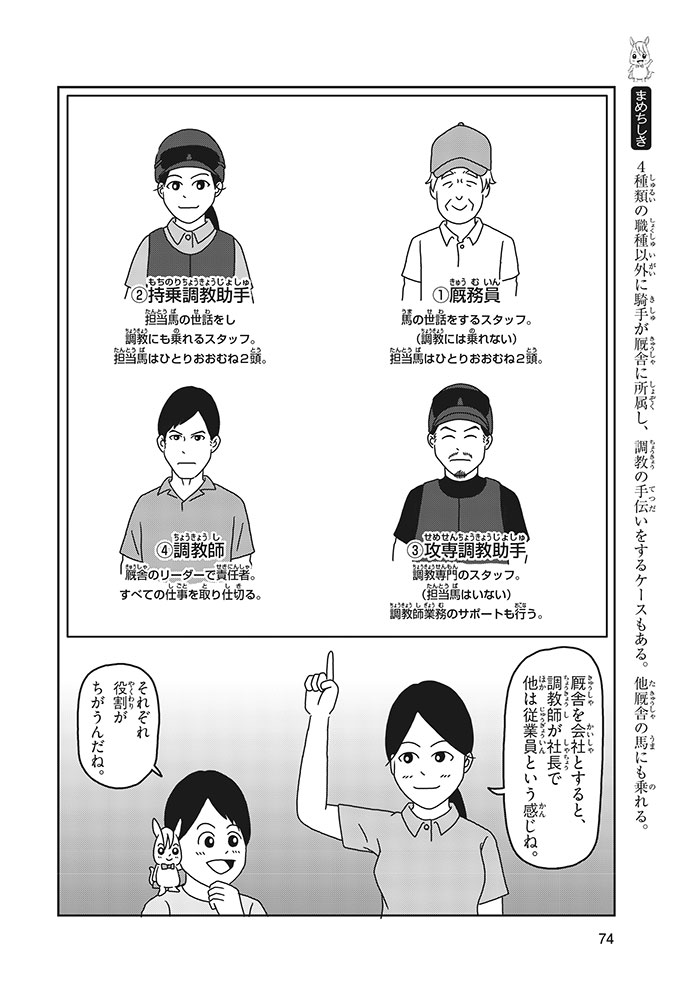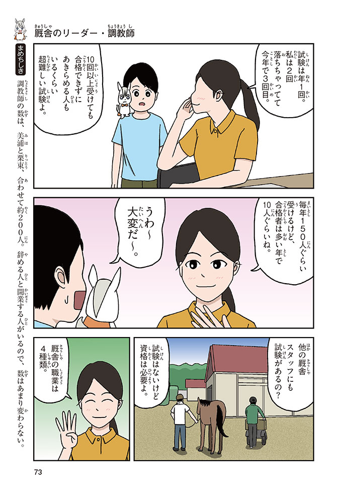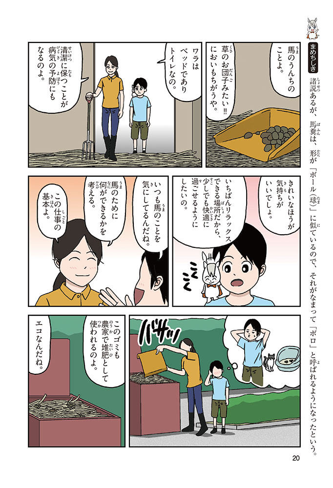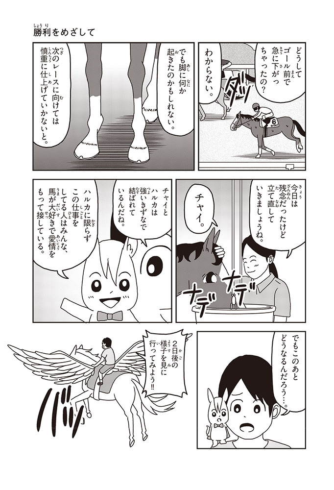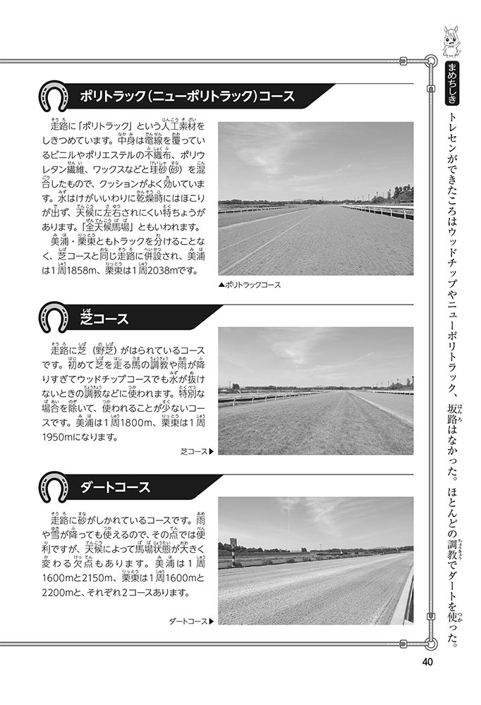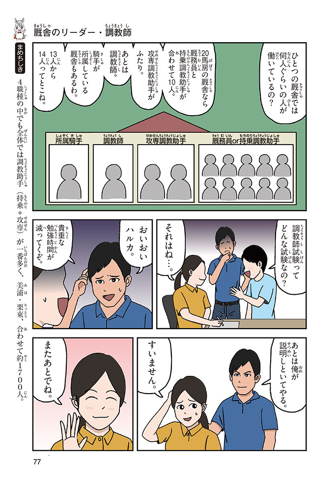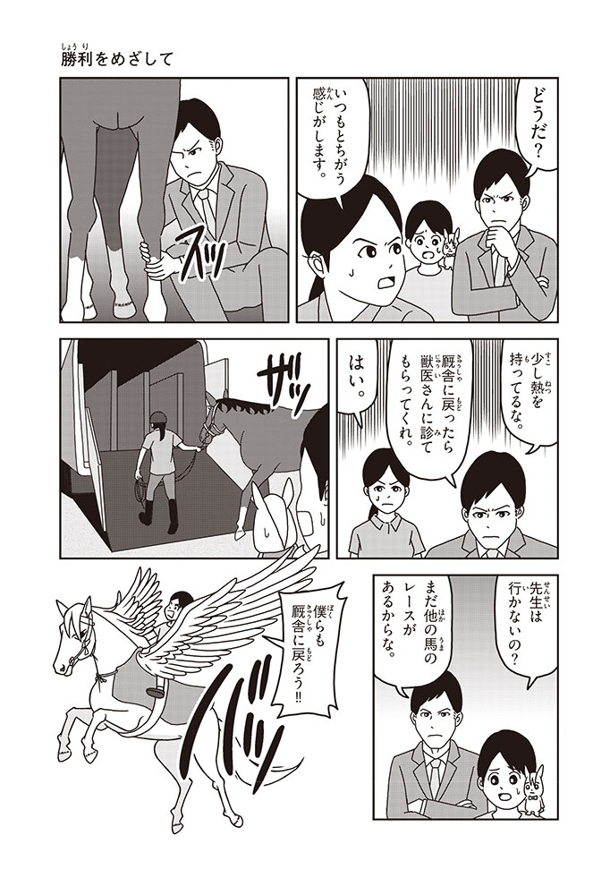 4000年以上にわたり、人を乗せて走ることで、人の役に立ってきた馬。今も走ることは馬にとって大切な仕事なんだ。そんな馬を育てる人ってどんな人たちなんだろう? ケンタと馬の妖精シンメと一緒に、馬たちが暮らしトレーニングをしている施設に飛び、その様子を見てみよう! 速い馬を育てる人たちのひみつがよくわかるよ!