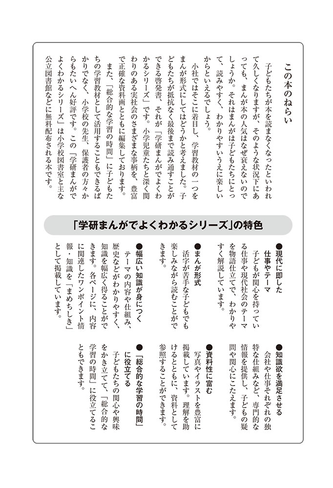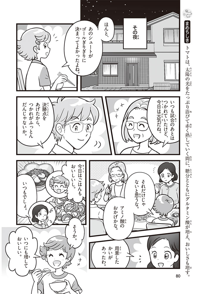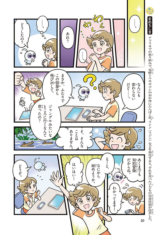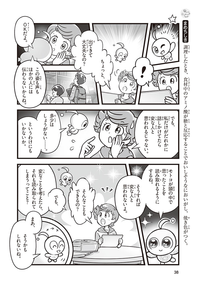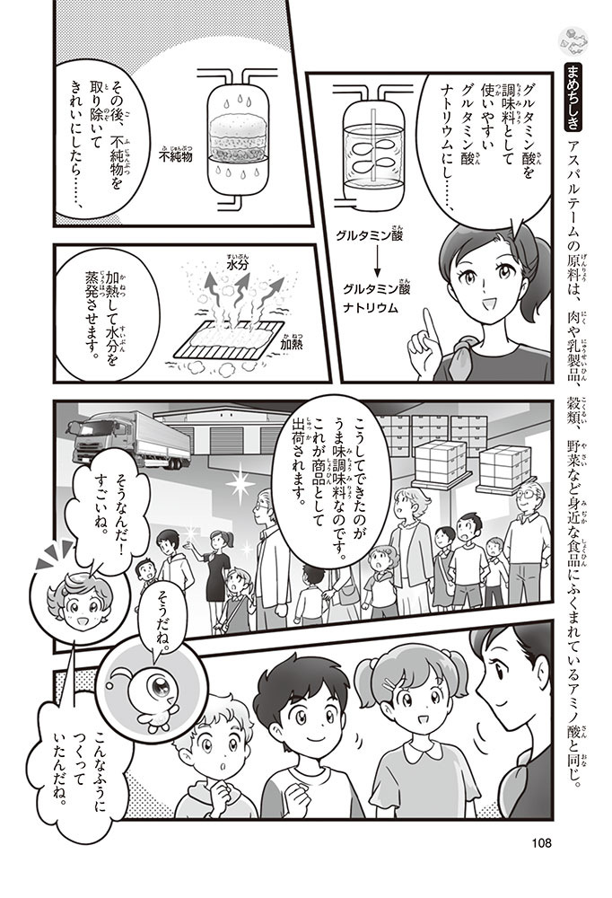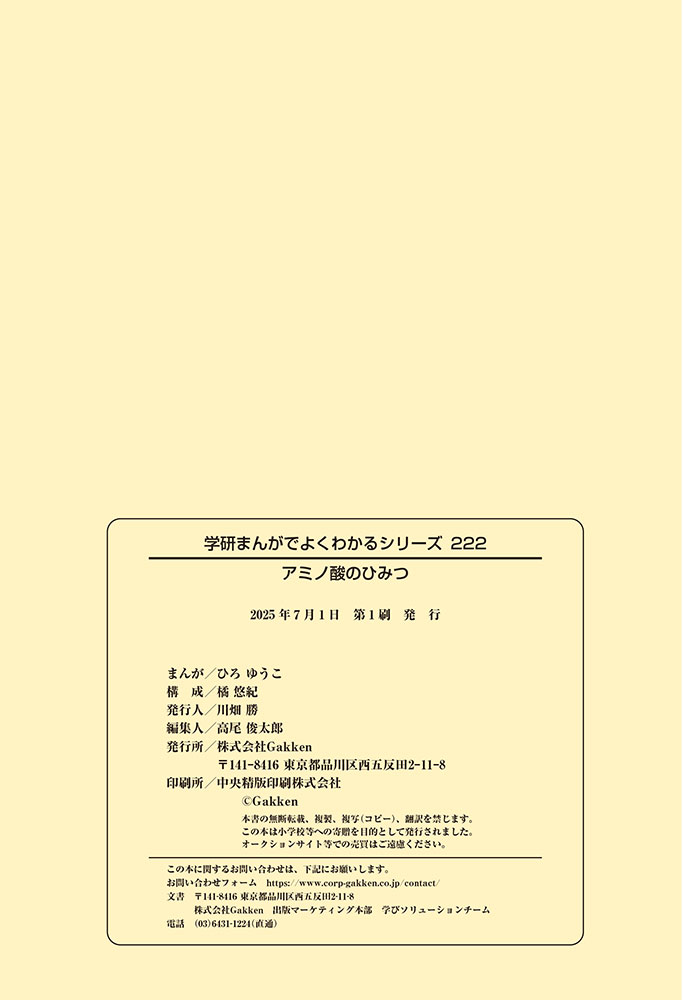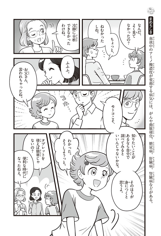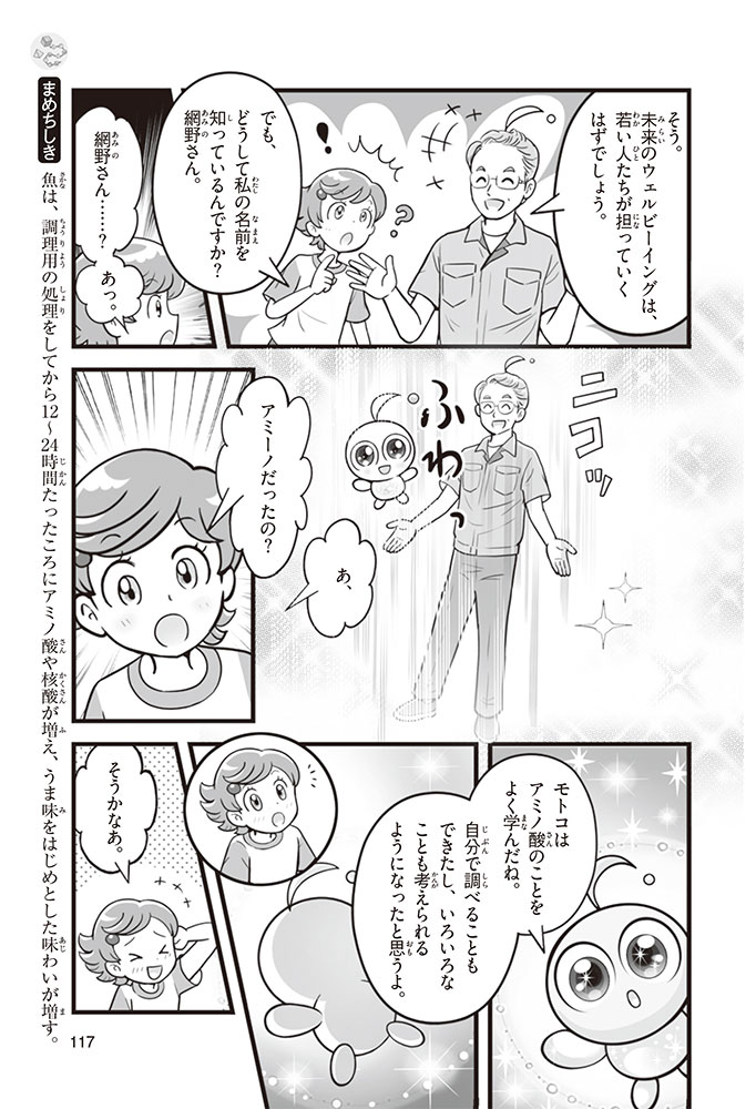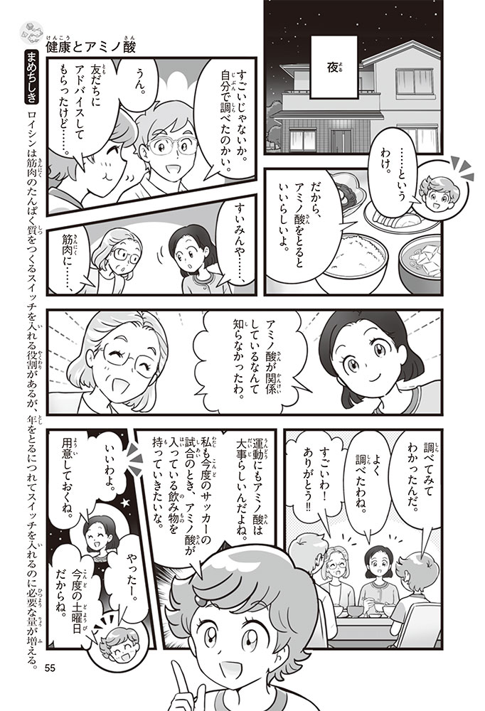 私たちの体をつくっているたんぱく質。そのたんぱく質をつくっているのが「アミノ酸」なんだ。アミノ酸は健康を保ったり、体を動かしたりするときにも大切な役割をはたしている。だからアミノ酸は「いのちのもと」ともいえるんだよ。さらにアミノ酸は、食べ物のおいしさにも大きく関わり、スポーツ、美容、医療など、多くの分野でも役立っているんだ。本書は、サッカー大会で友人がアミノ酸配合のドリンクを飲んでいたことをきっかけに、アミノ酸に興味をもつようになった小学生の阿地野(あじの)モトコが主人公。アミノ酸の妖精アミーノと出会い、いっしょに調べながら学んでいくよ。みんなもこの本を読んで、アミノ酸についてもっと知って、毎日を元気に過ごそう!