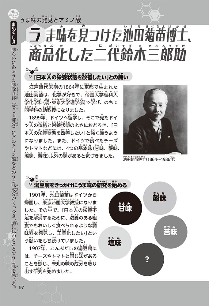 コラム うま味を見つけた池田菊苗博士、商品化した二代鈴木三郎助