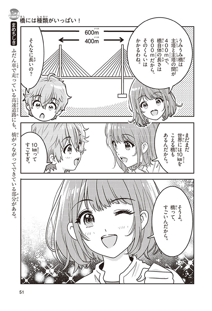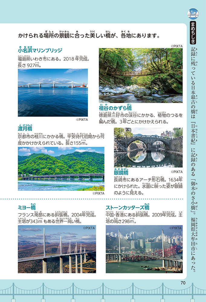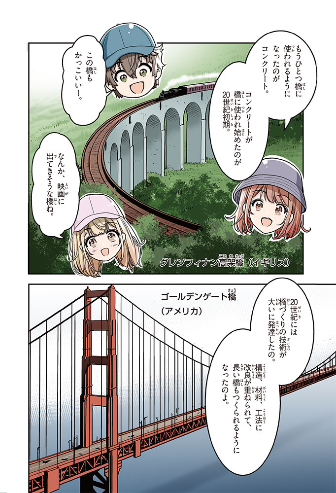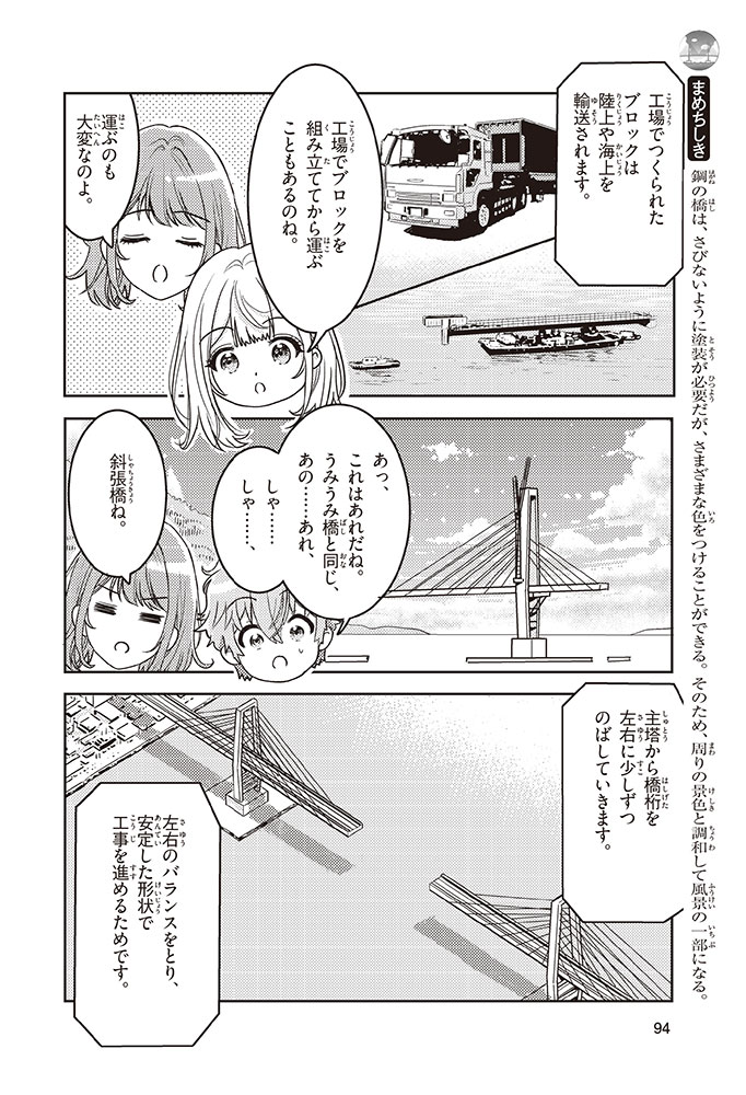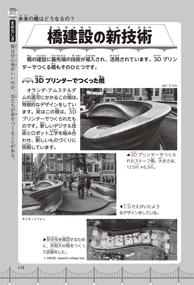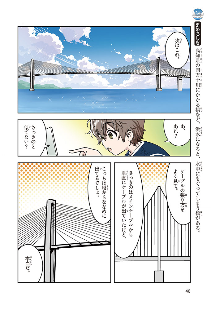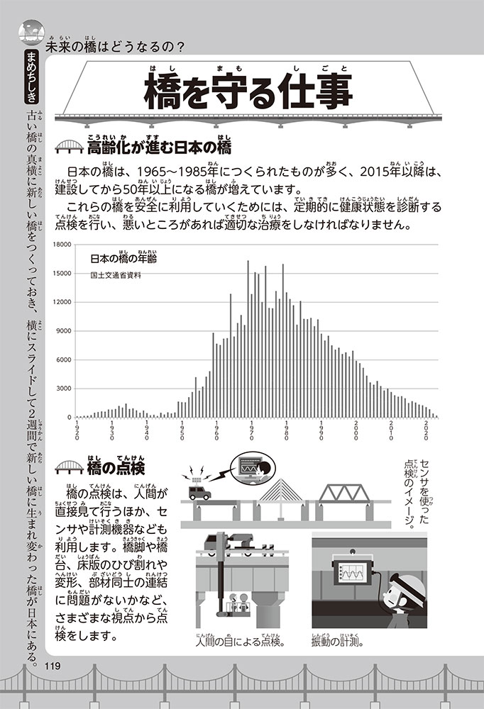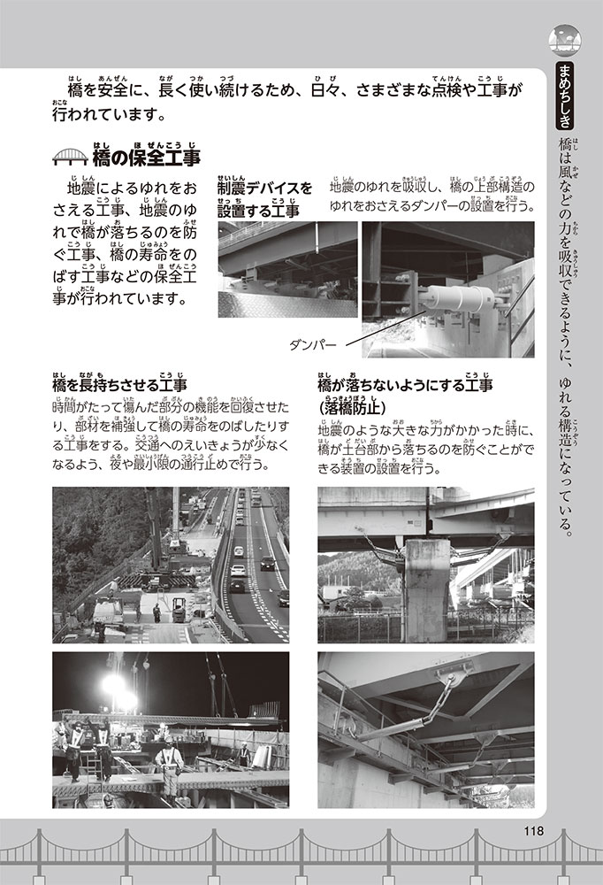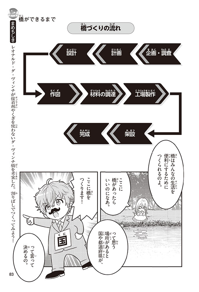 各地にかけられ、多くの人が毎日利用する橋。私たちの暮らしの中で、橋はなくてはならない大切なもの。橋は、かける場所や長さなどによって、さまざまな種類がある。この本を読むと、橋の役割や種類、歴史、そして橋の工法などがよくわかるよ。