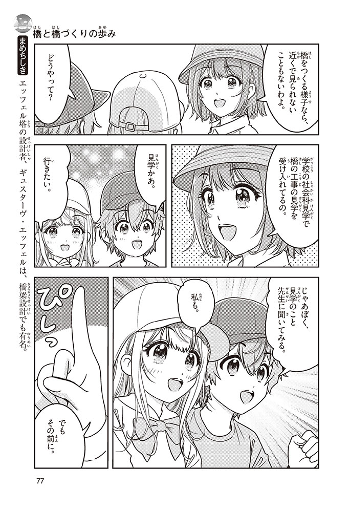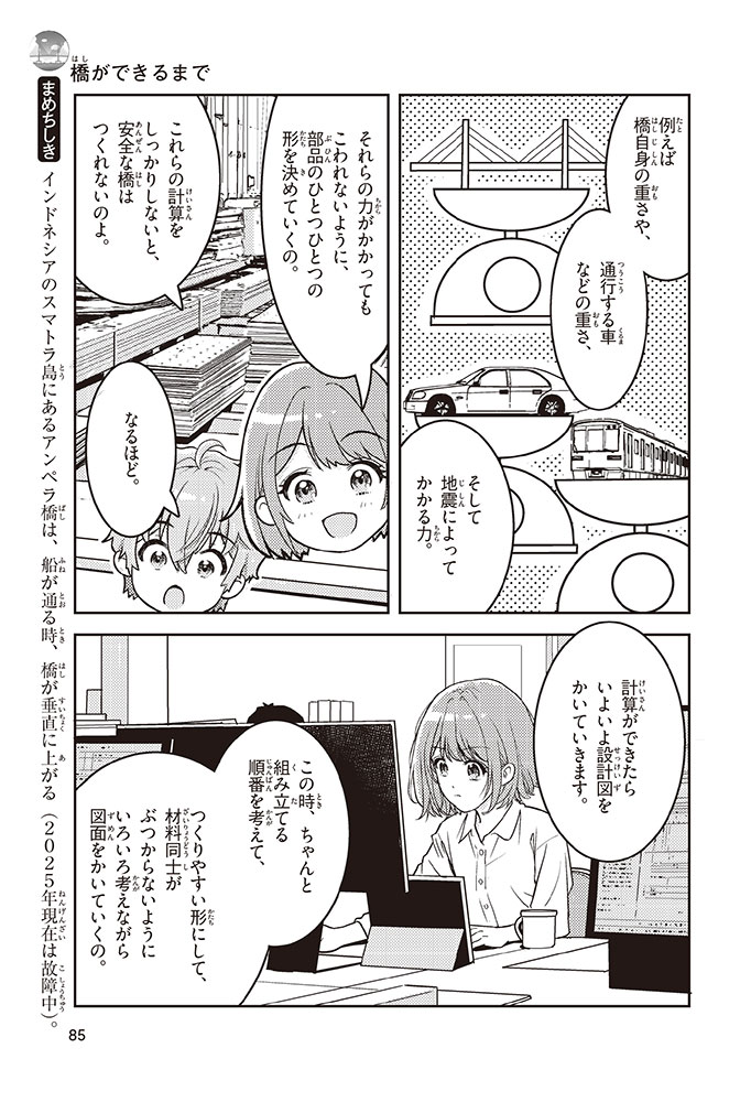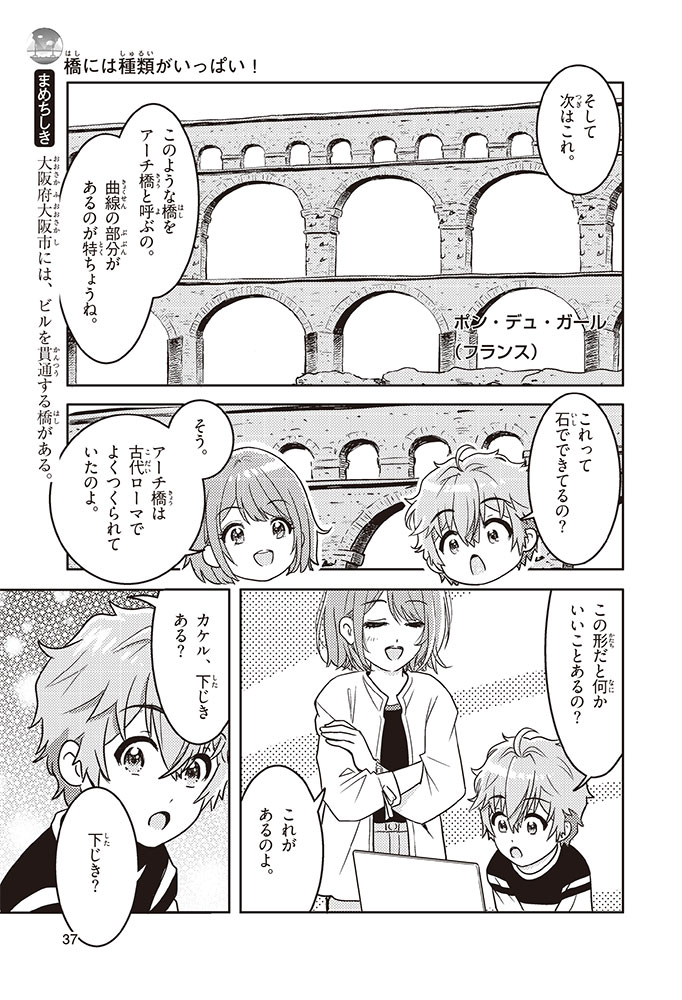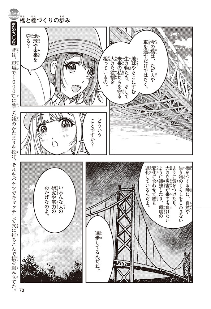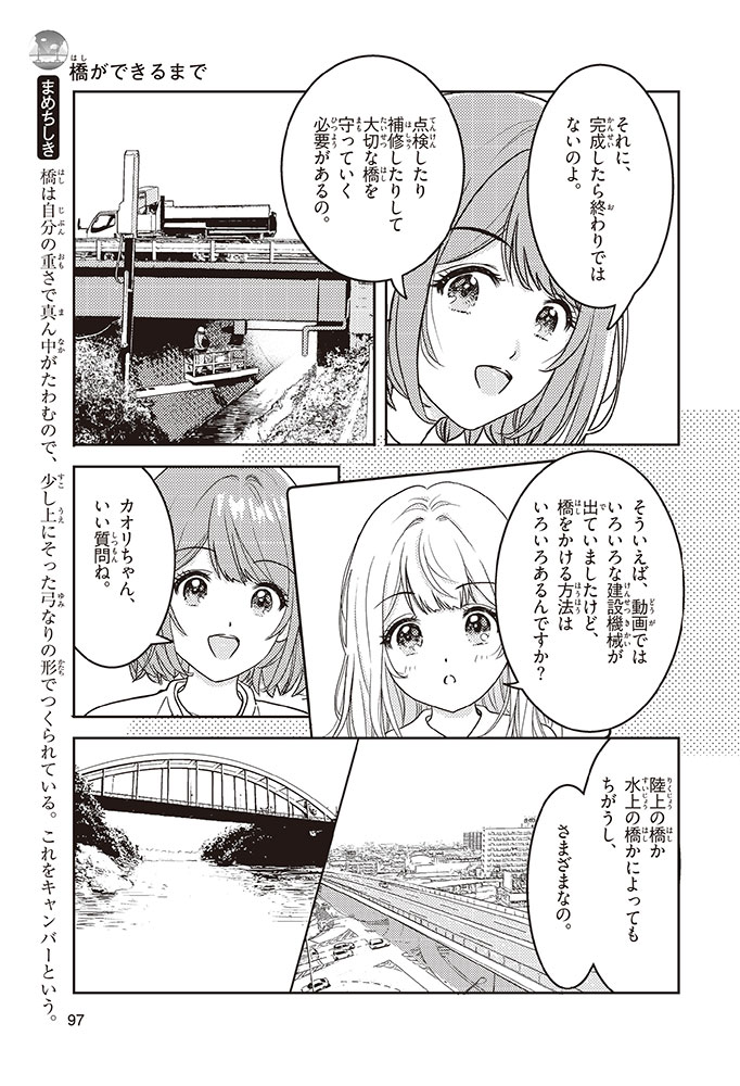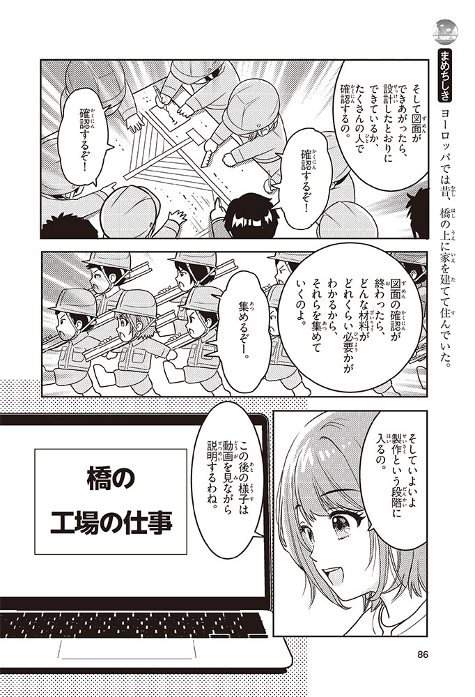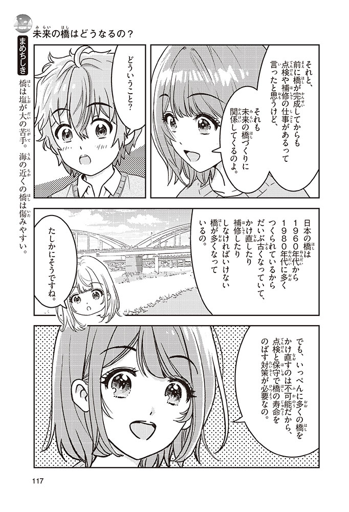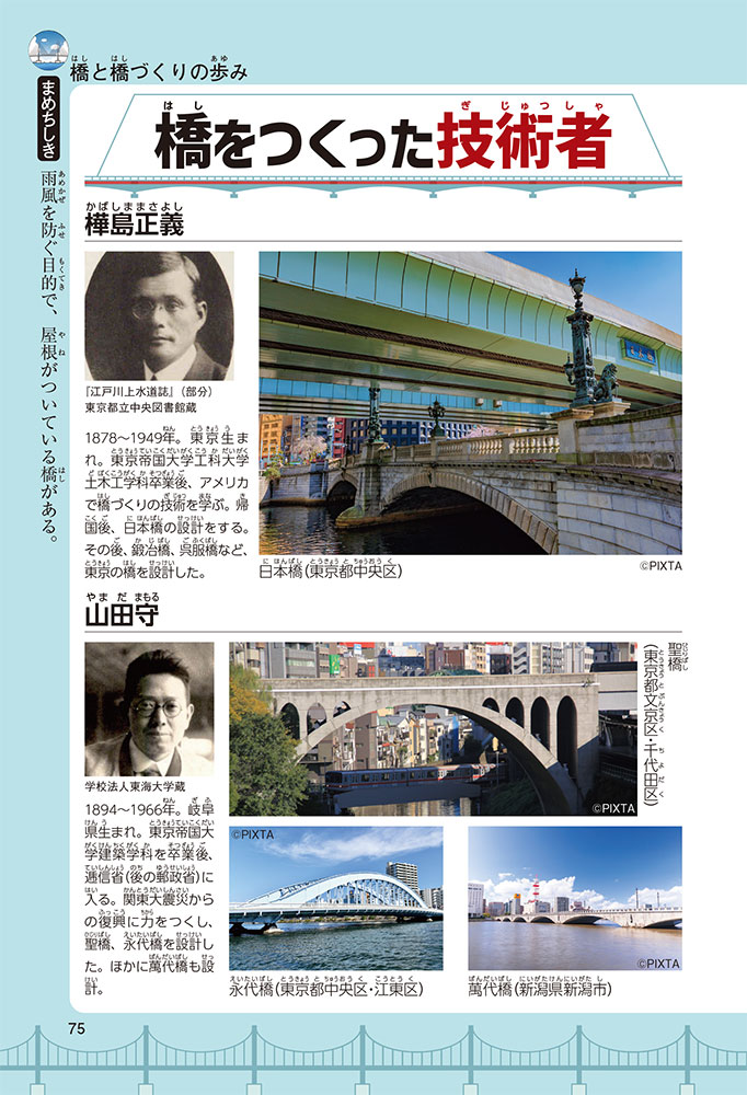 各地にかけられ、多くの人が毎日利用する橋。私たちの暮らしの中で、橋はなくてはならない大切なもの。橋は、かける場所や長さなどによって、さまざまな種類がある。この本を読むと、橋の役割や種類、歴史、そして橋の工法などがよくわかるよ。