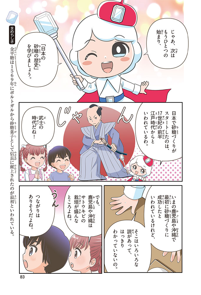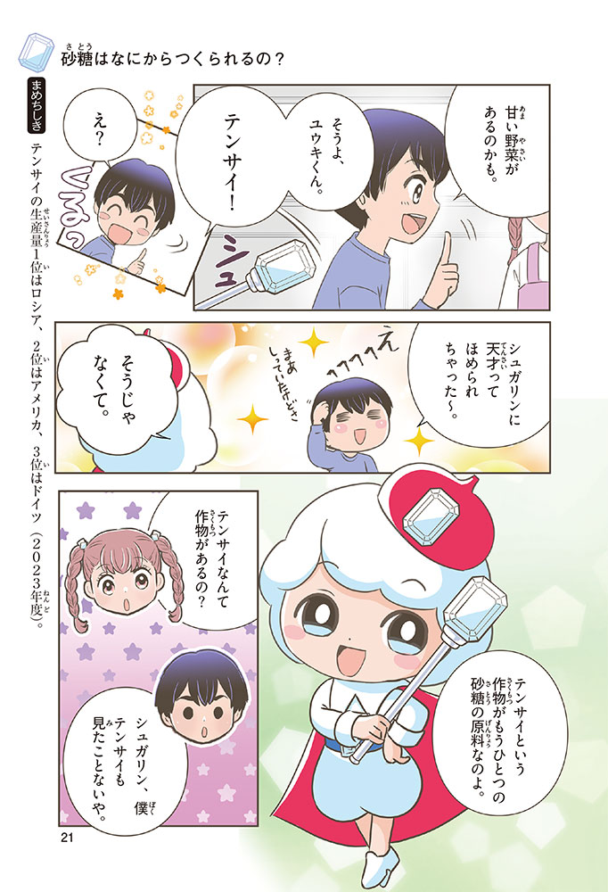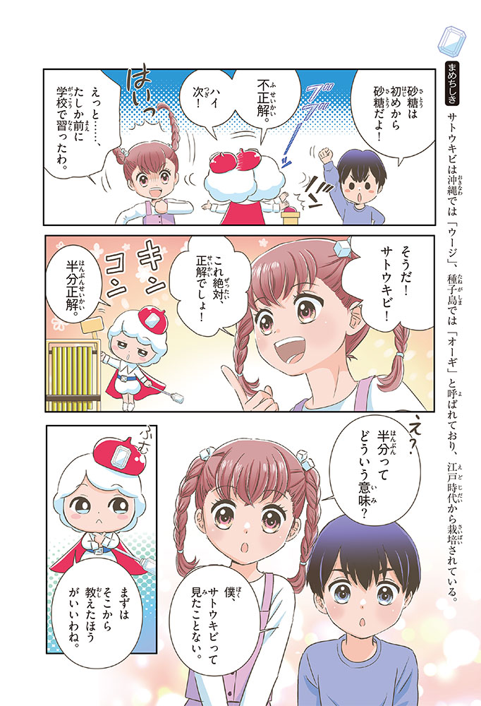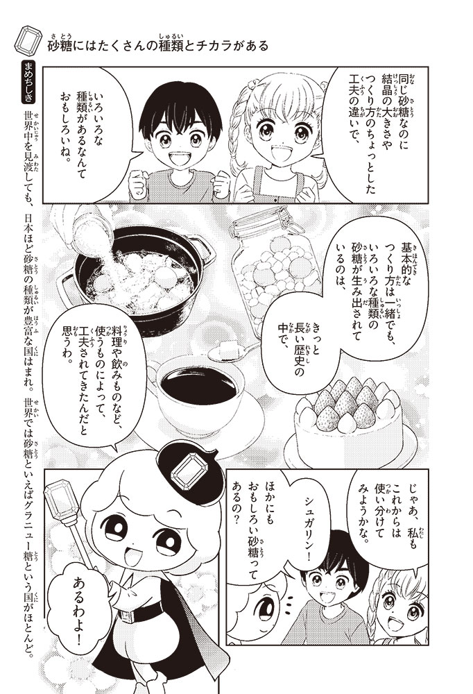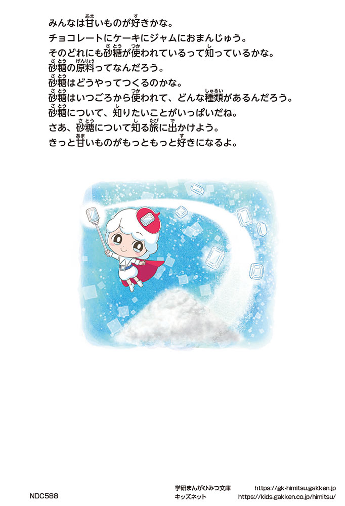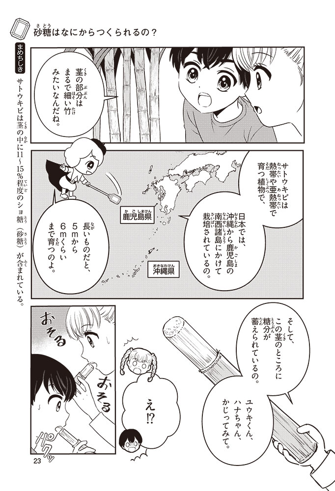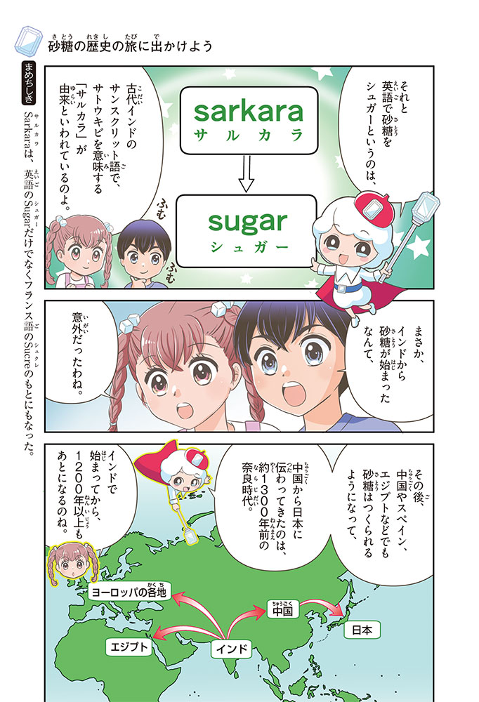 みんな甘いものは好きかな? チョコレートにケーキにジャムにおまんじゅう。そのどれにも砂糖が使われているって知ってた? 砂糖ってとても身近なものだけど、その原料や歴史、どうやってつくられているのかは意外と知らないもの。さあ、砂糖について知る旅に出かけよう! きっと甘いものがもっともっと好きになるよ。