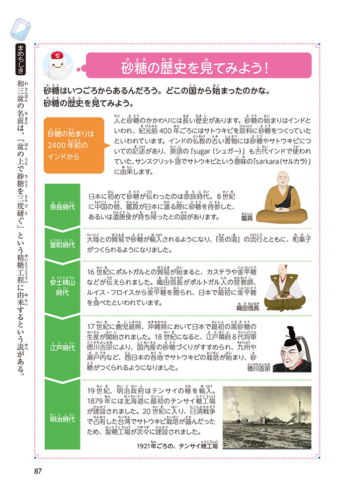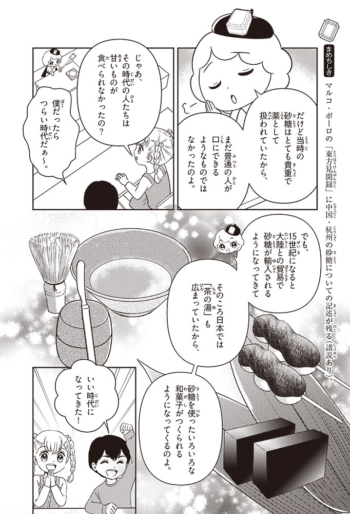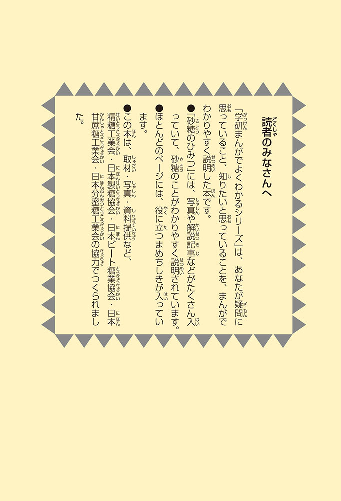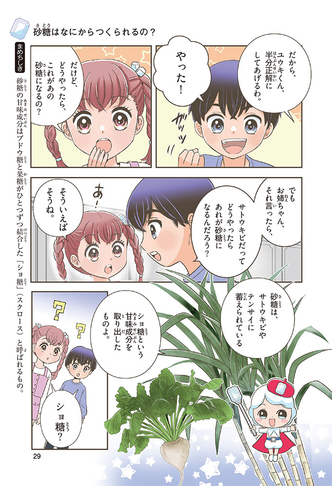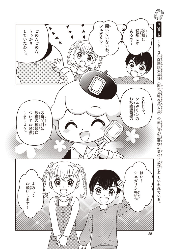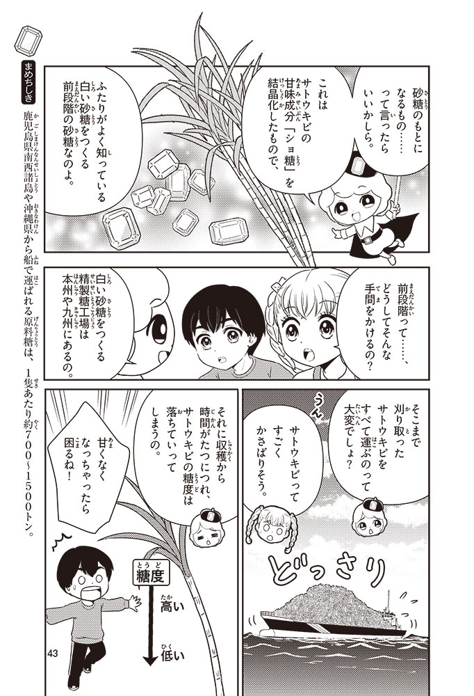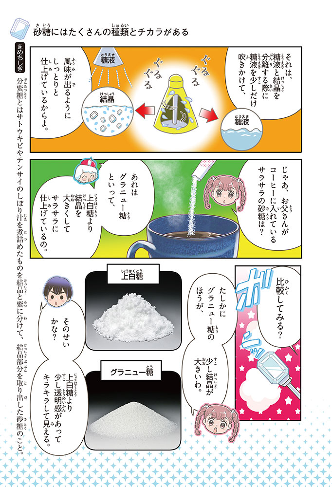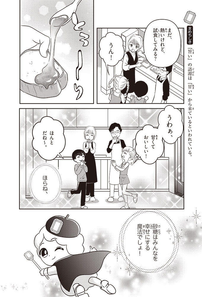 みんな甘いものは好きかな? チョコレートにケーキにジャムにおまんじゅう。そのどれにも砂糖が使われているって知ってた? 砂糖ってとても身近なものだけど、その原料や歴史、どうやってつくられているのかは意外と知らないもの。さあ、砂糖について知る旅に出かけよう! きっと甘いものがもっともっと好きになるよ。