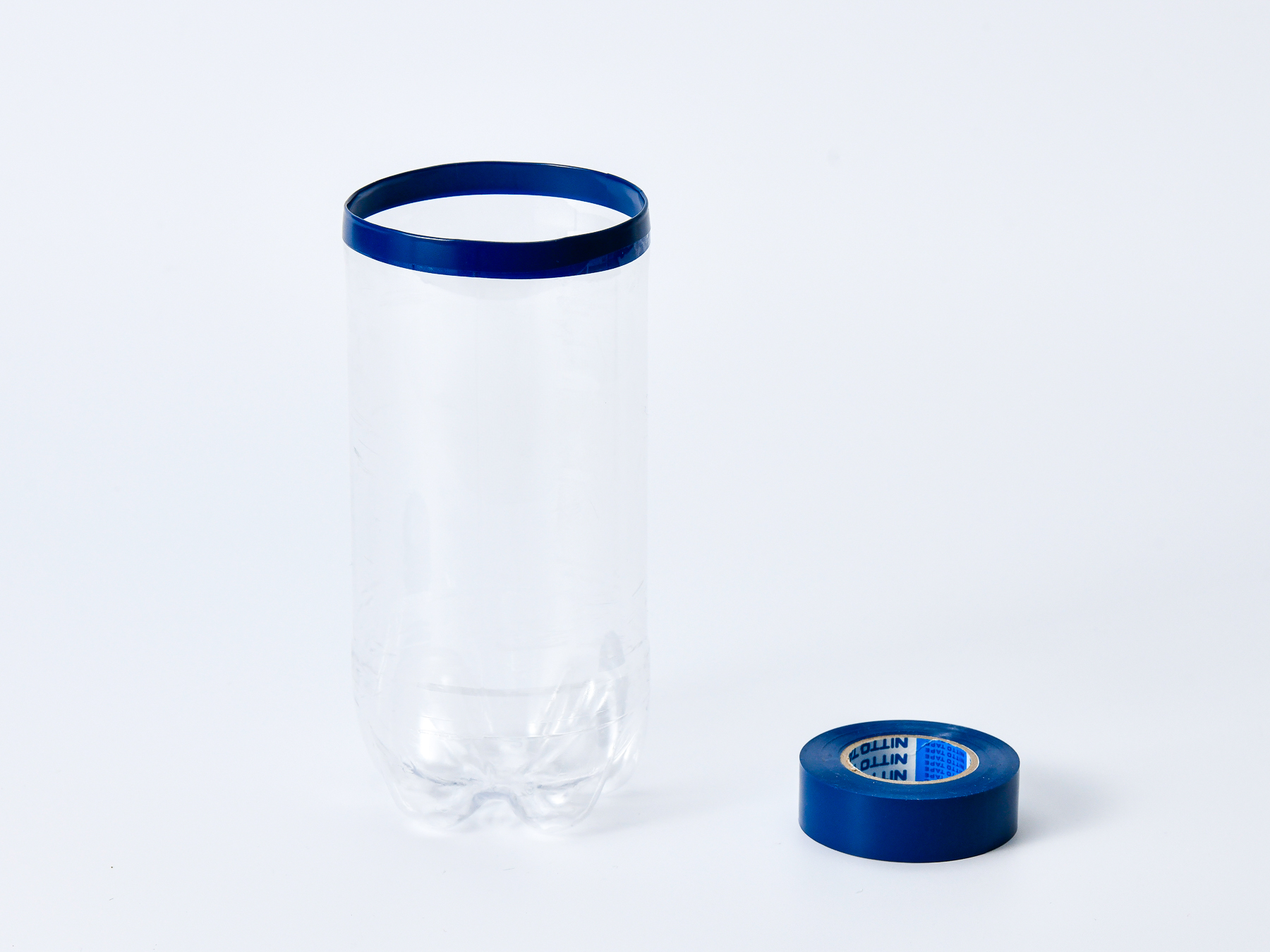 ペットボトルの切り口でけがをしないようにビニルテープを巻いておく。