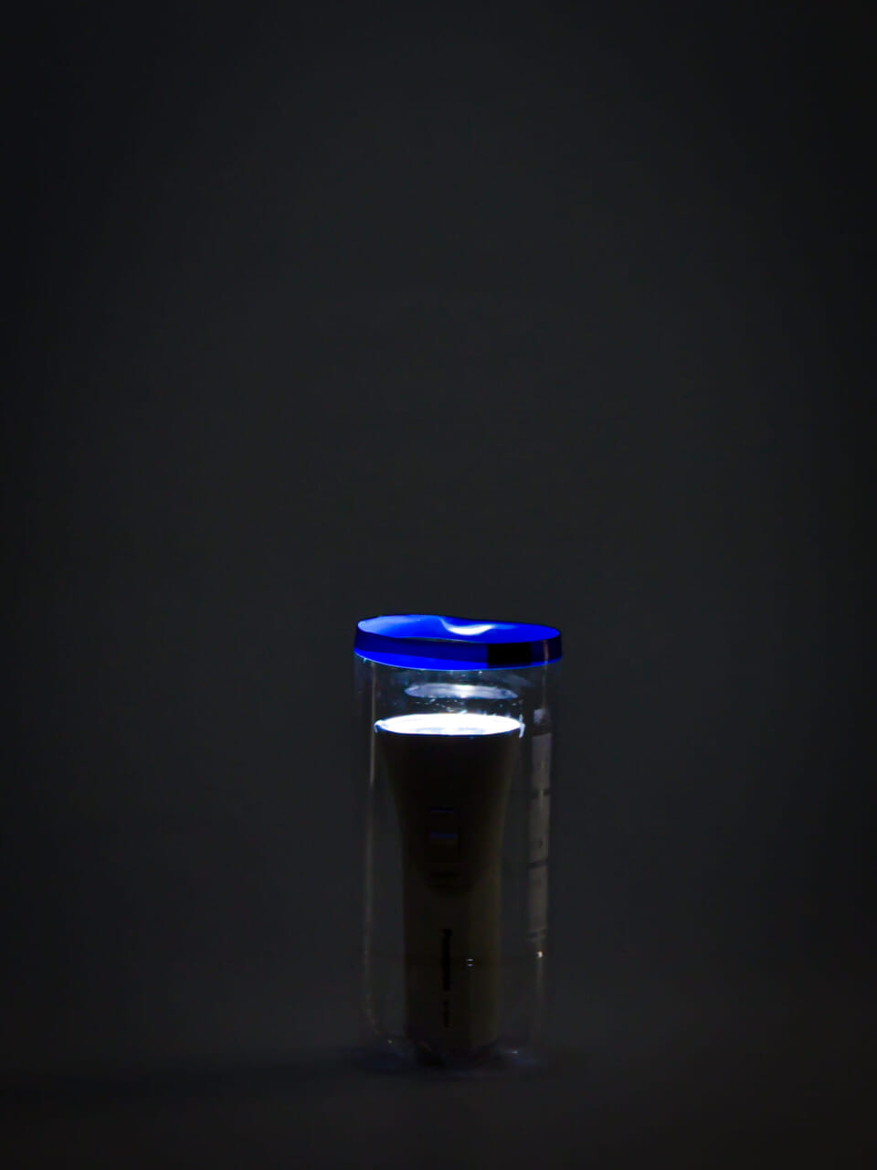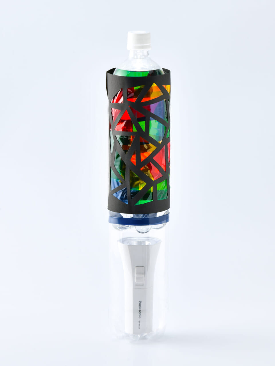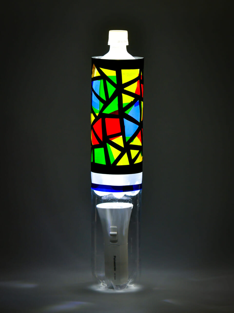 これでペットボトルランタンの完成! 部屋を暗くして実験してみよう。