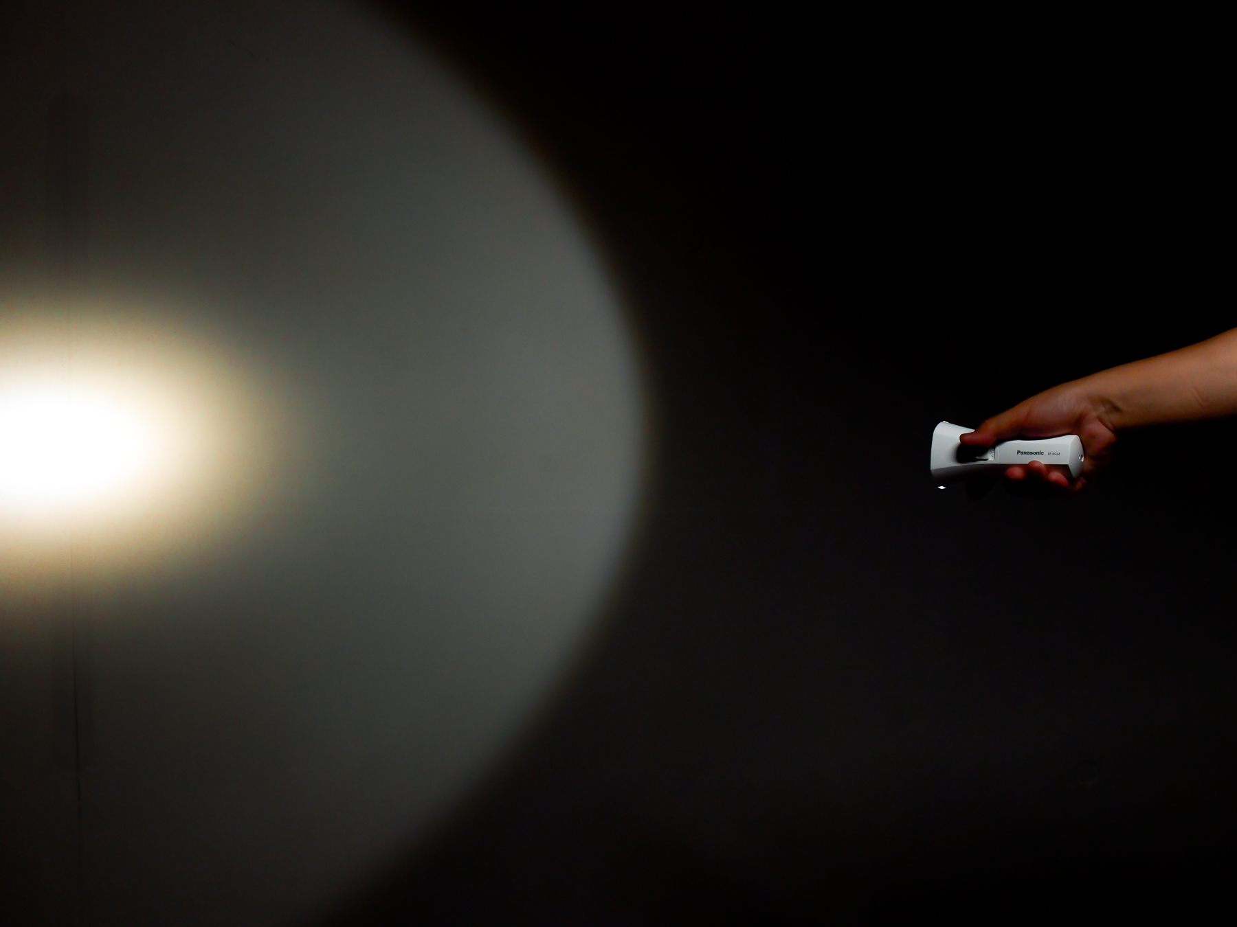 部屋を暗くして、懐中電灯だけのときと、水を入れたペットボトルを上にのせたときとで、部屋の照らされ方にちがいが出るかくらべてみよう。