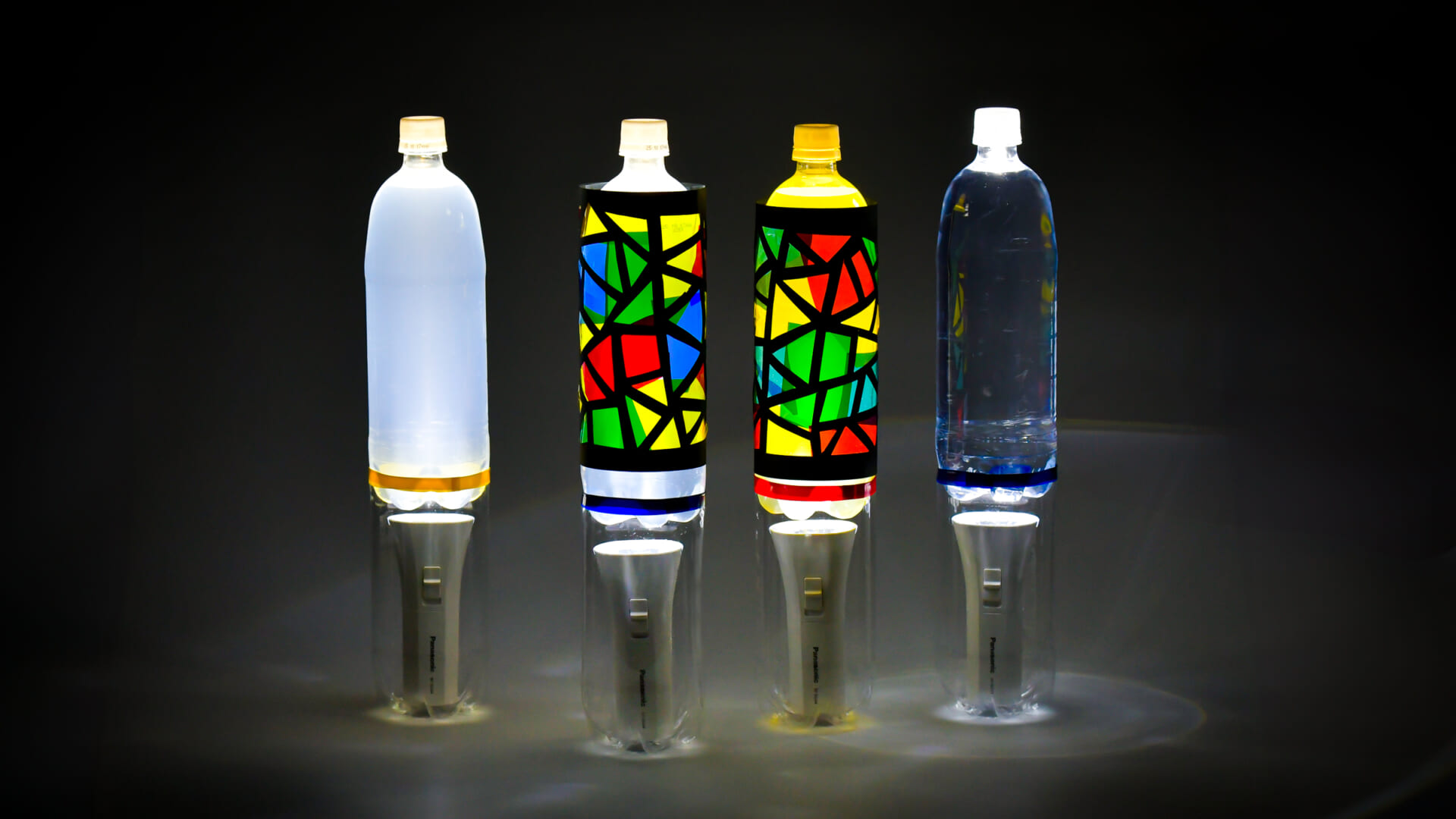 ペットボトルの中身を、ジュースやお茶、石鹸水などに変えると、明るさや見え方はどう変わるだろう? その理由を予想して実験してみよう。