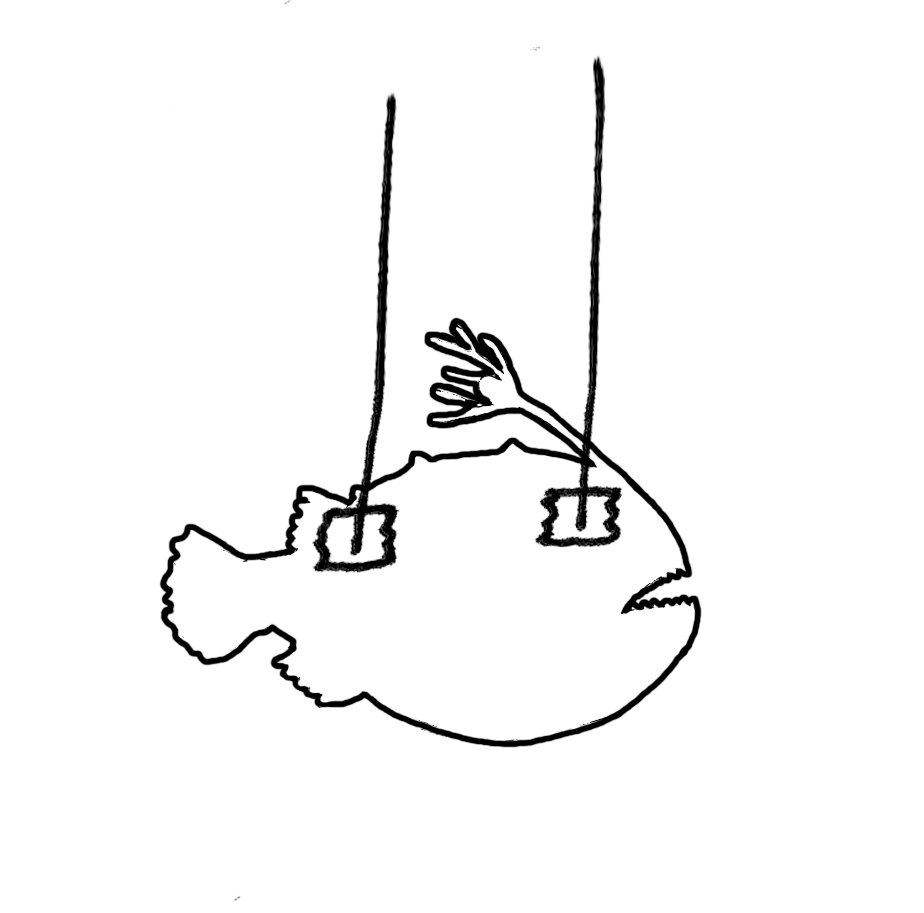 水族館につるして展示する生き物を決めたら、深海にすむ生き物と水そうをつくろう。
