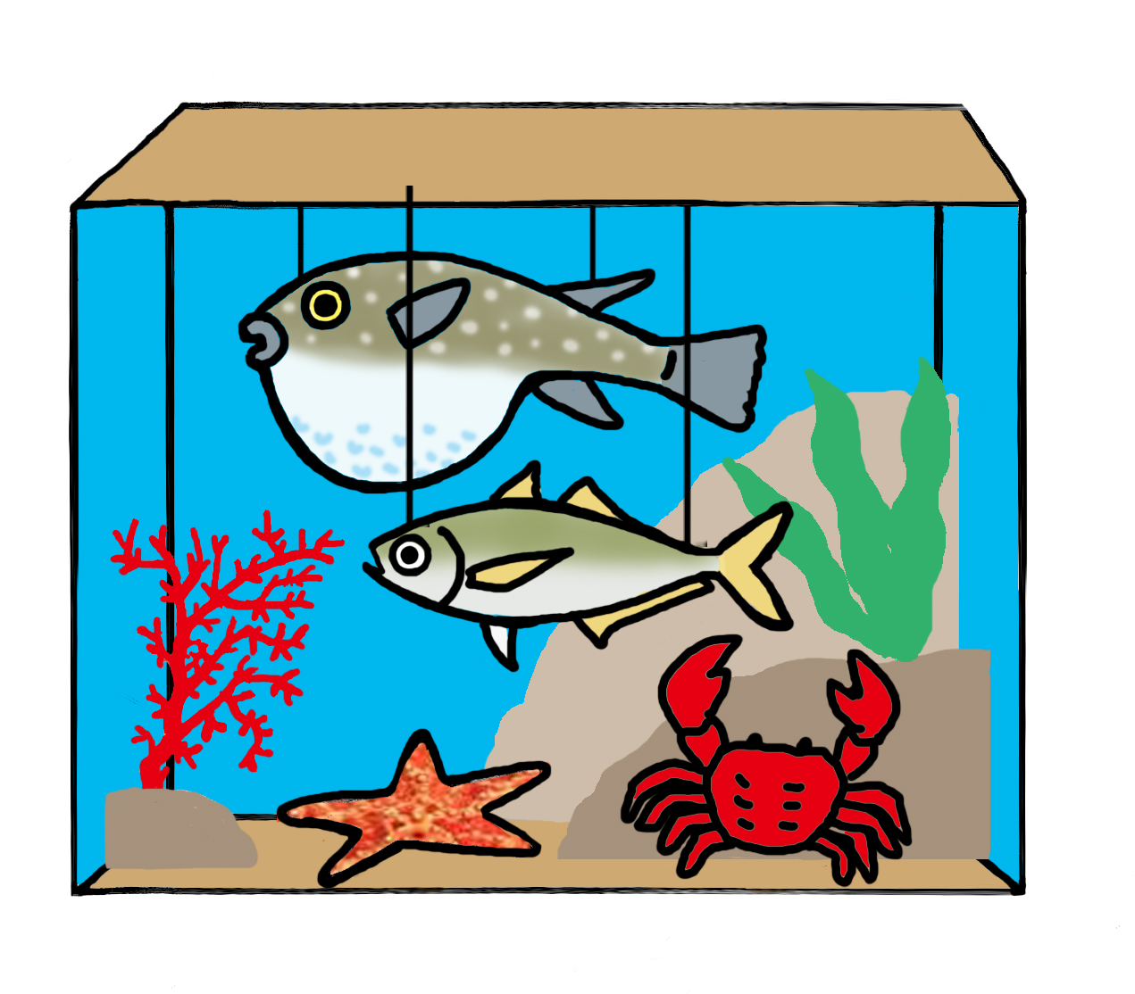水の生き物は、深海以外にもいろいろな環境にもすんでいる。浅瀬の海や川、湖など、そこにすむ生き物を調べていろいろな水族館をつくってみよう。