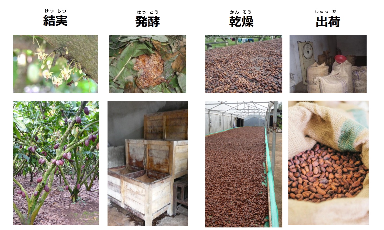 しゅうかくされたカカオ豆は、発酵と乾燥をさせてから日本にやってくる。どうして発酵させるのかや、産地による香りの違いについて調べてみるのもいいかもしれないね。