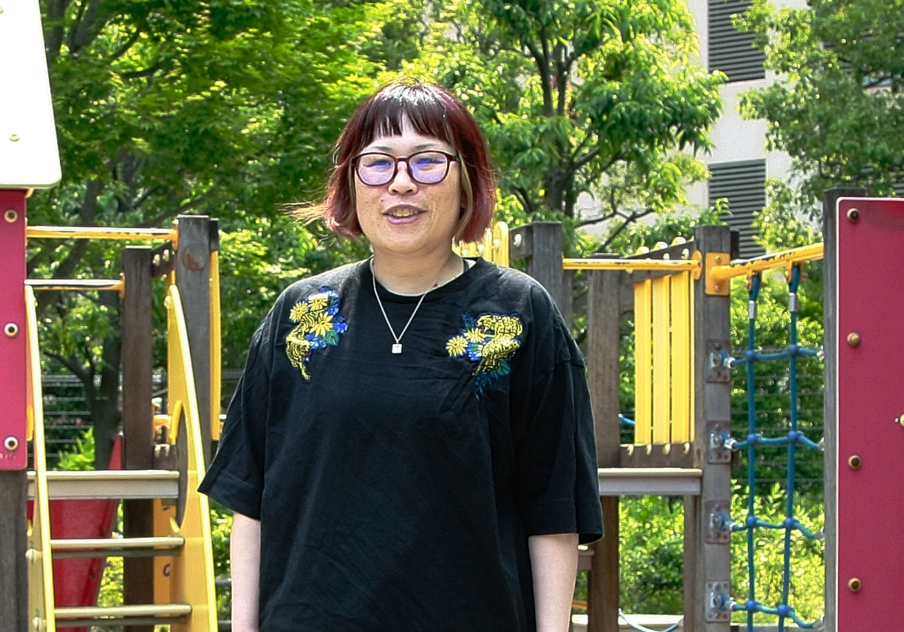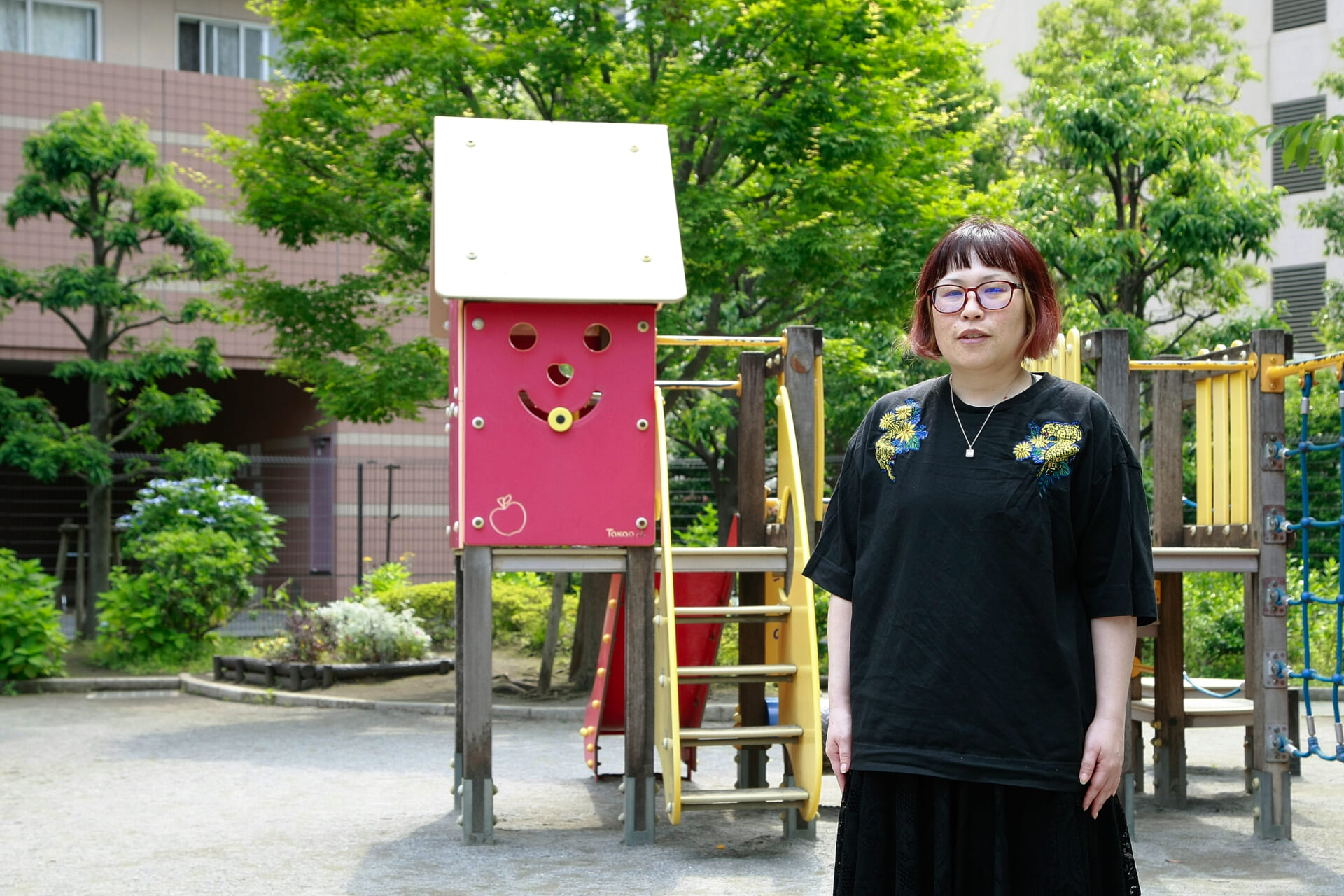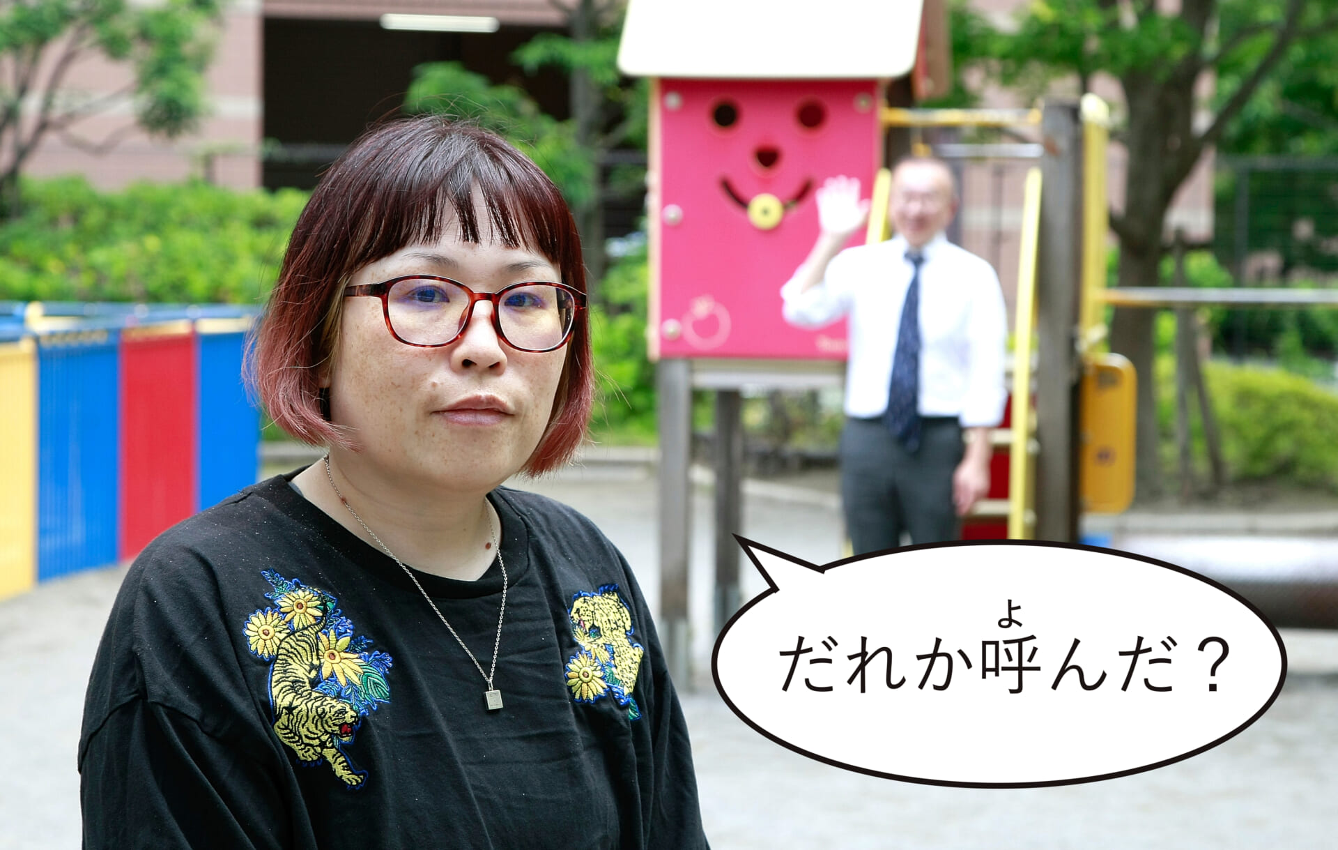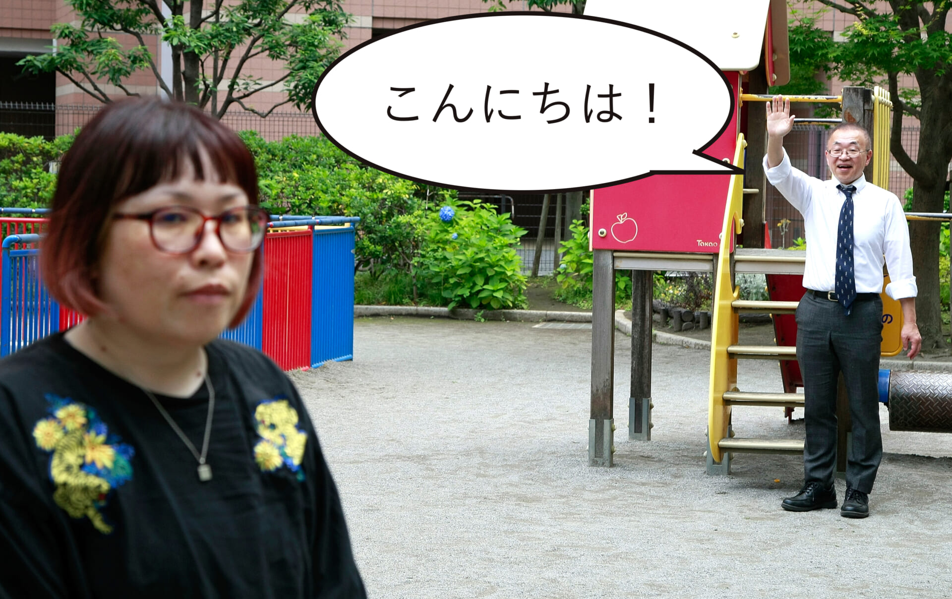 どんな場所にいるのかがよくわかる。遊具や花だんのある街中の公園に来ていることがわかる。