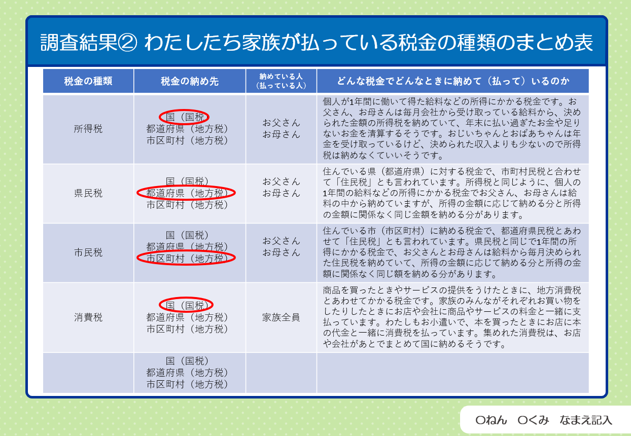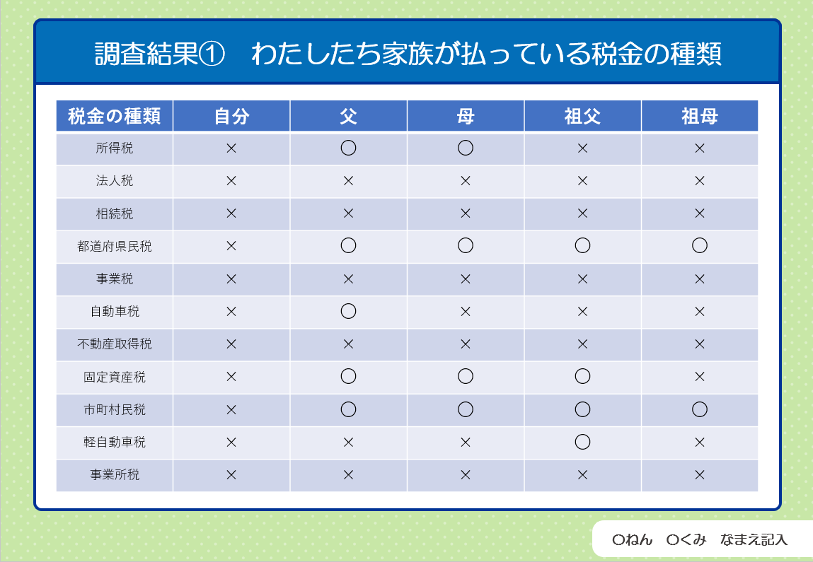 家族 にインタビューをしてどんな税金 を払 っているのか調査 しよう