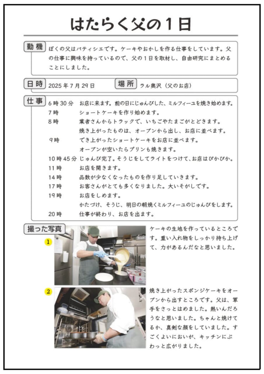 ・仕事をしている様子を写真に撮らせてもらい、それを自由研究に使うことを伝えよう。