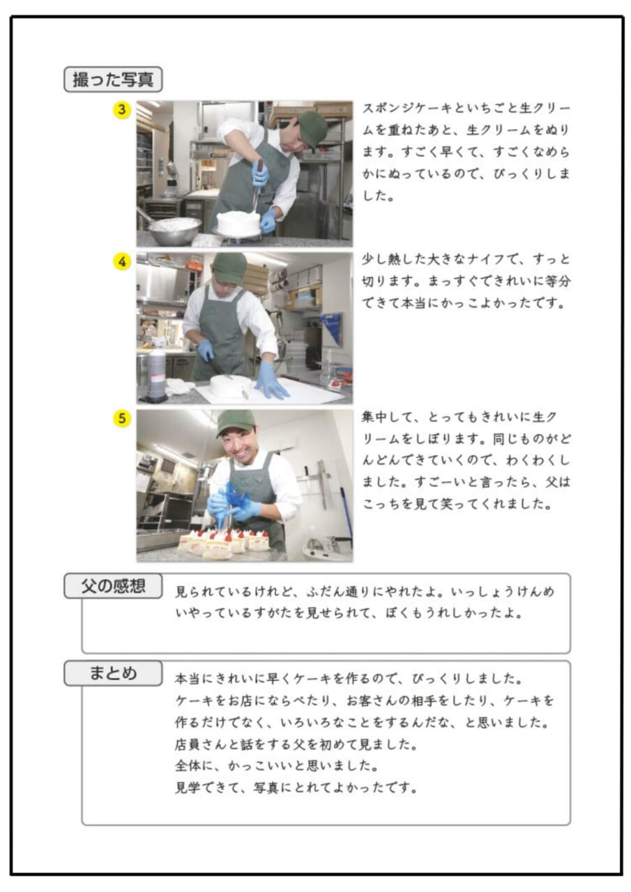 最後に、仕事をしている姿を見てどう思ったかなどの感想を書き、まとめとしよう。