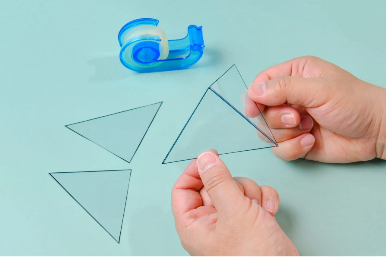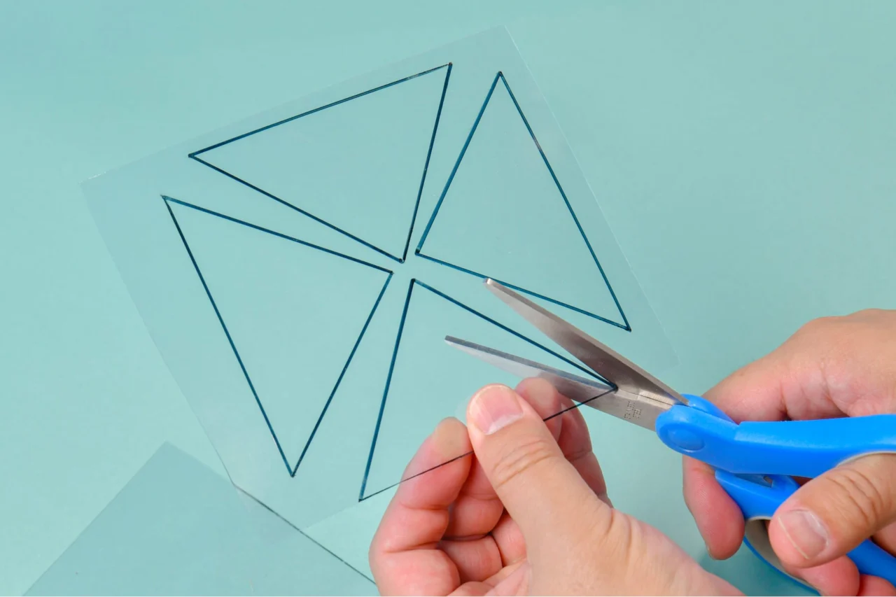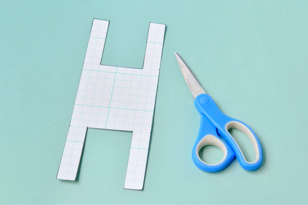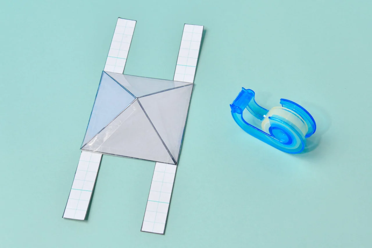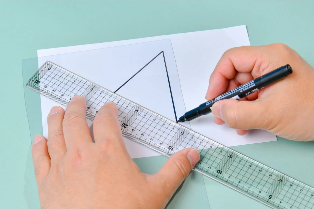 工作用紙に図2を書いて、はさみで切って投影実験装置の台座をつくれば完成!