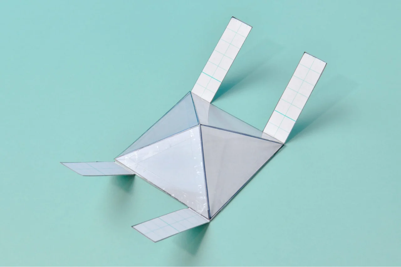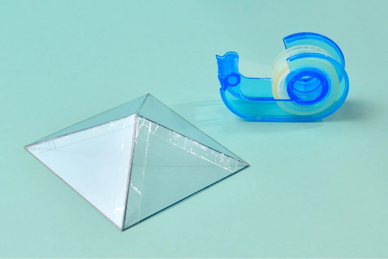 最後に白地の部分を黒色に変更すれば3Dホログラム画像の完成。最後にデータをダウンロードしてスマートフォンに移動して投影実験装置で試してみよう。