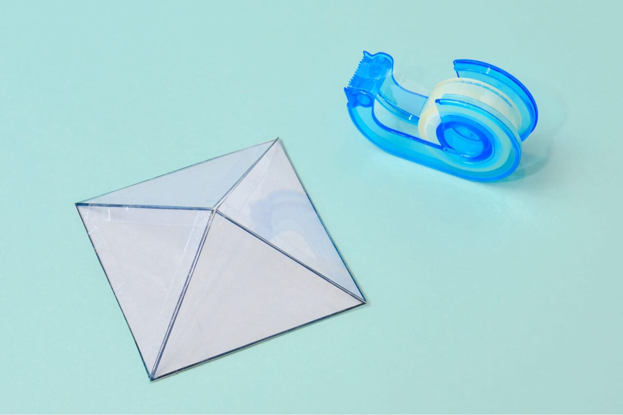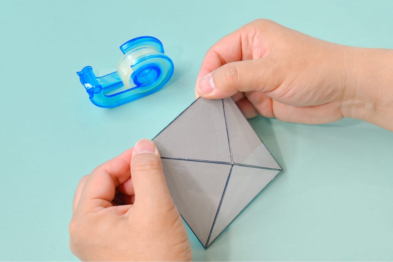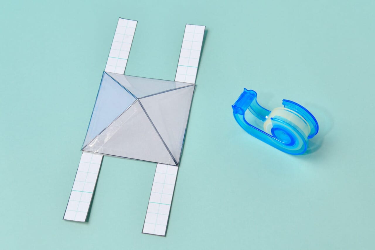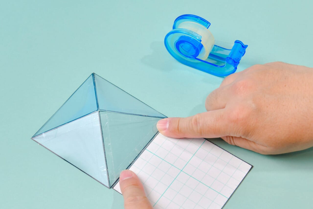 工作用紙に図2を書いて、はさみで切って投影実験装置の台座をつくれば完成!