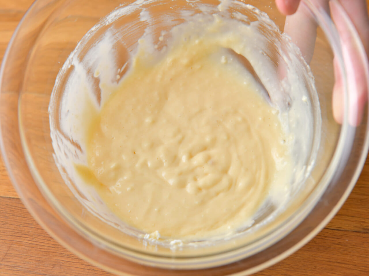 生地を混ぜすぎると泡が壊れてしまうから「軽く混ぜる」ことが大事なポイントになるよ。