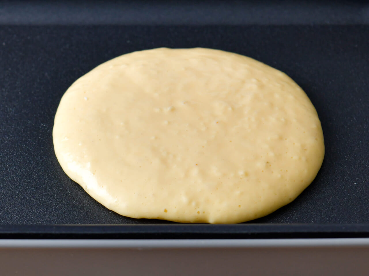 「熱凝固」という化学反応によって、ホットケーキの形が固定される。