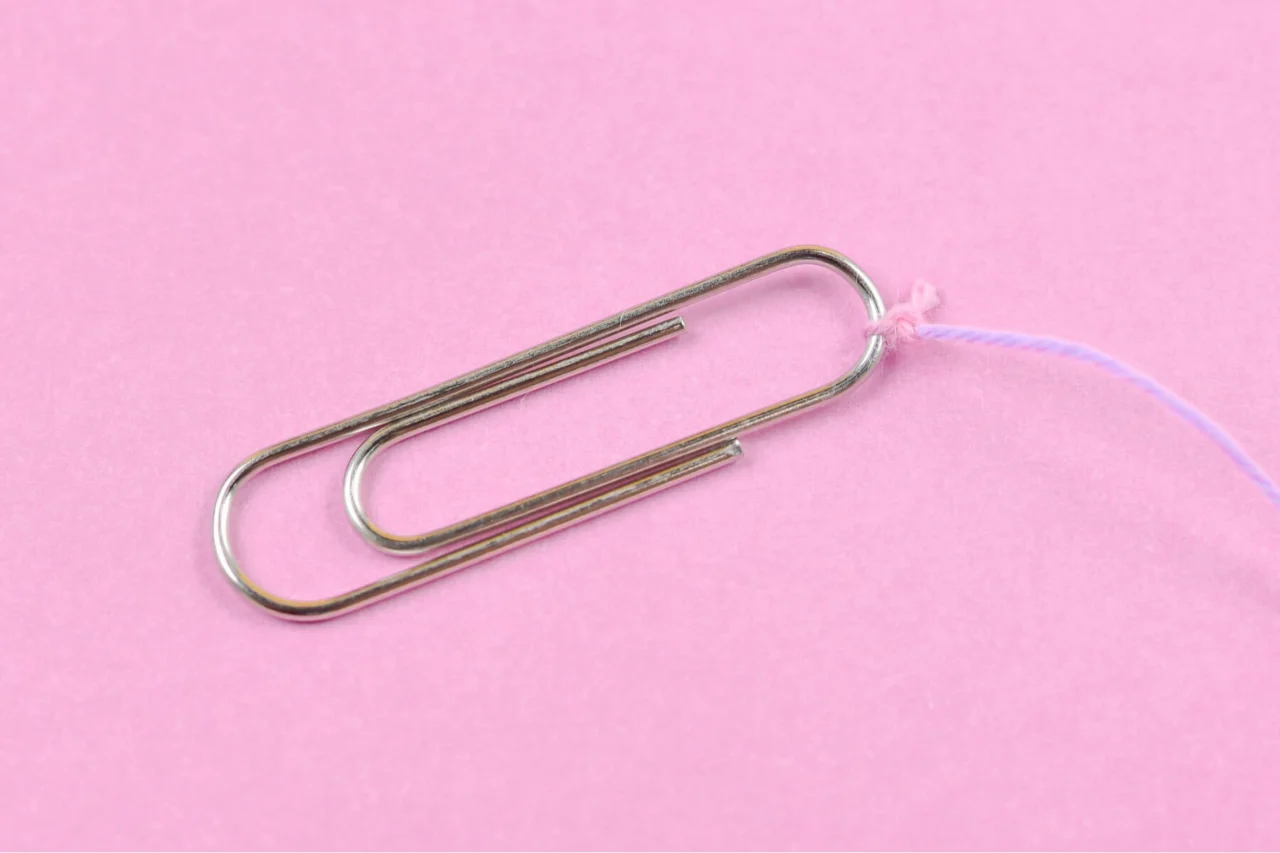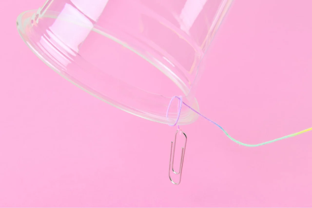 なぜ どうして?:浮 かぶクリップがはさみで切 ると落 ちるしくみ