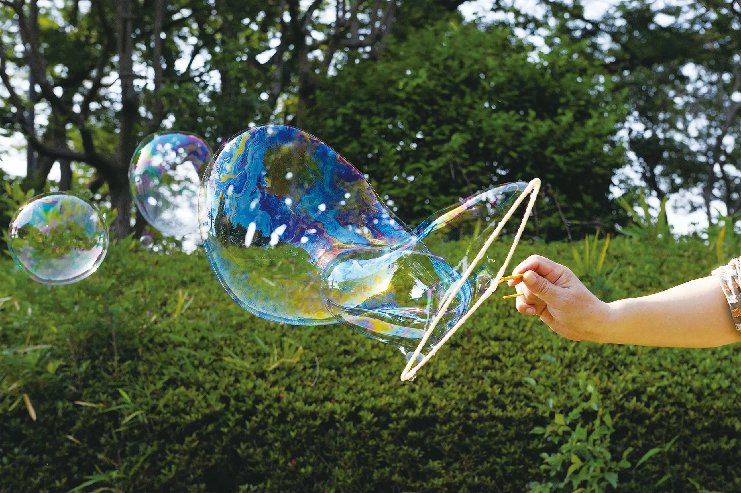 ※その日の天気や気温、しつ度などが、シャボン玉のできやすさ、できにくさにえいきょうをあたえるよ。