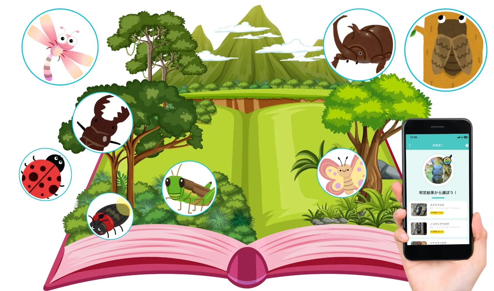 「虫みっけ!」アプリは、AIで昆虫を自動判別するアプリです。写真を撮るときの条件によっては、違う昆虫のデータが出ることがあります。判定制度が低かった場合は、写真を撮りなおして再度判定してみよう。表示された結果が合っているか気になったときは図鑑やインターネットを使ってさらにくわしく調べてみよう。