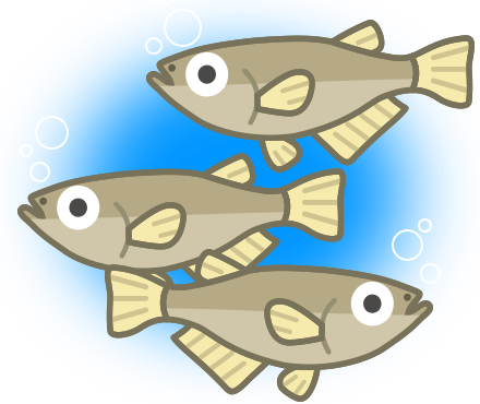 メダカは、水の流れと反対方向に泳ぐ。上から見ると、ほとんど同じ位置にとどまっているように見えるよ。