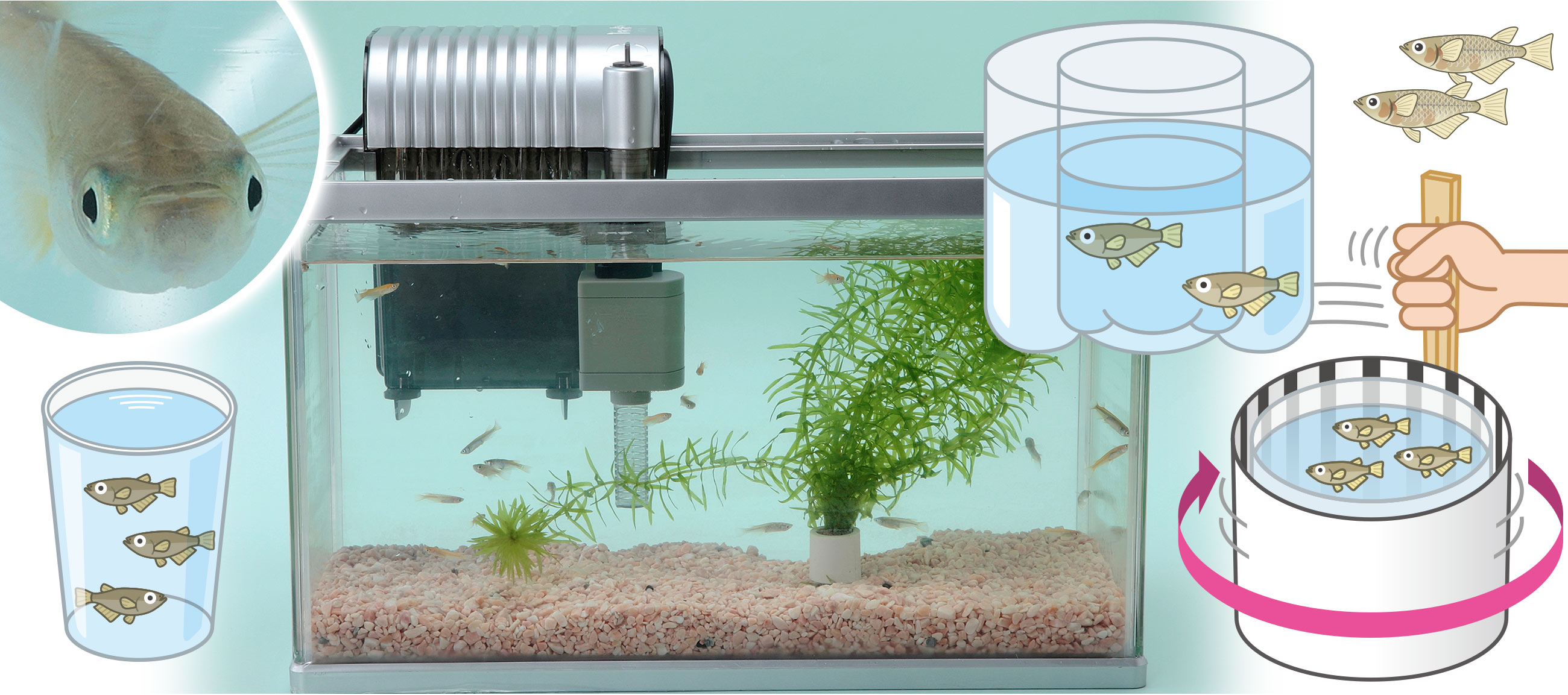 飼 うための道具 は、おうちの人 に用意 してもらうこと。 - メダカをきずつけたりせず、