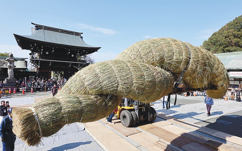 日本一大きなしめ縄かけかえ