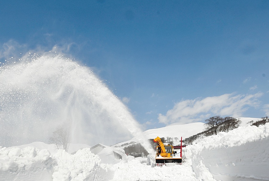 月山のふもと 白と青がキレイ