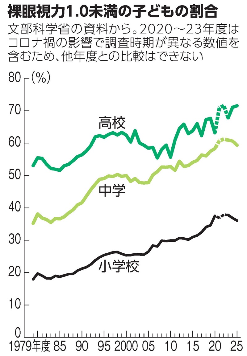 視力1.0未満の子増える
