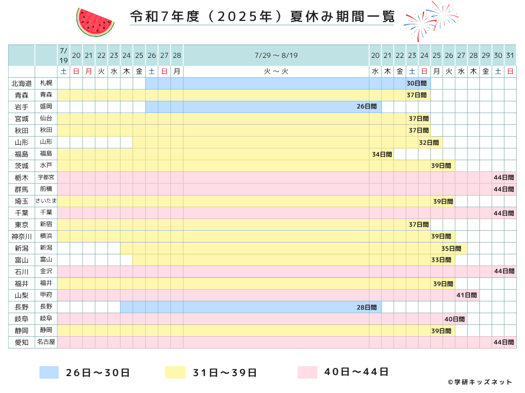 2025年版!都道府県別「夏休み期間の一覧表」