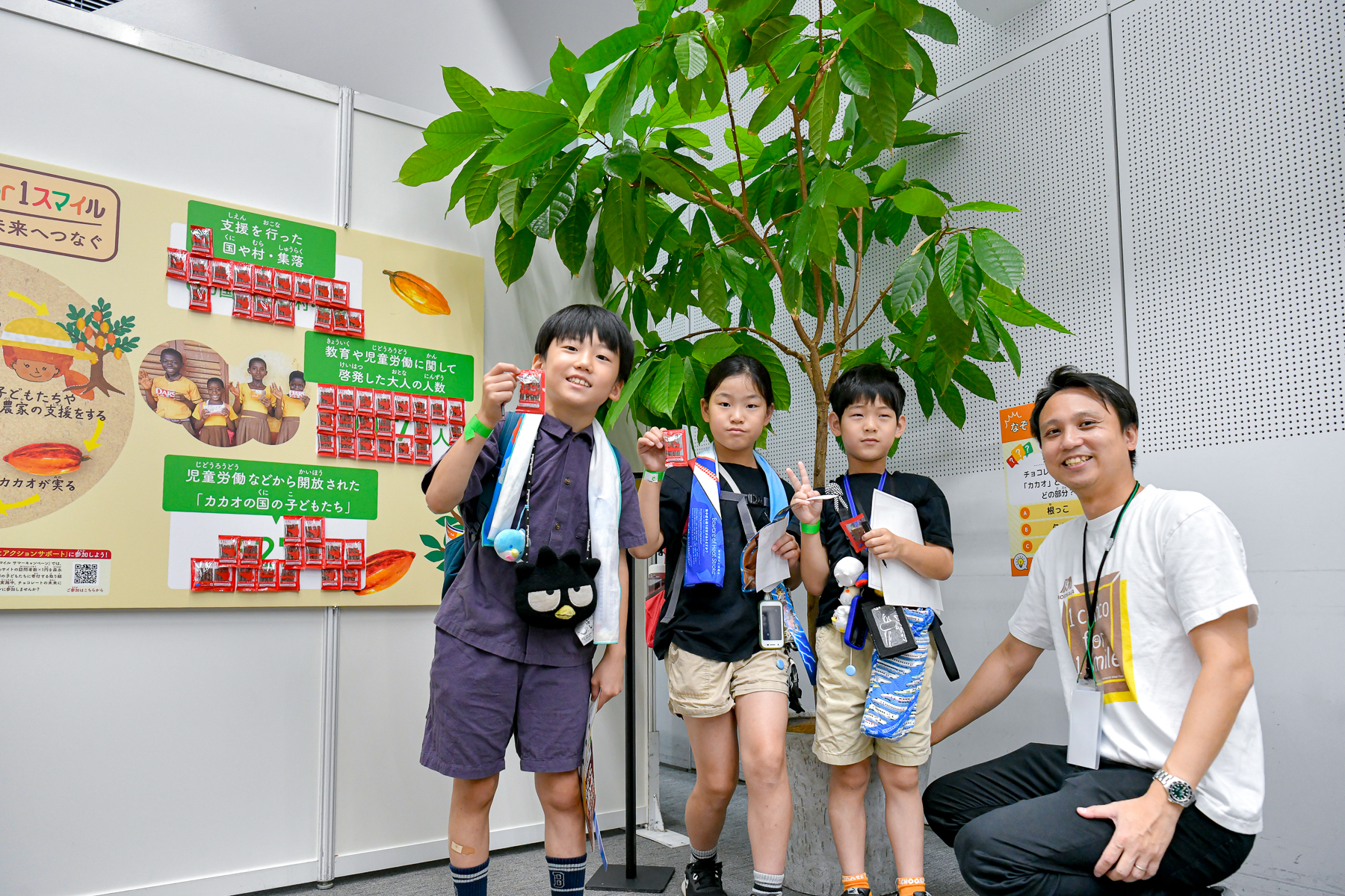 今回のブースは、森永製菓が行うカカオ産地の子どもたちを支援する活動「1チョコ for 1スマイル」とも連動。今回、ブースでチャレンジシートに参加してくれた人数×100円を、森永製菓がカカオの国に寄付する予定になっています。